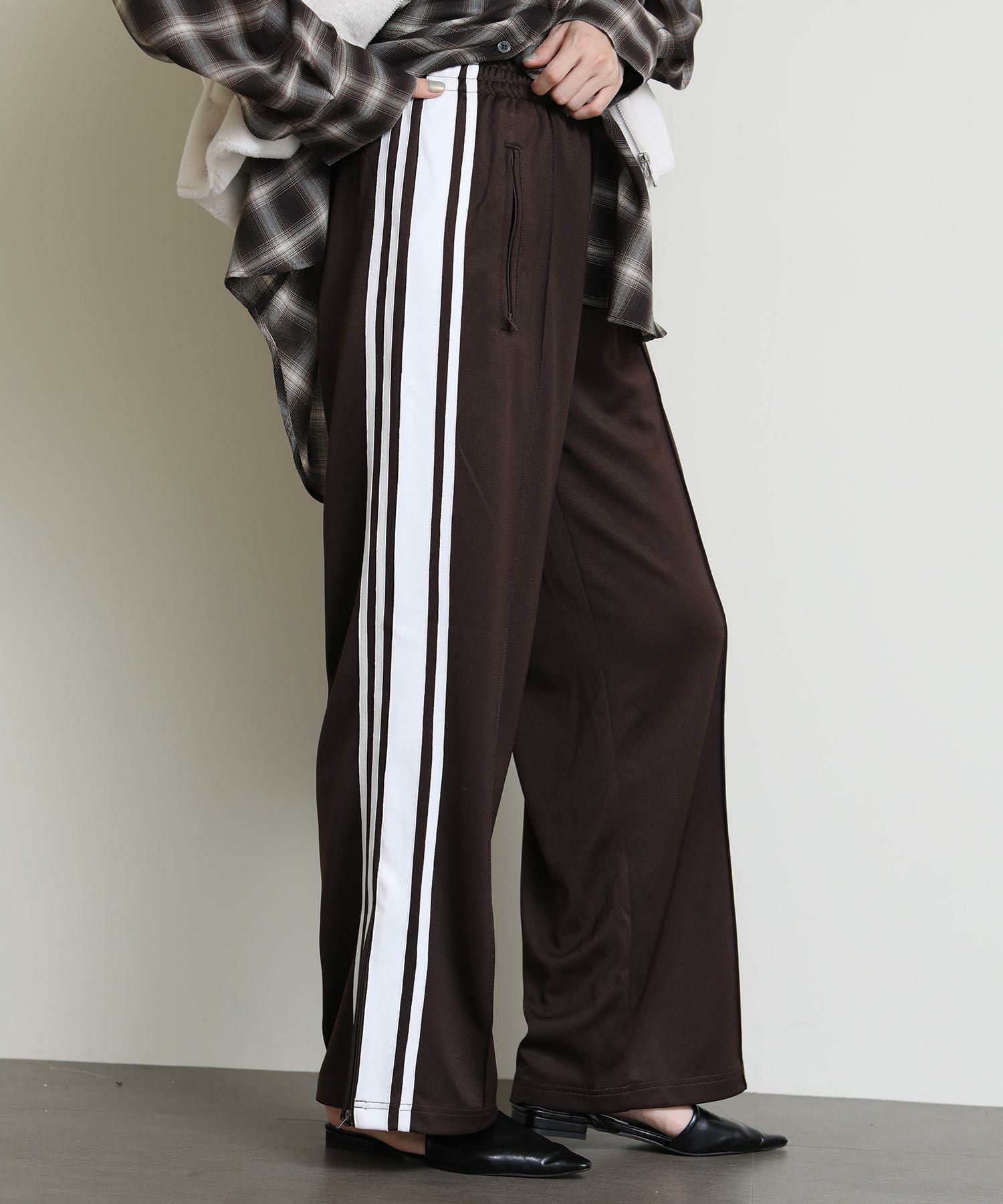 90年代のトラックパンツをインスピレーション源にデザインしたルーズパンツ。