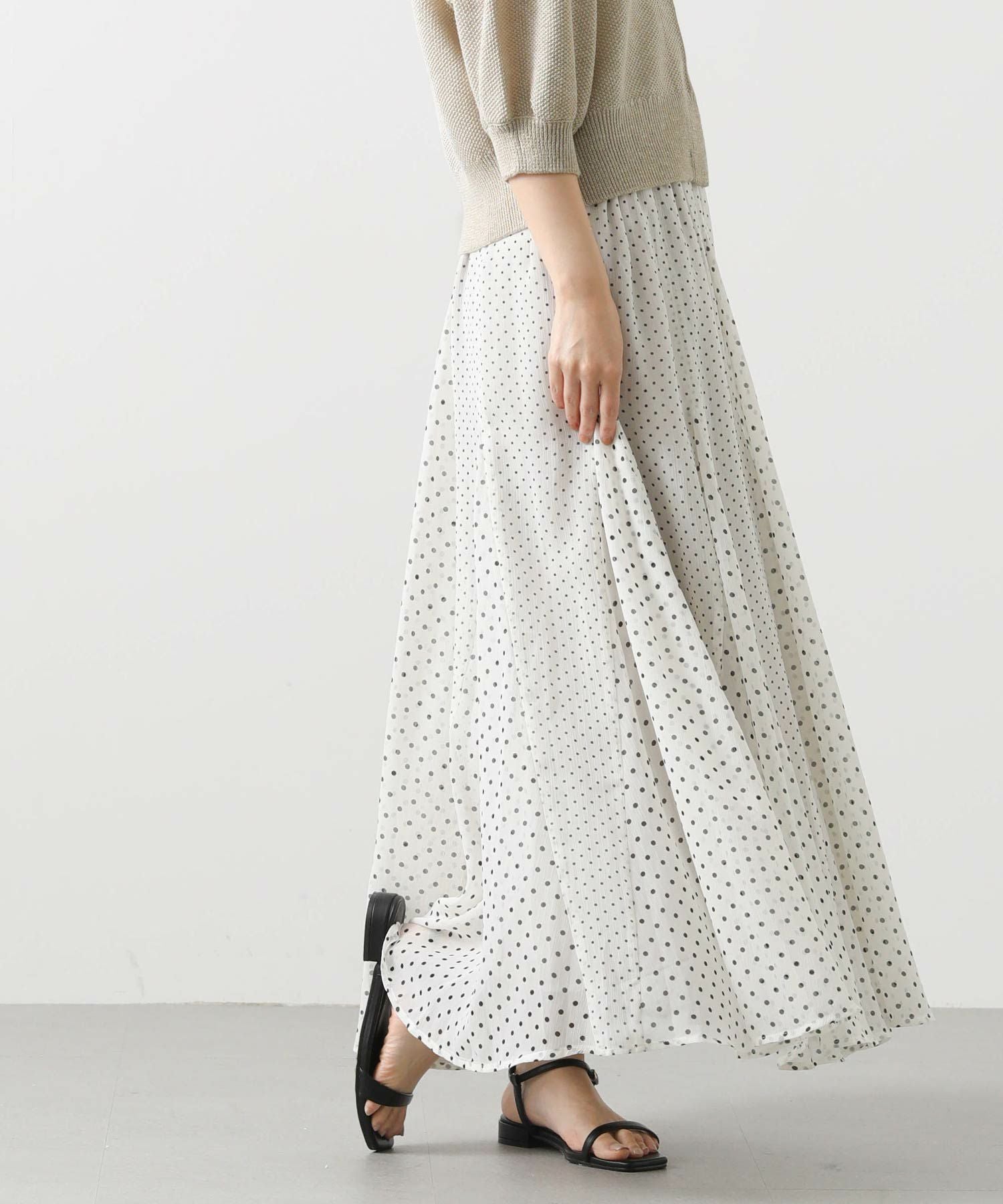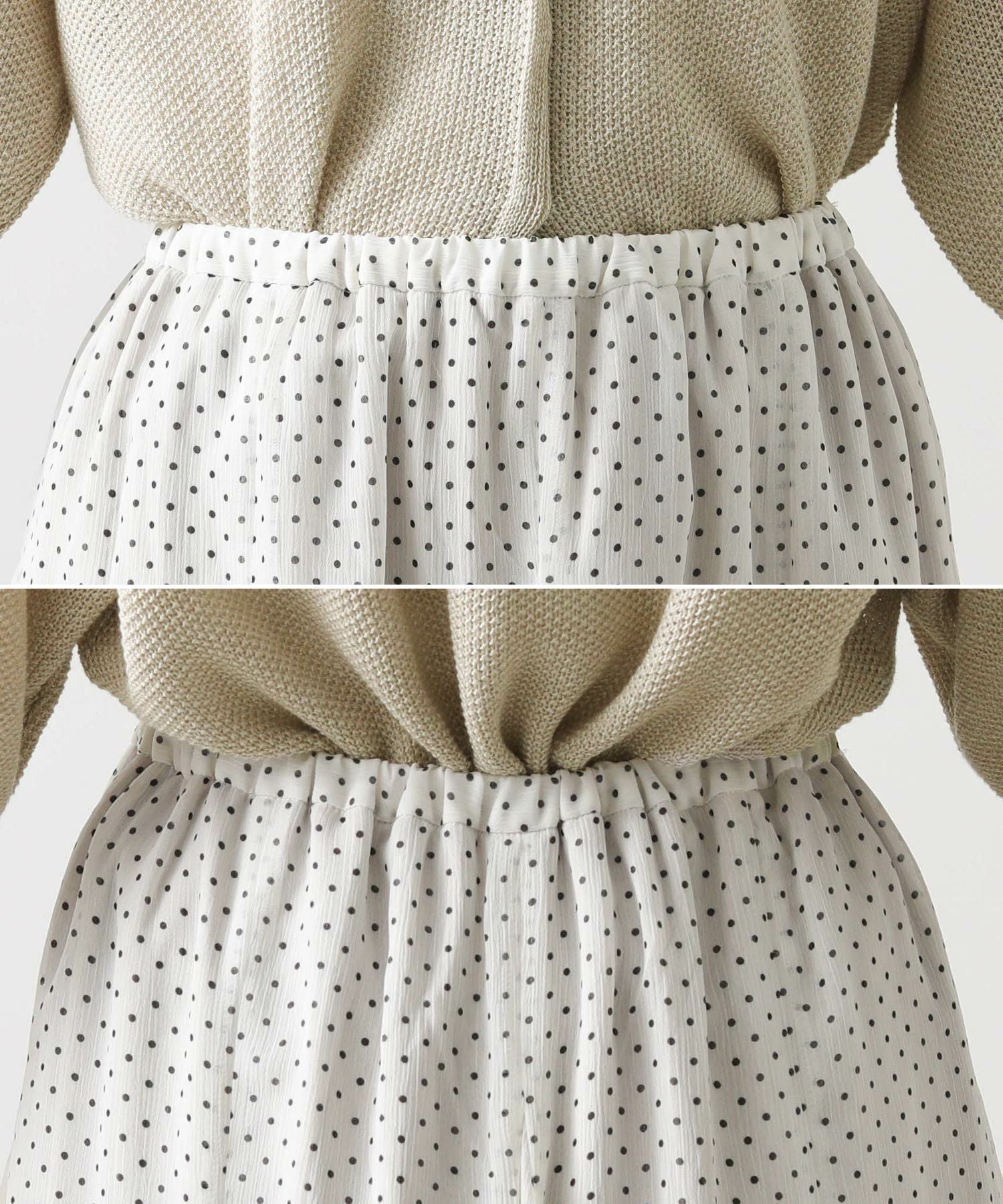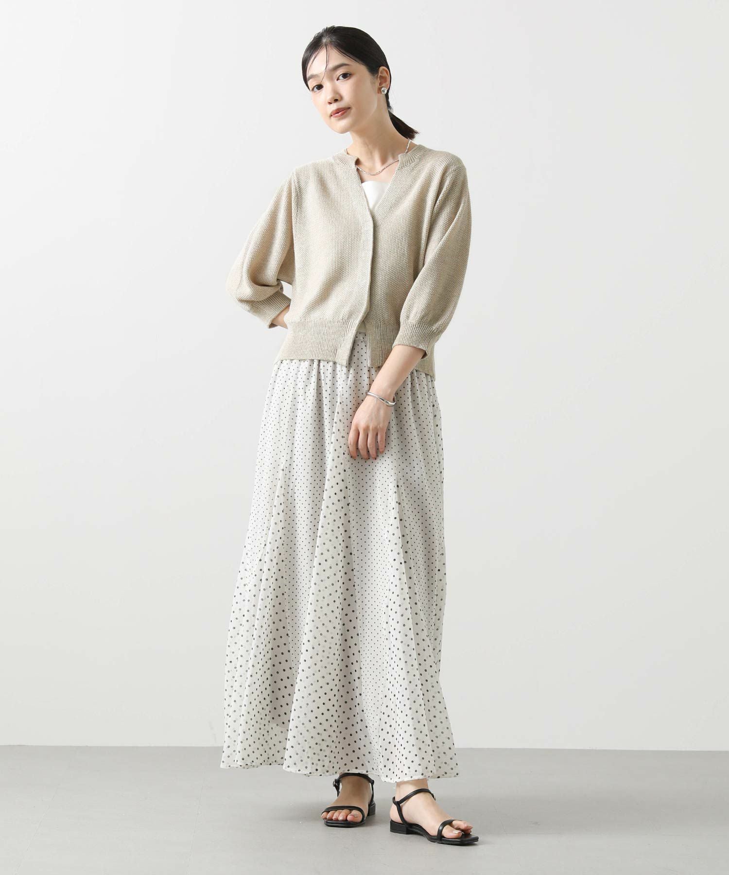 清涼感のある楊柳シフォン生地にドットをプリントしたオリジナル素材を使用。