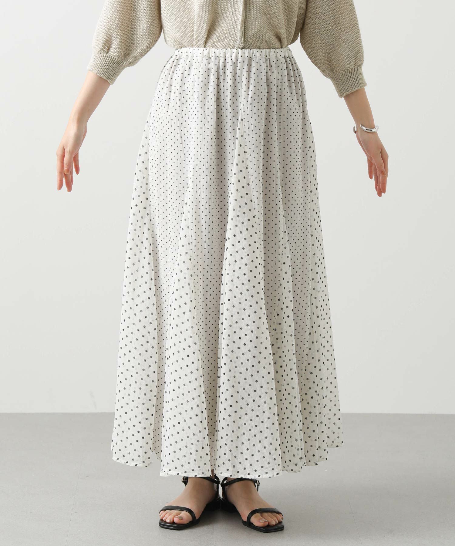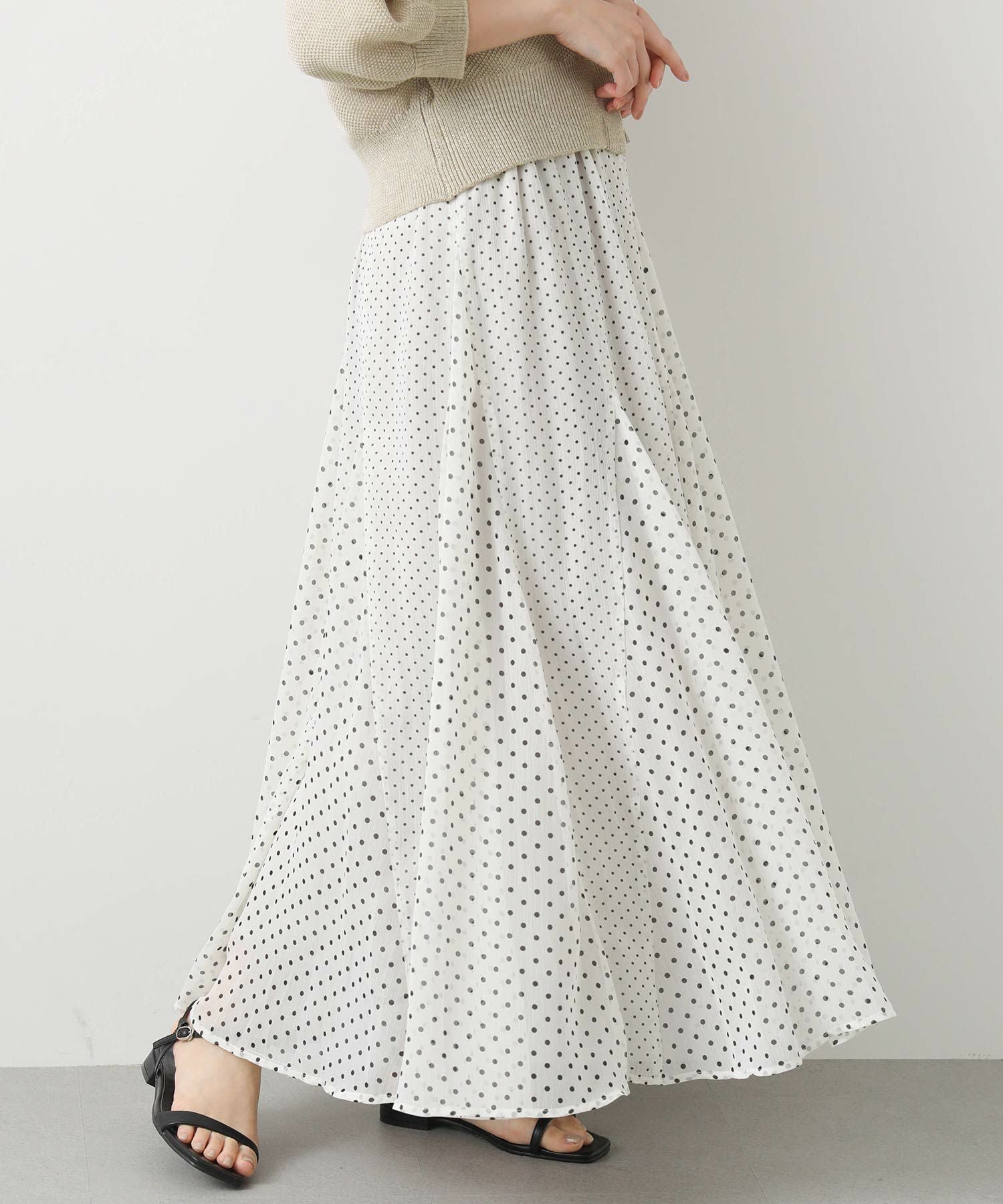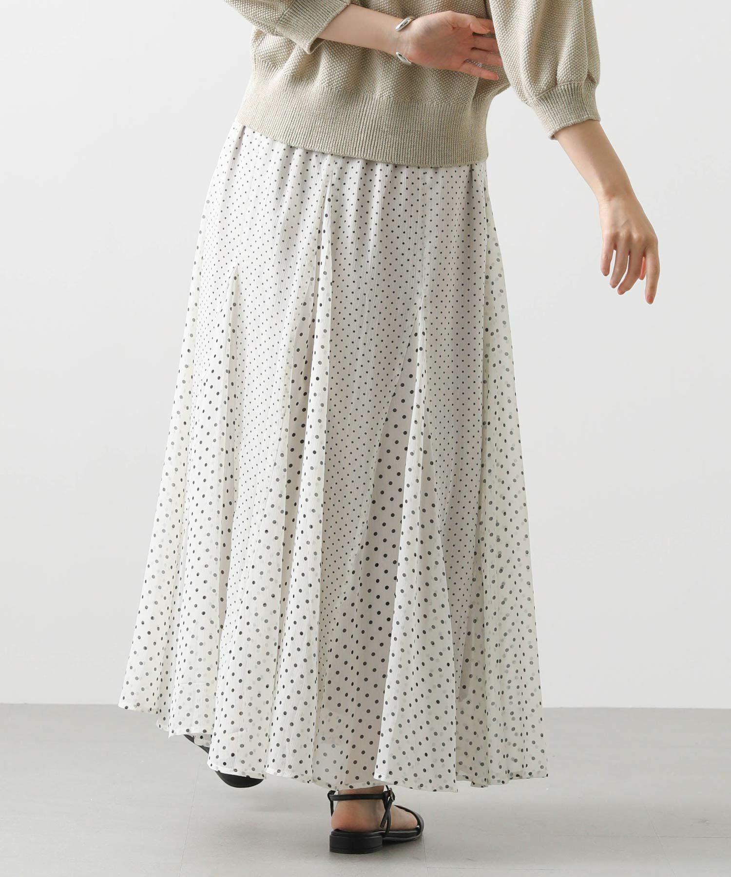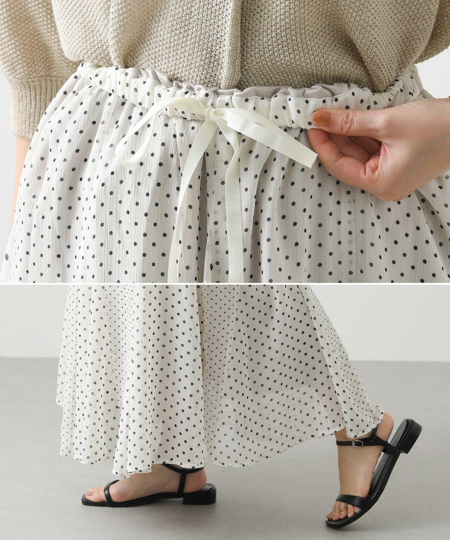 清涼感のある楊柳シフォン生地にドットをプリントしたオリジナル素材を使用。