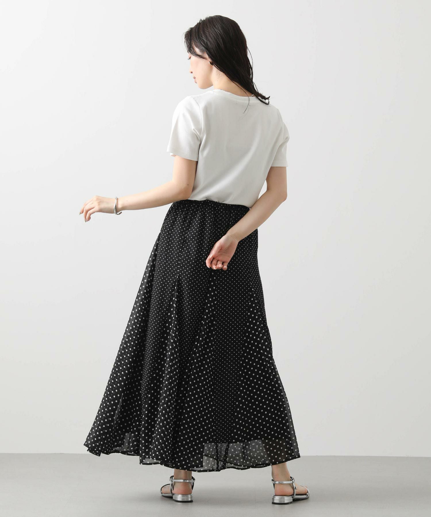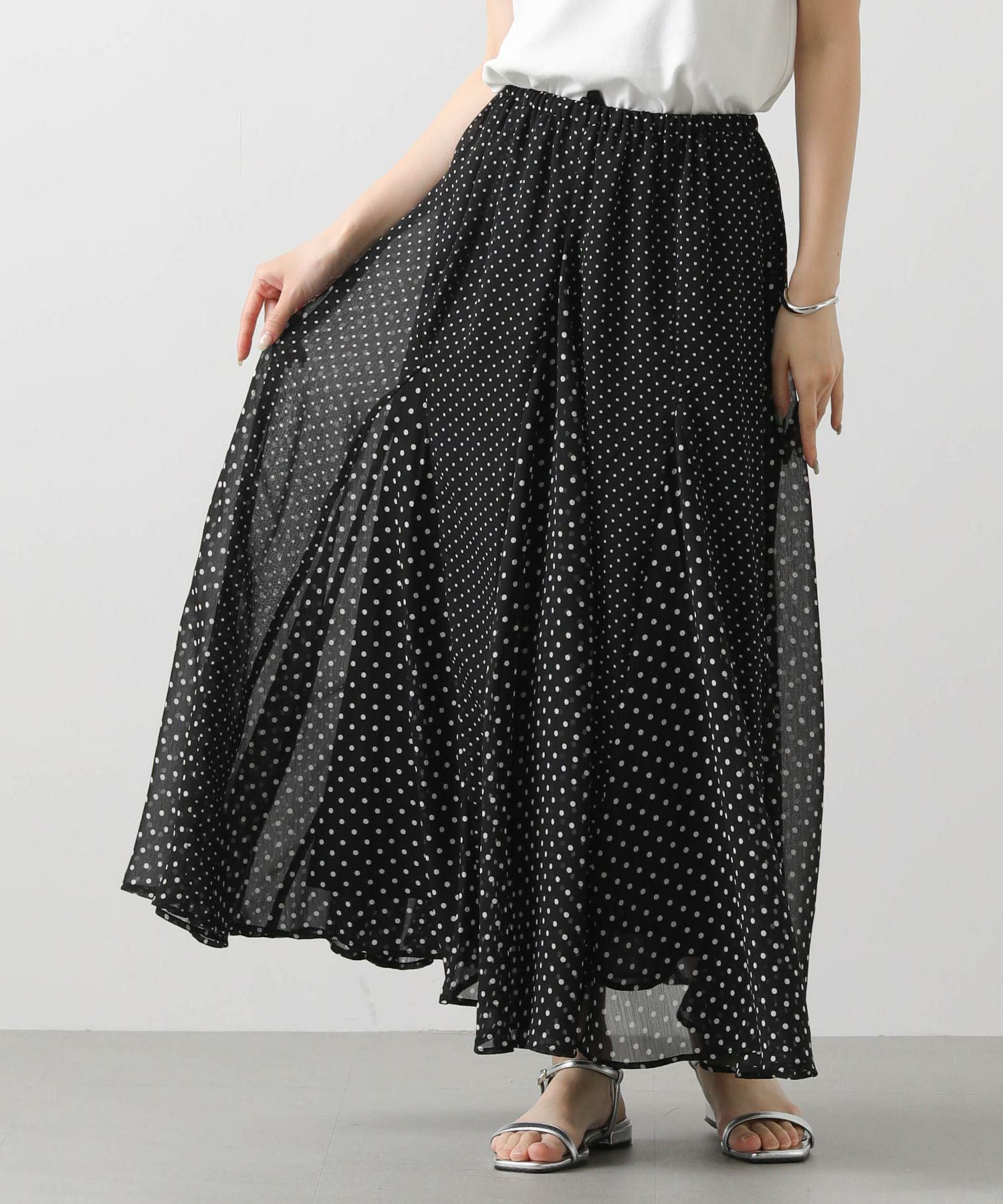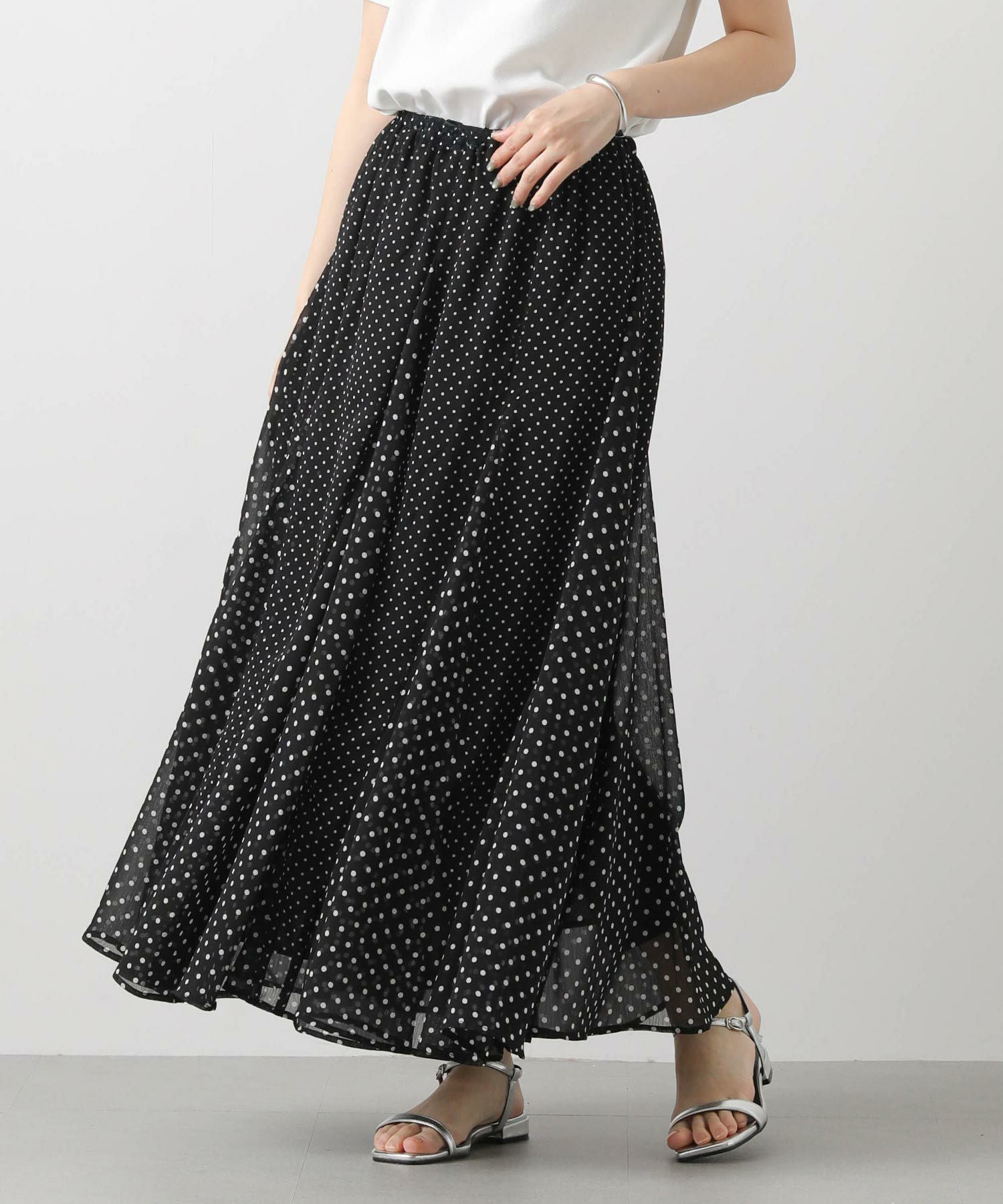 ドラマティックに分量感を出して、歩くたびに軽快に揺れるシルエットが特徴、夏のお出かけ着にオススメしたい1着。シワにもなりにくいので、旅行にも◎