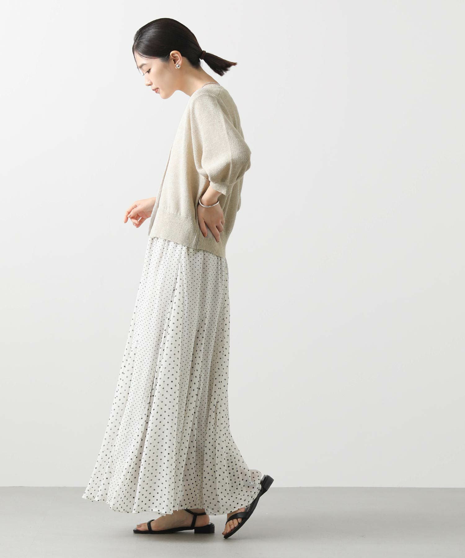 さらっとした生地感でシアー感もあり軽い着心地なので、蒸し暑い時季まで快適に着用出来ます。
