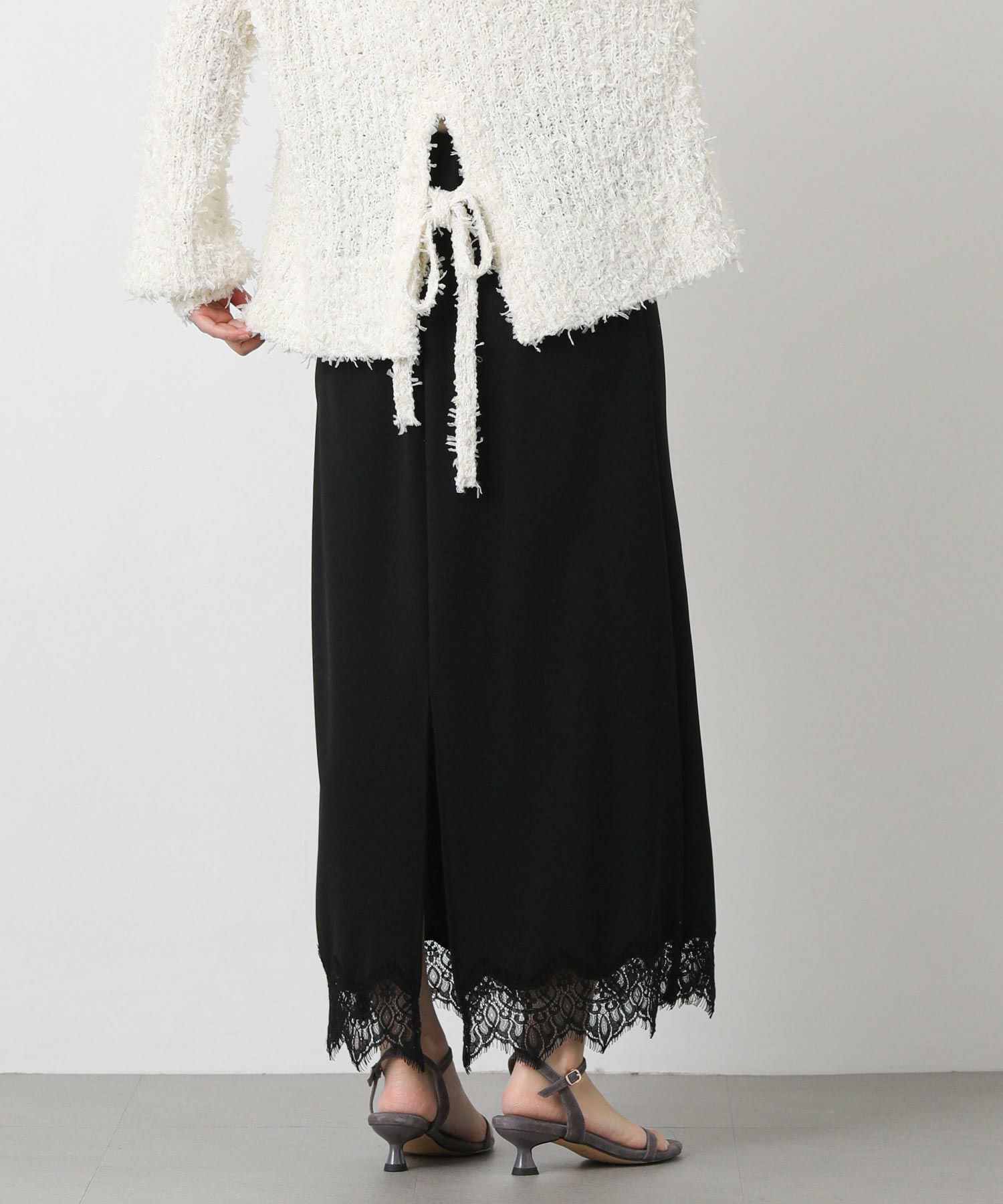繊細なレースと伸縮性のあるジョーゼット素材を組み合わせた、グレディらしい大人フェミニンなスカート。
