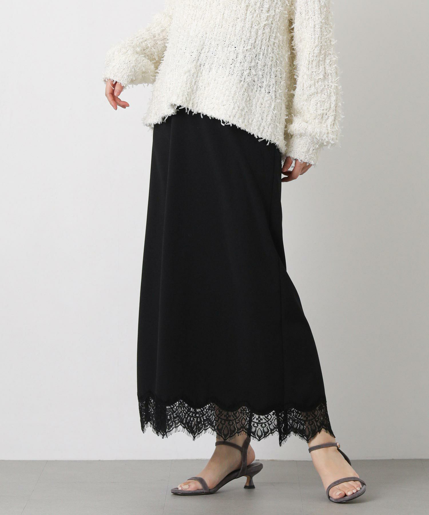 繊細なレースと伸縮性のあるジョーゼット素材を組み合わせた、グレディらしい大人フェミニンなスカート。