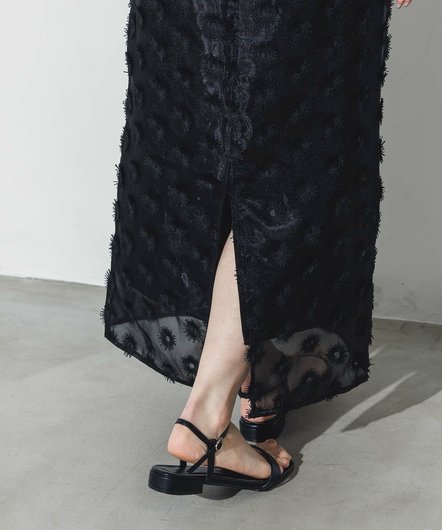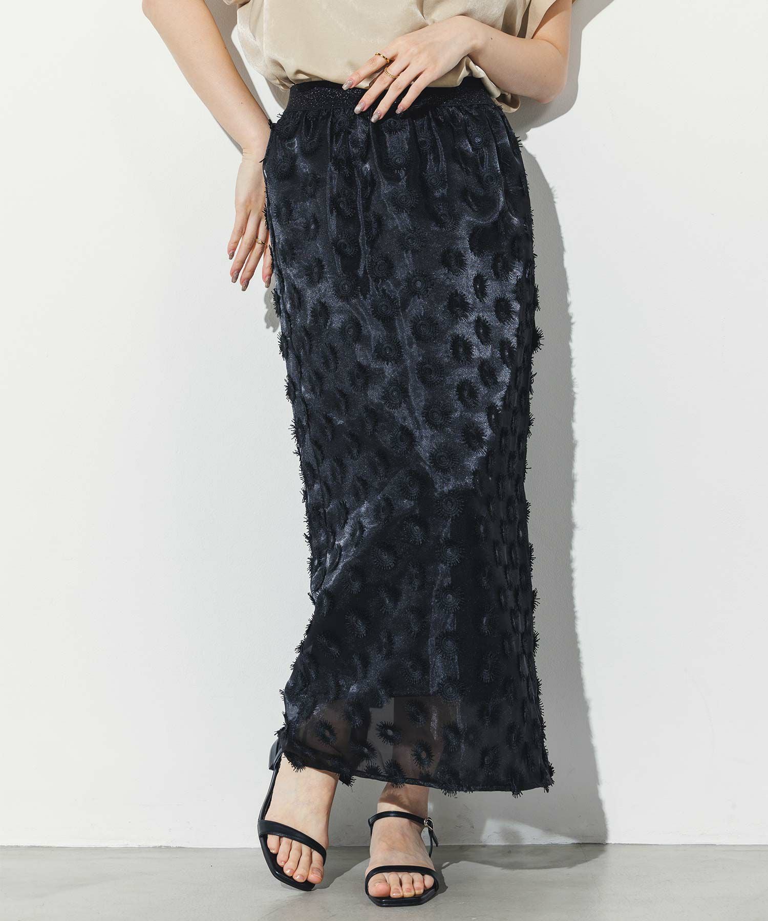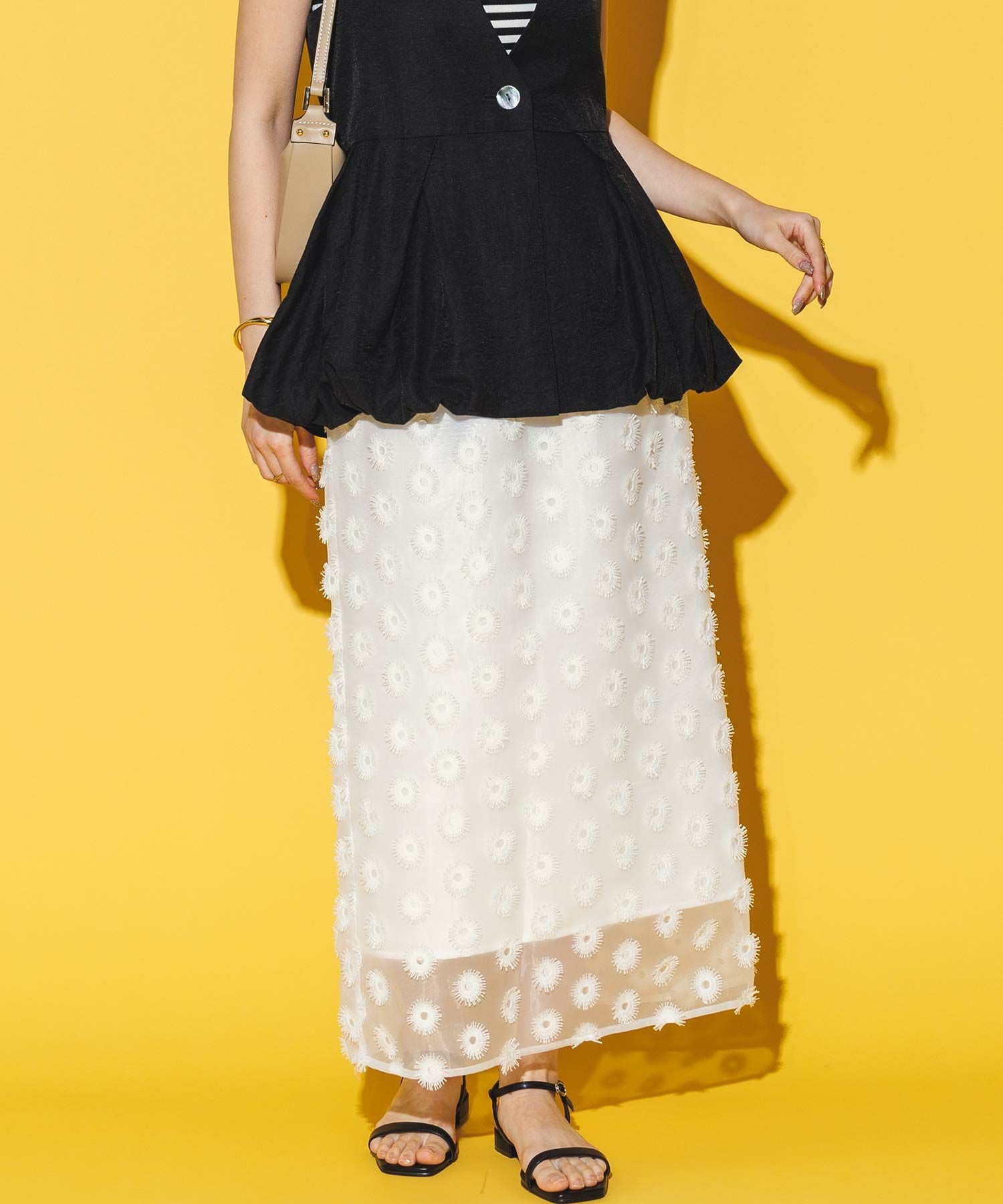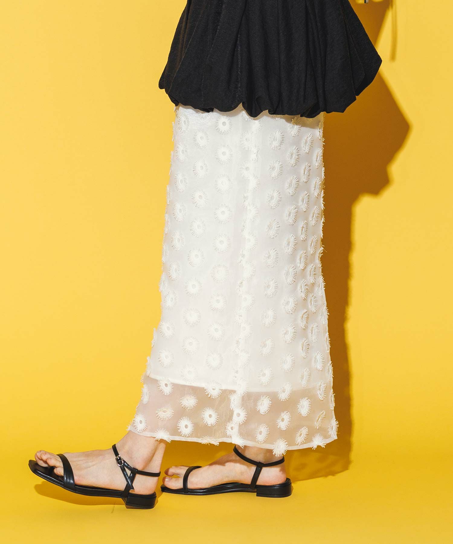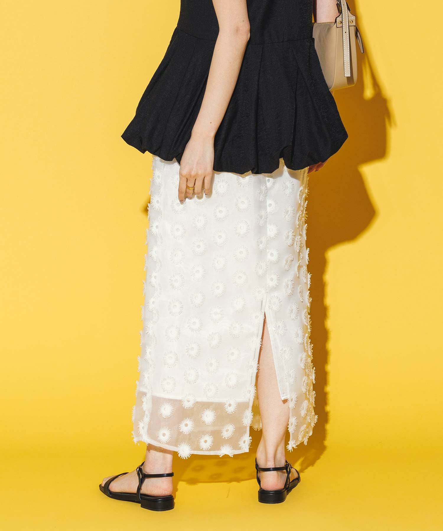 存在感のあるフラワーモチーフの3Dレースが目を惹くスカート。