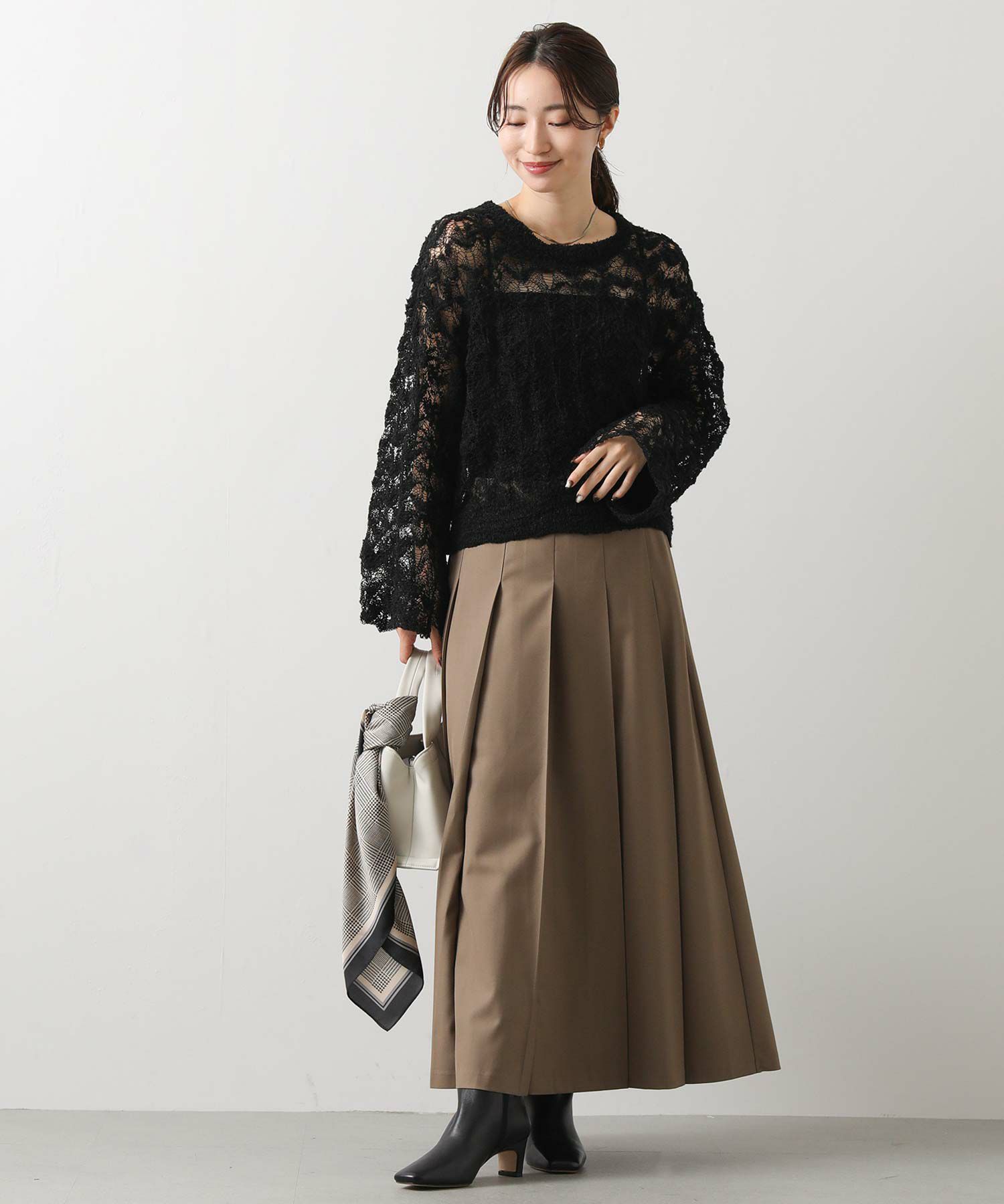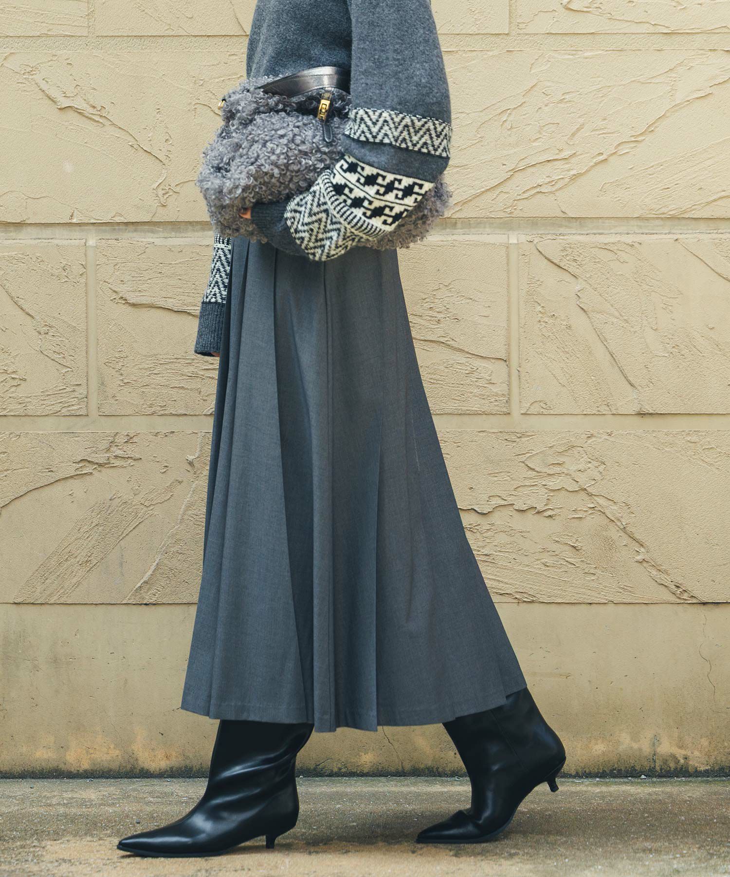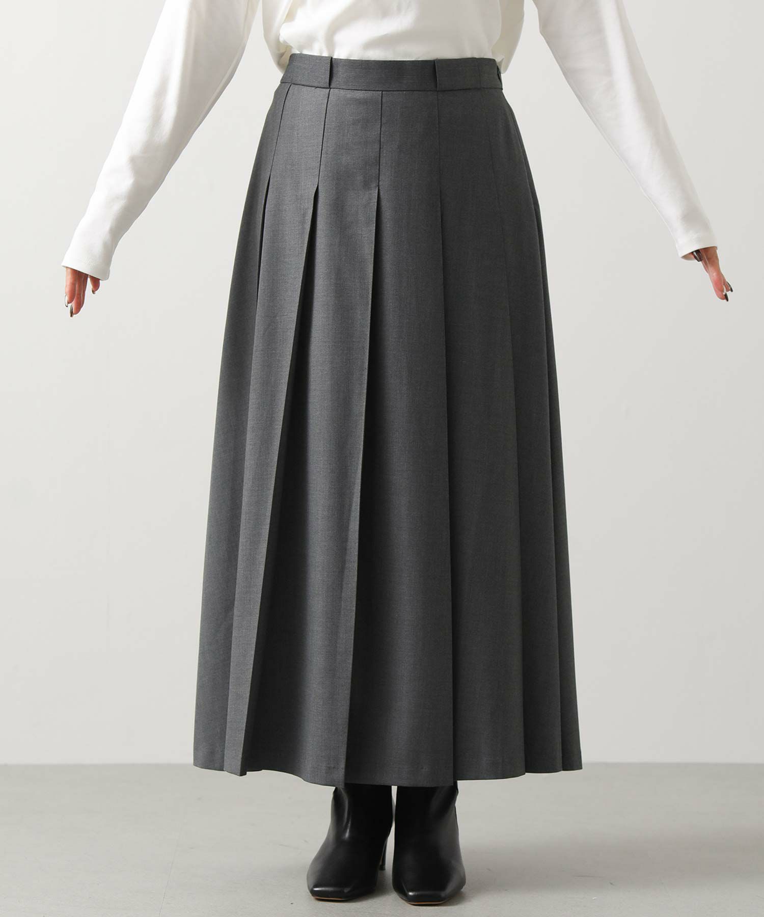 今季トレンドのワイドプリーツがトラッドでクラシカルな印象のスカート。