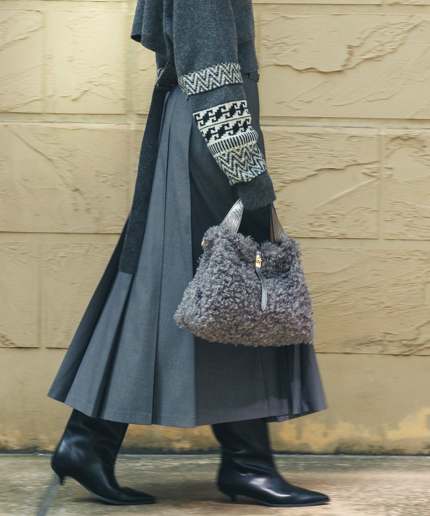 さらっとキレイ目の素材感で暑い時季から穿け、毛足のあるニットとの相性も良いので長いシーズン楽しめます。"