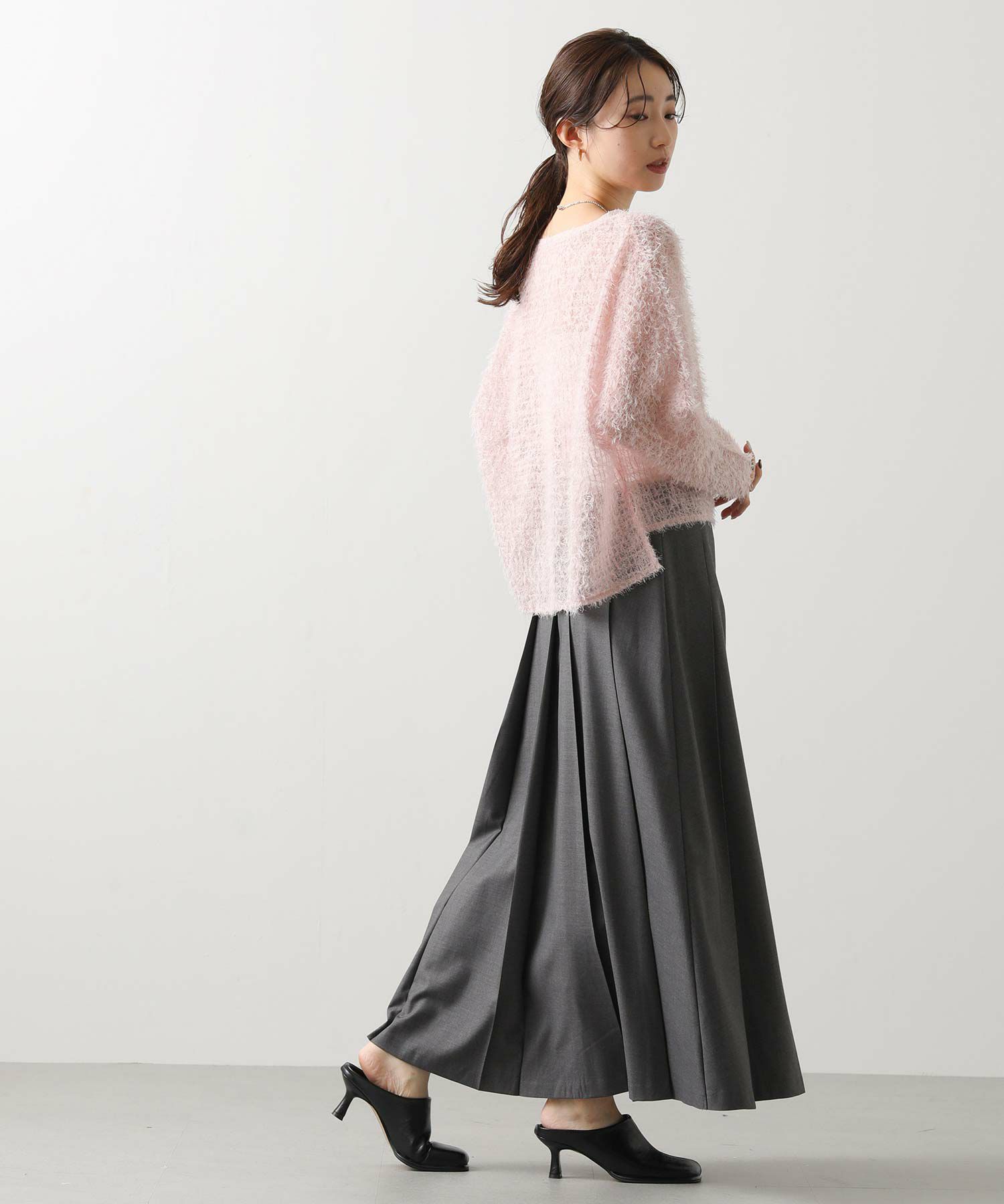 TRワイドプリーツミディスカート