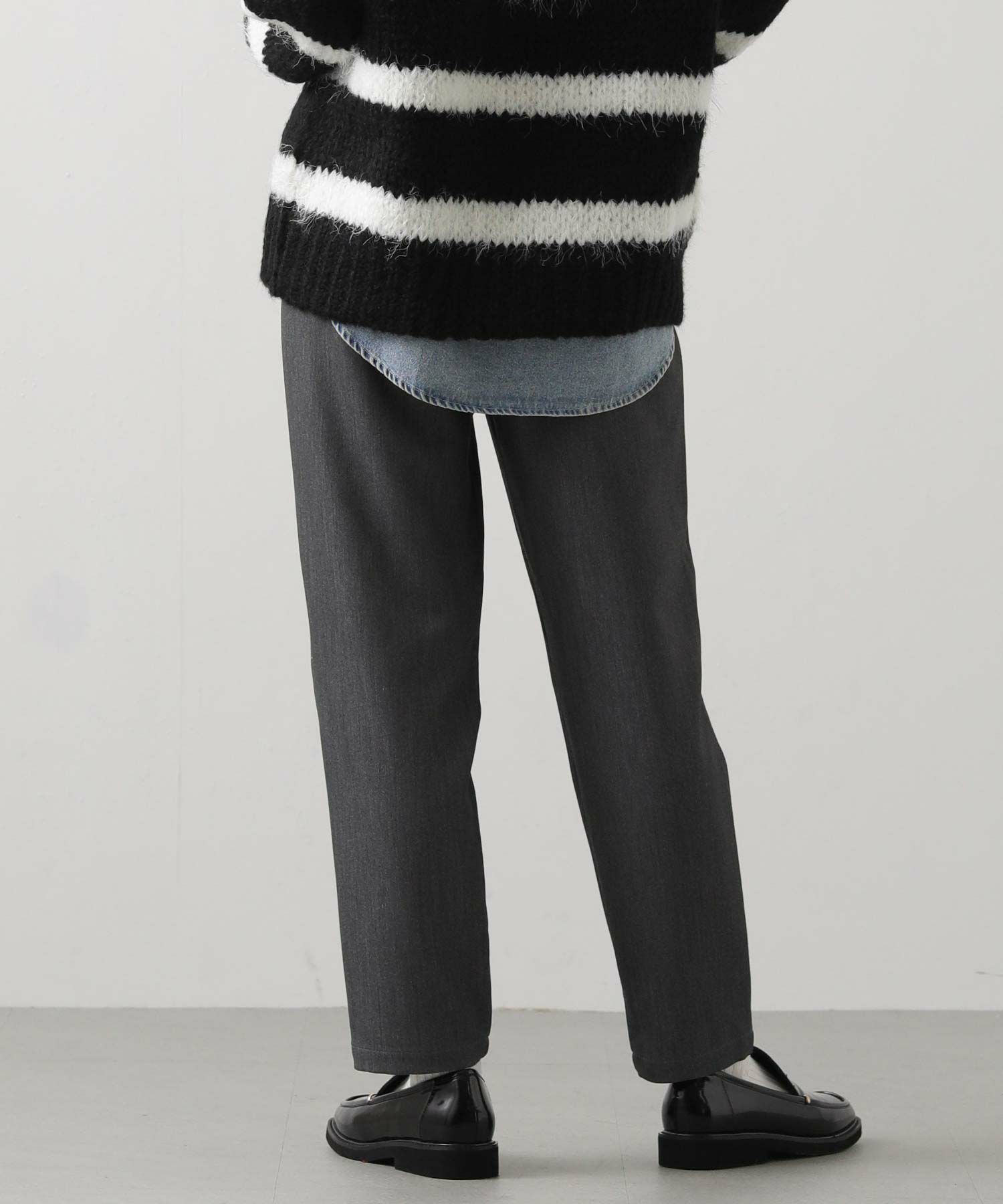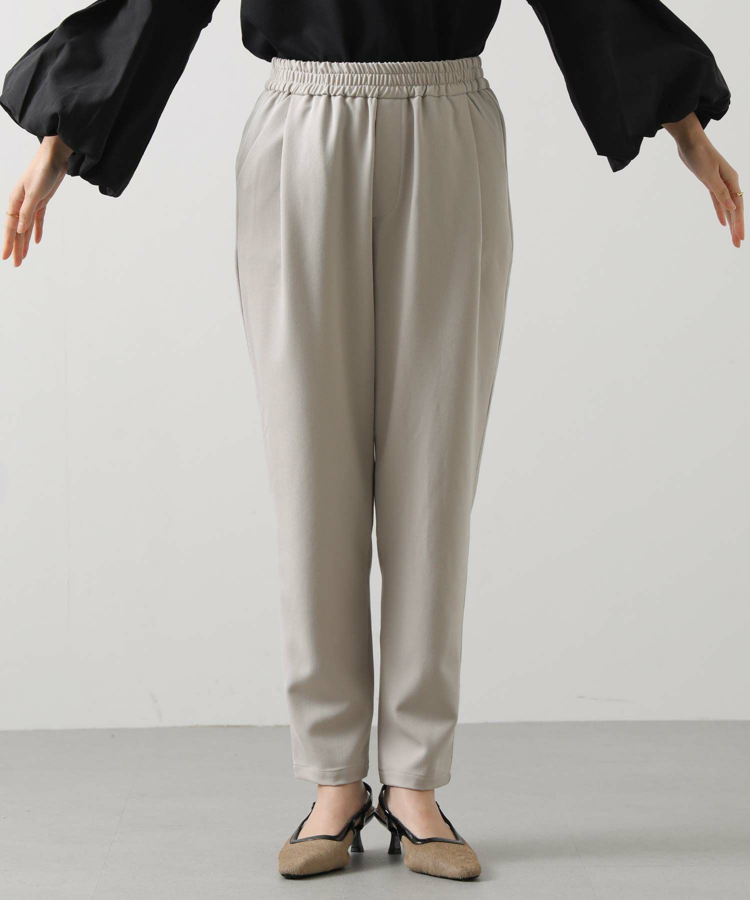 ウエストゴムの楽ちんな穿き心地に、きちんと見えするシルエットがオン・オフ使える万能パンツです。