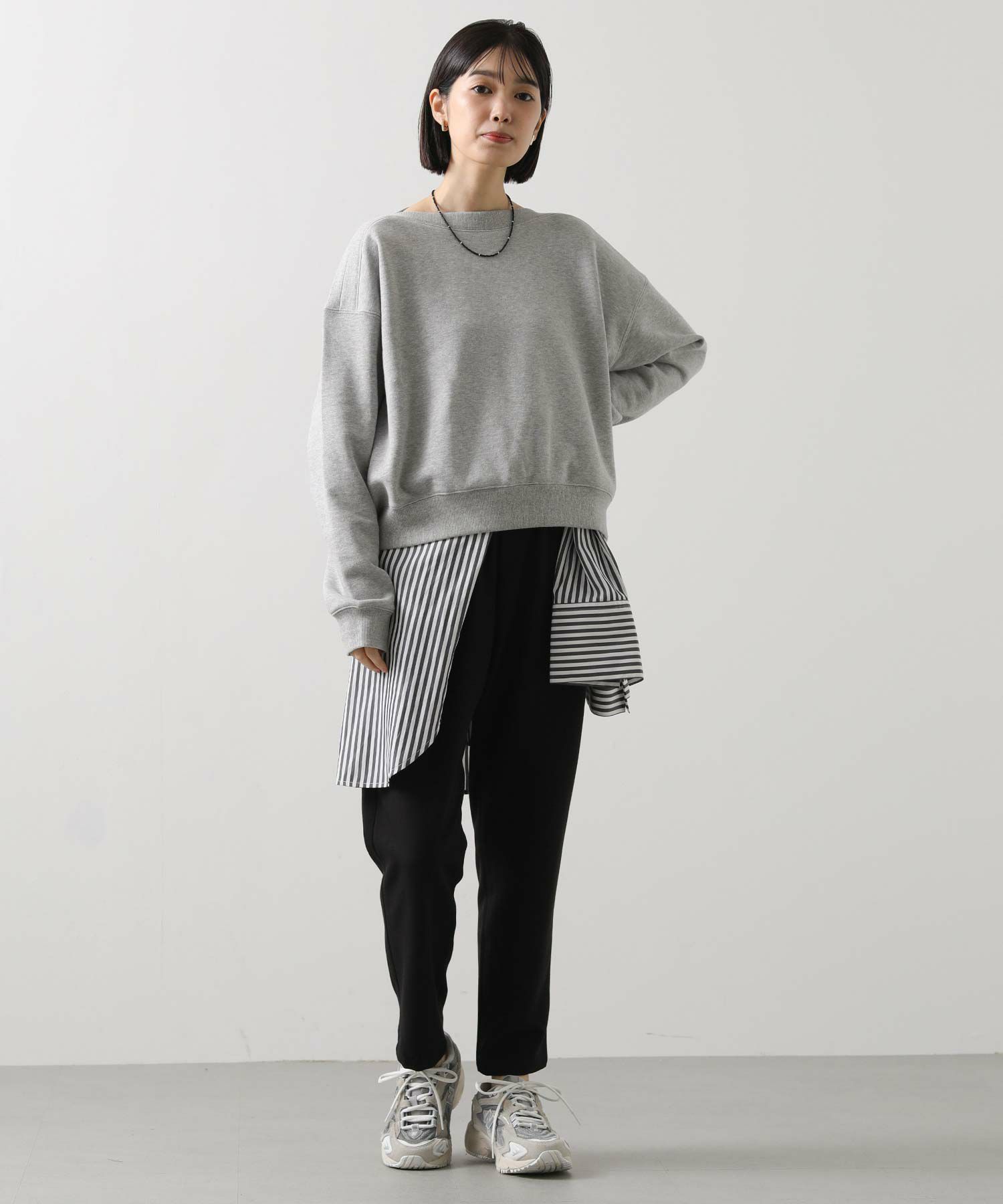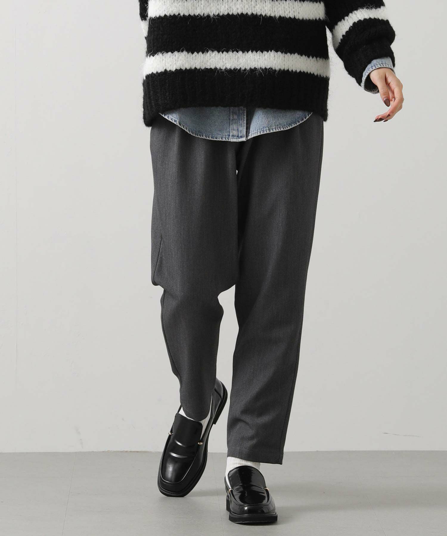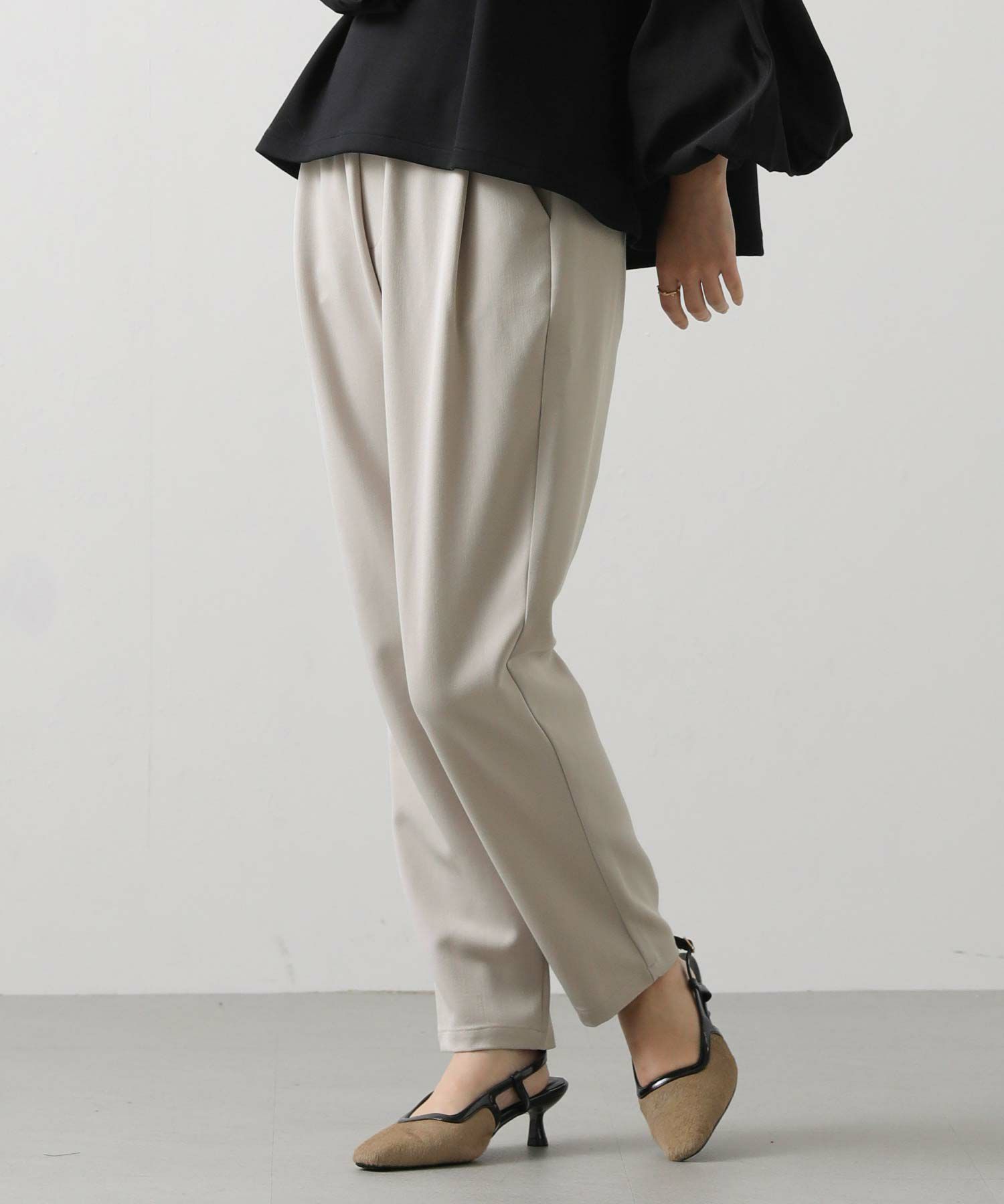 ウエストゴムの楽ちんな穿き心地に、きちんと見えするシルエットがオン・オフ使える万能パンツです。