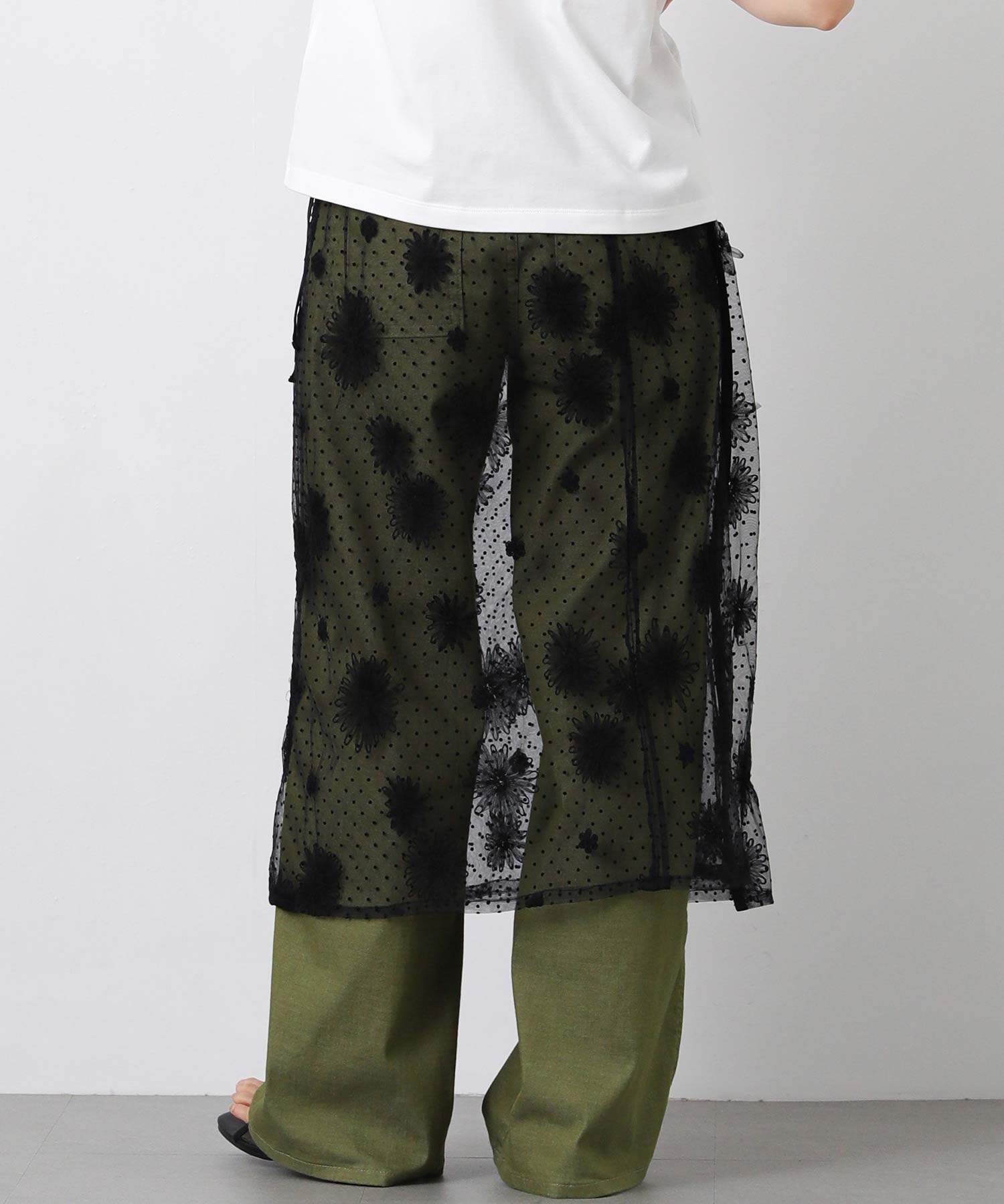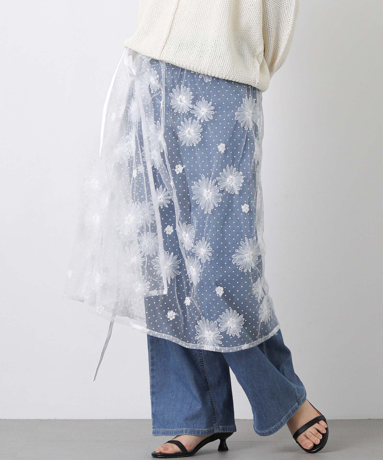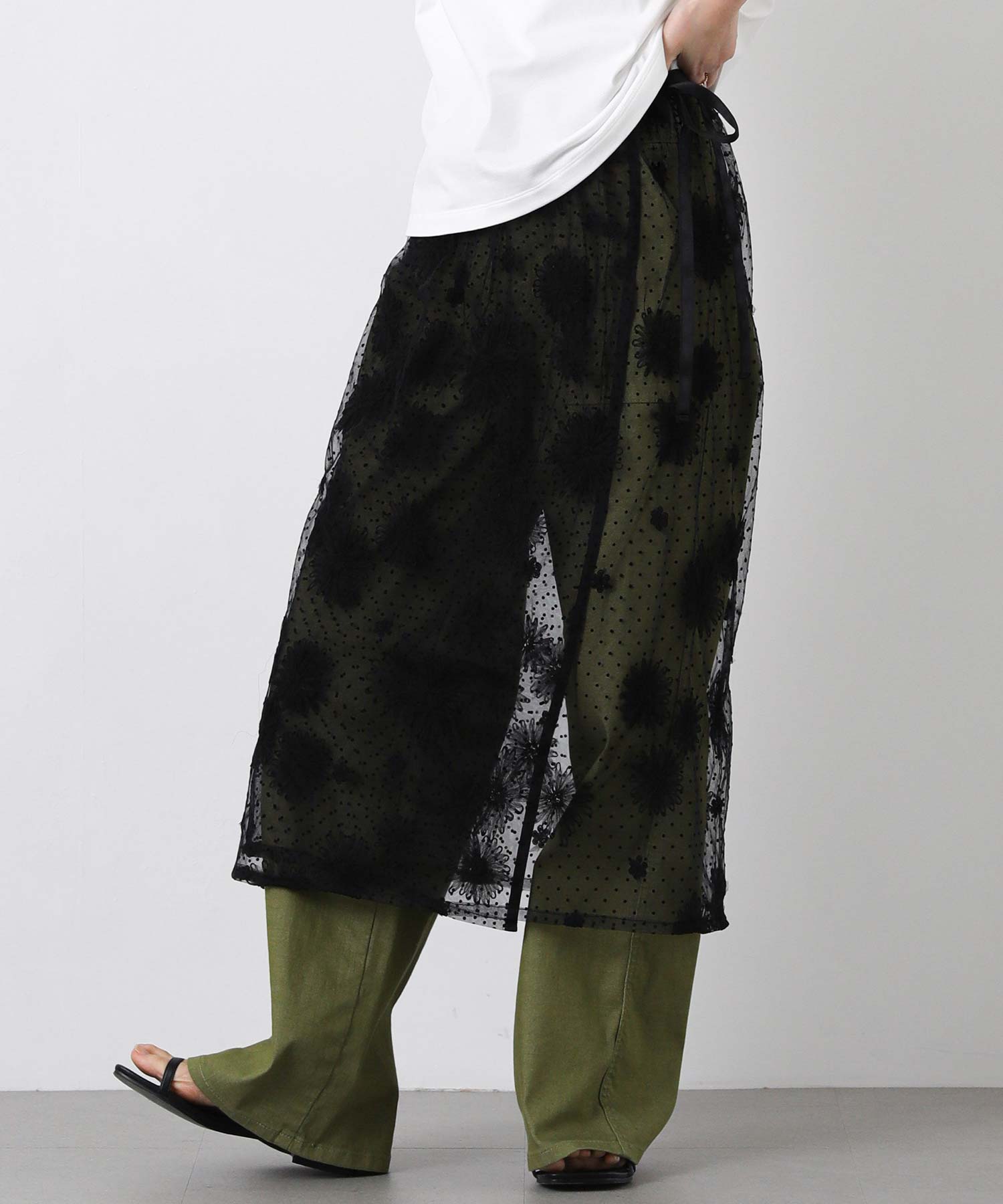 トレンド感のあるレース巻きスカート。