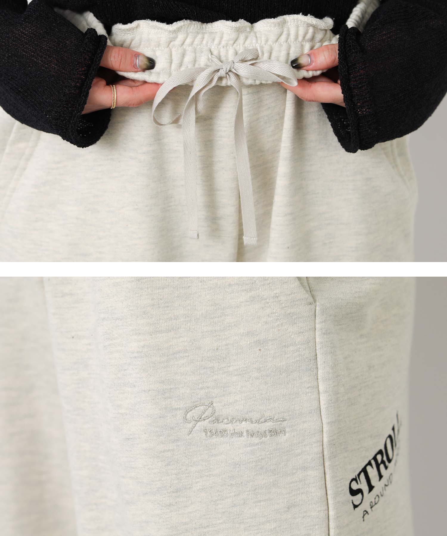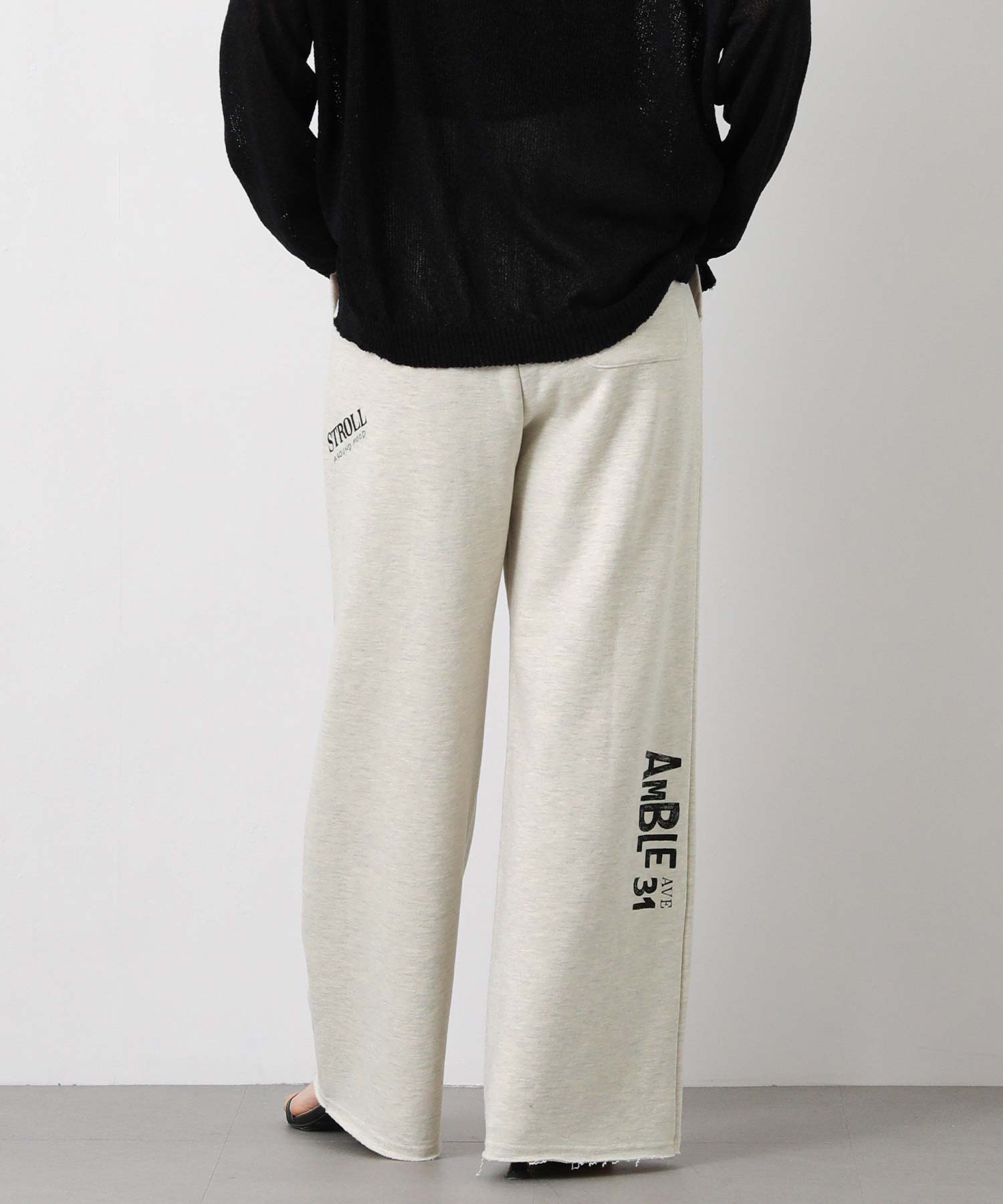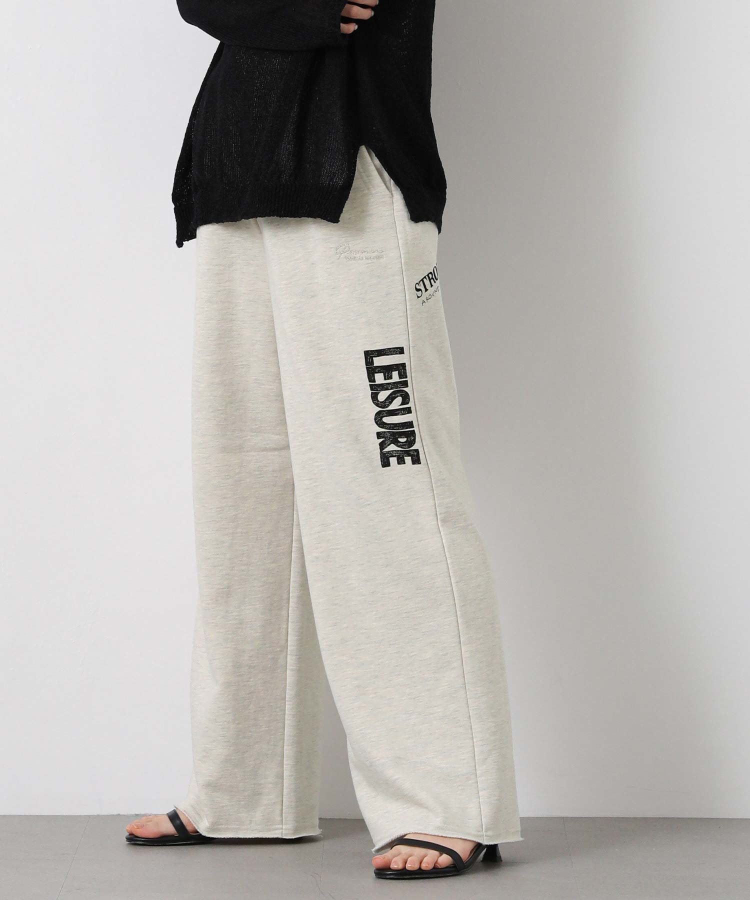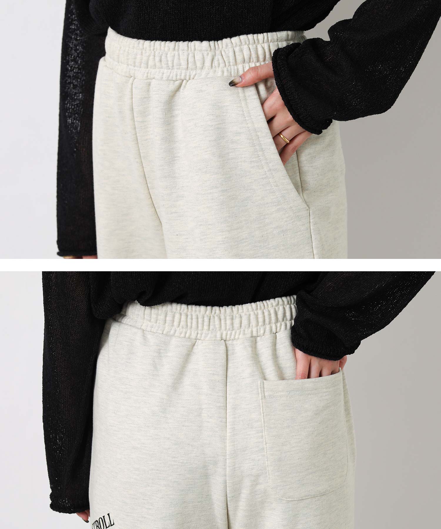 手書きのロゴを散りばめた遊び心のあるスウェットパンツ。