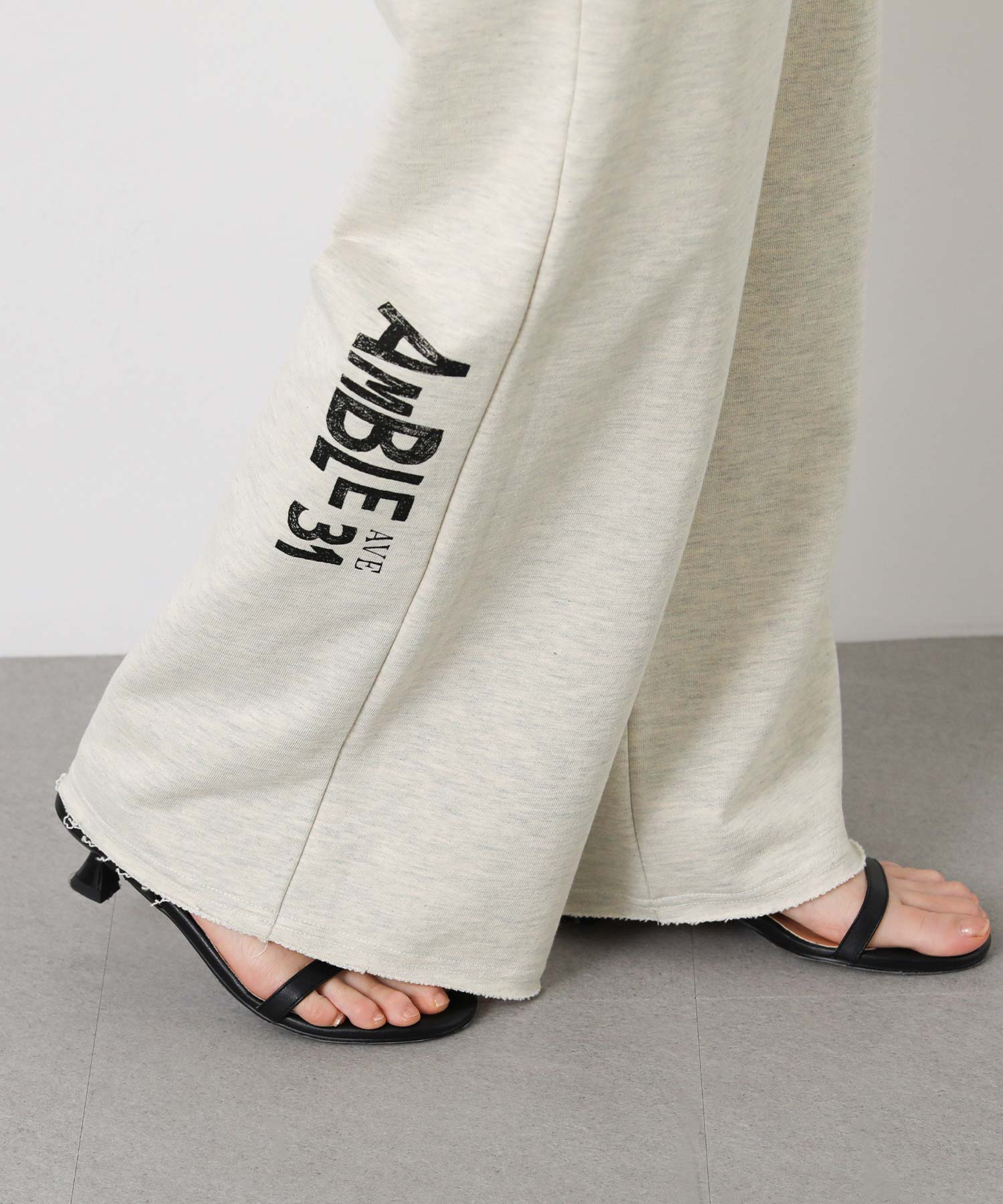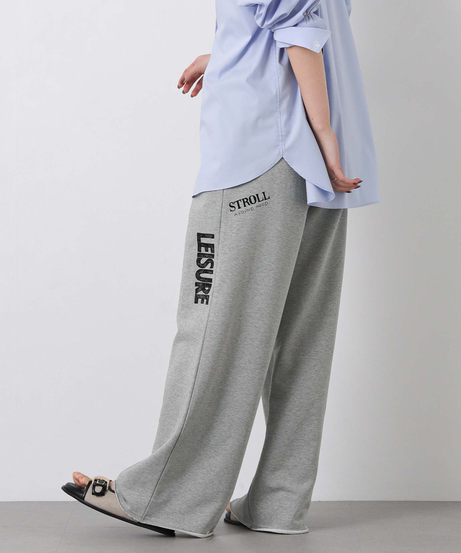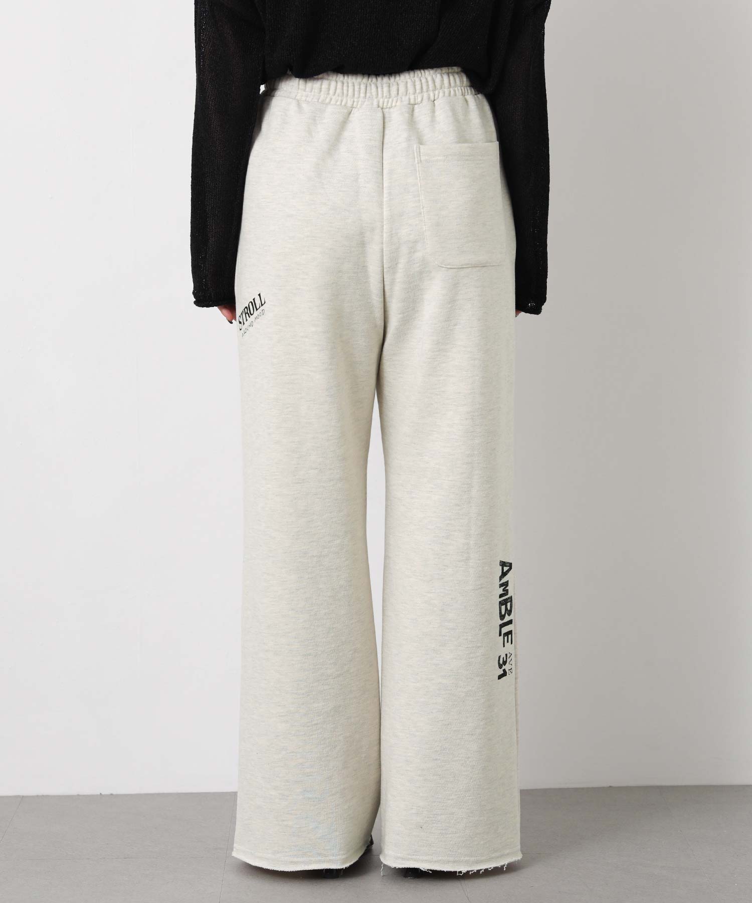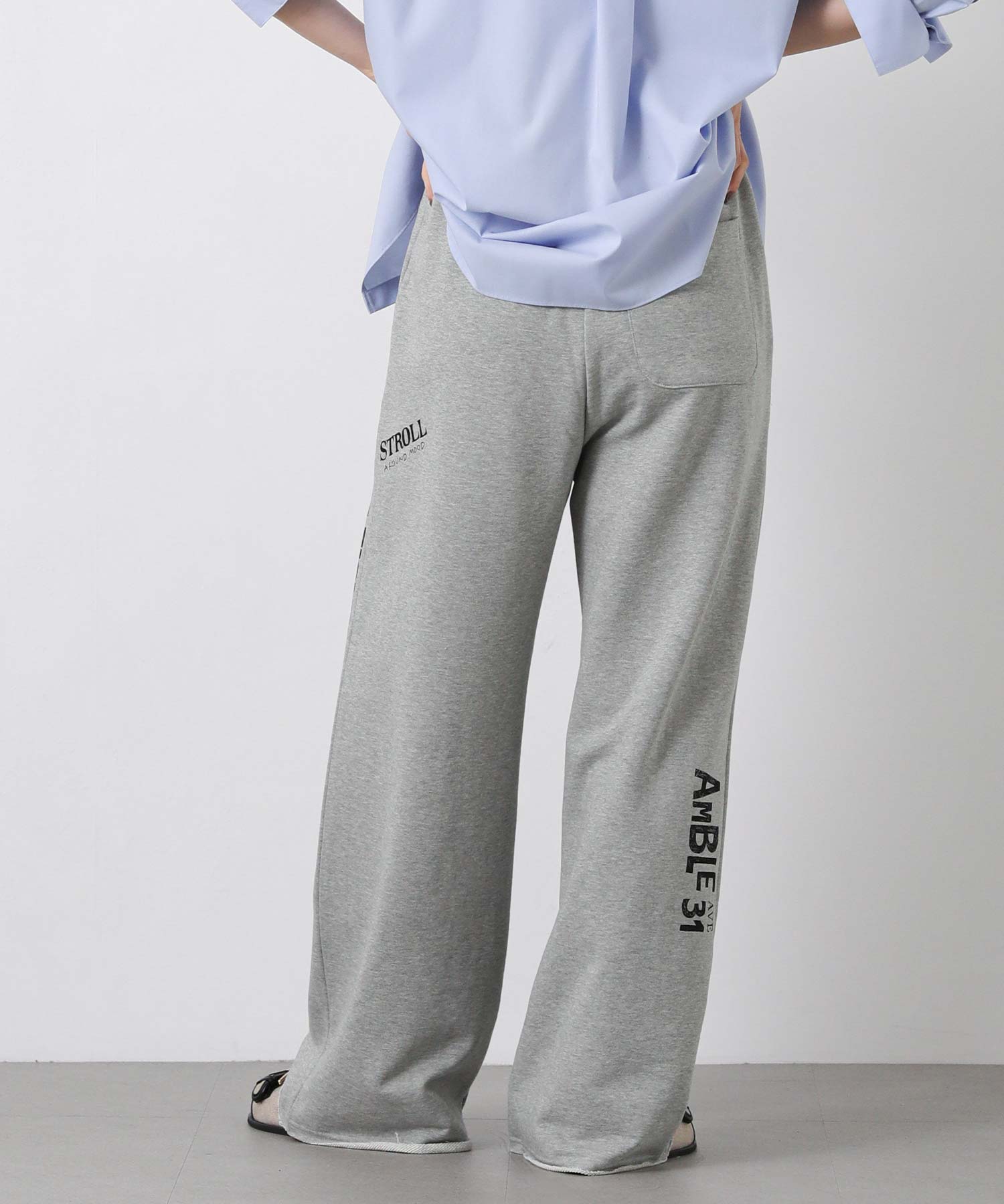 手書きのロゴを散りばめた遊び心のあるスウェットパンツ。