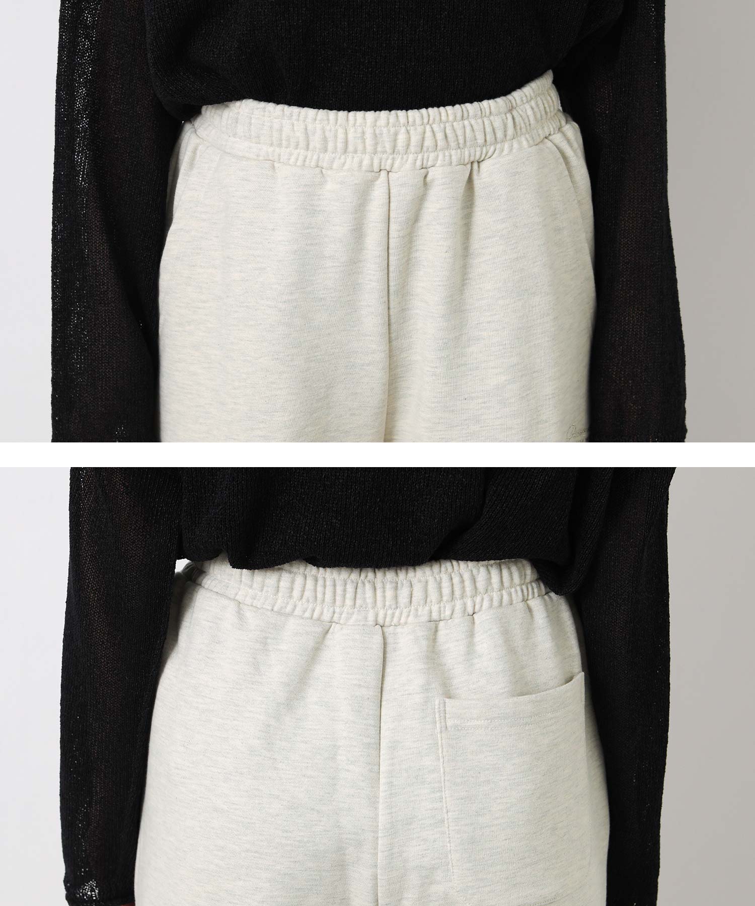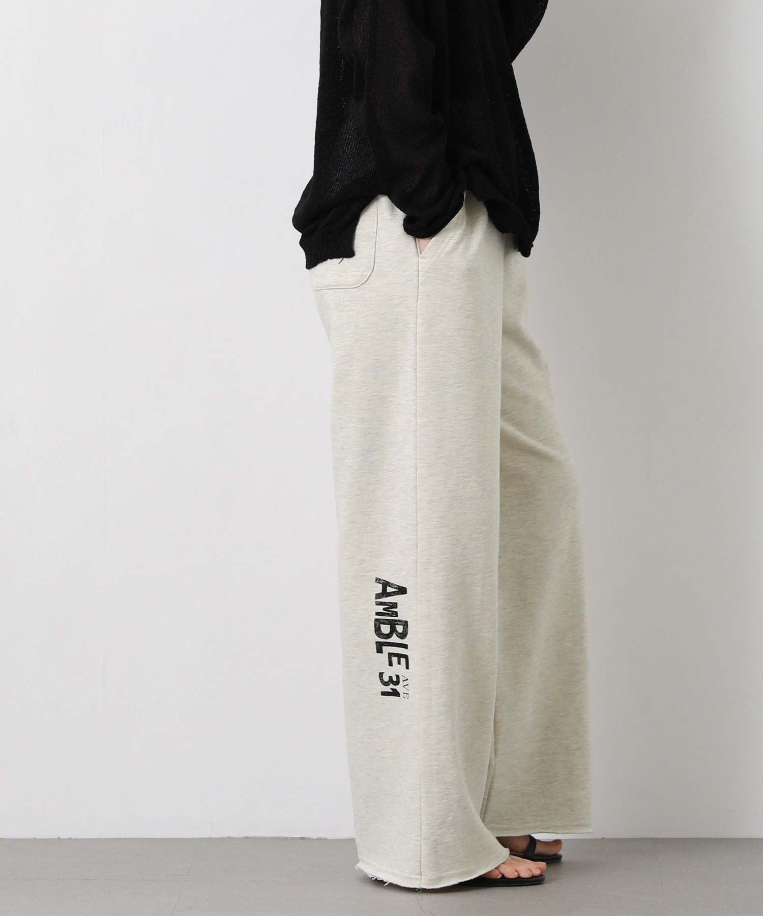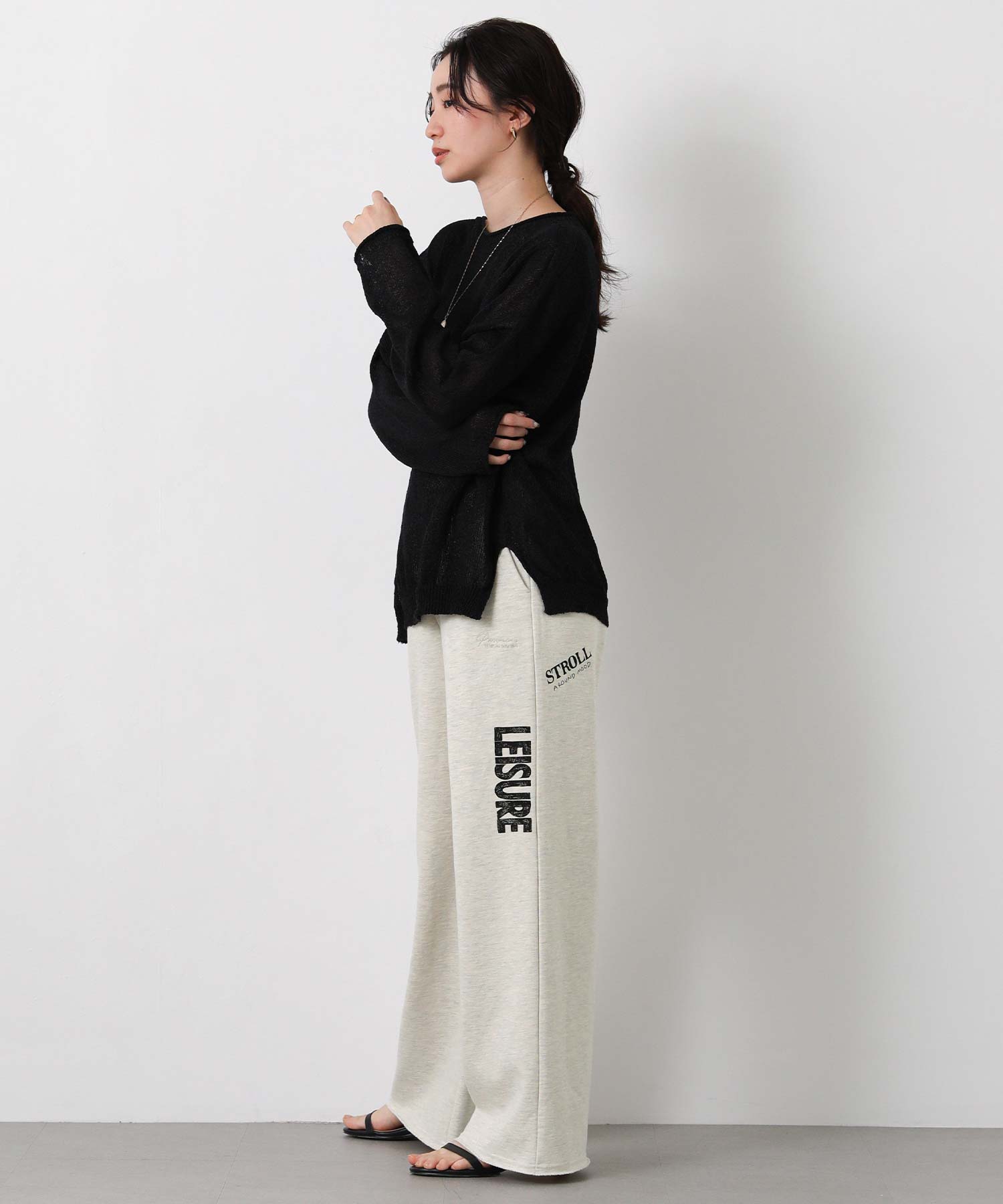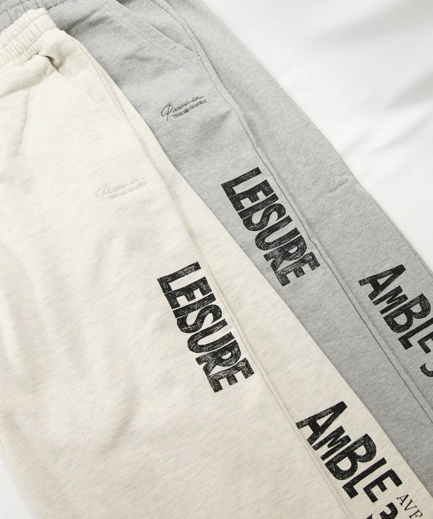 手書きのロゴを散りばめた遊び心のあるスウェットパンツ。
