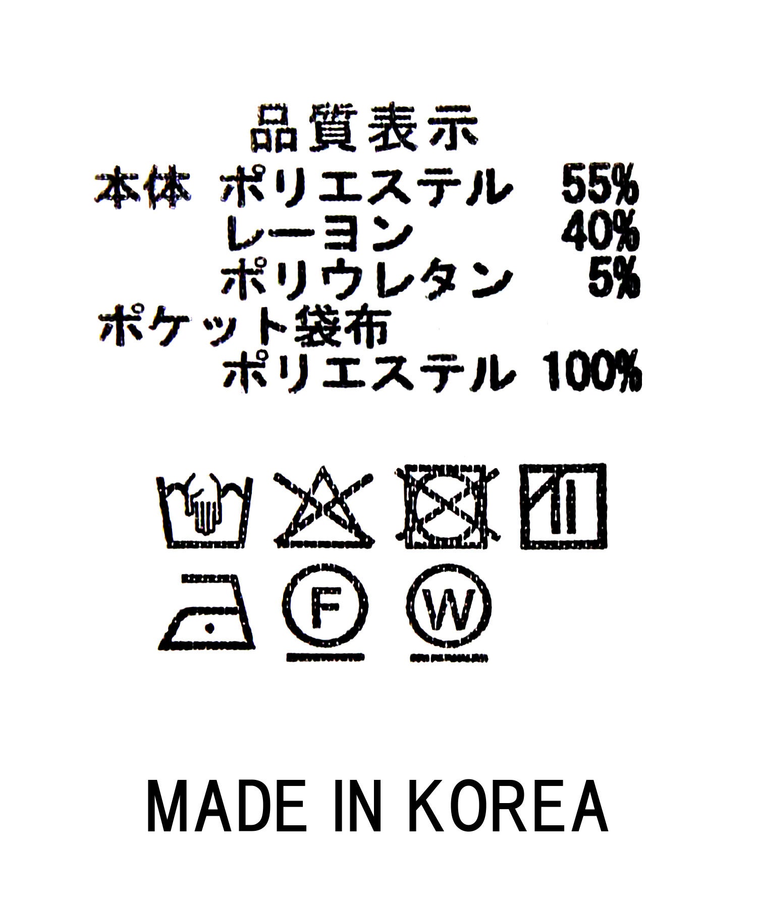 本体:ポリエステル55%、レーヨン40%、ポリウレタン5%