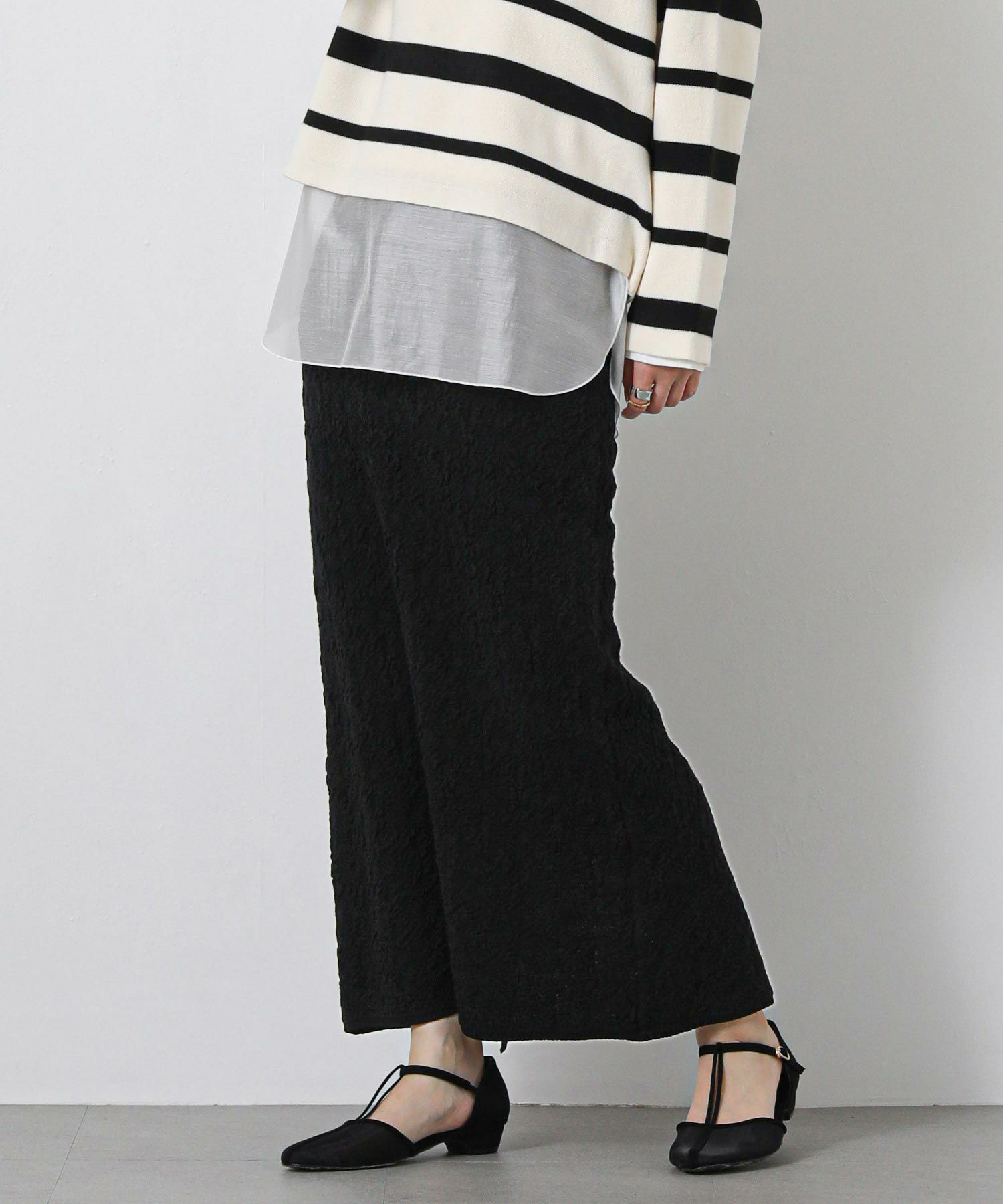立体感のあるジャガード編みがレースのような雰囲気のニットスカート。