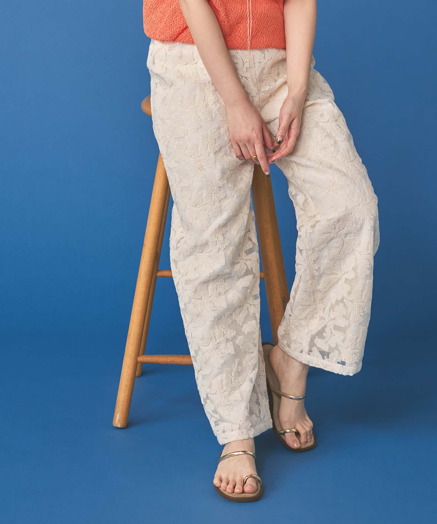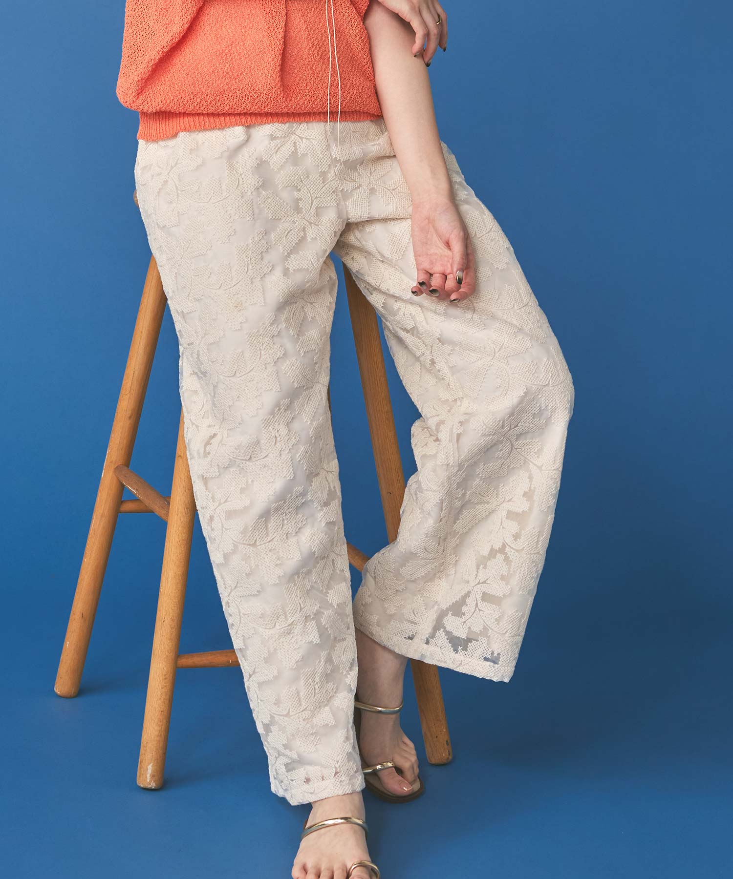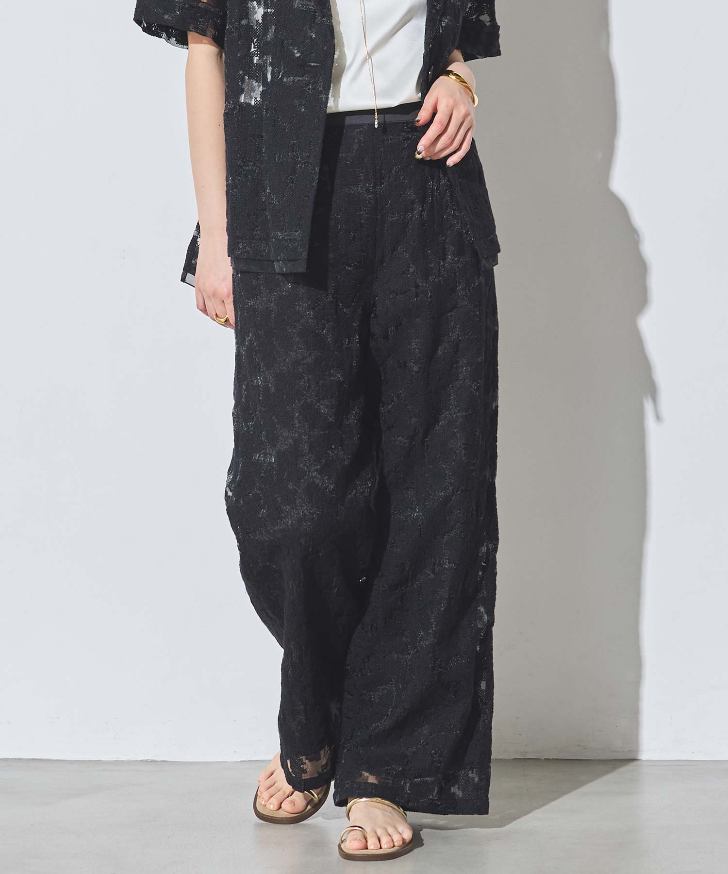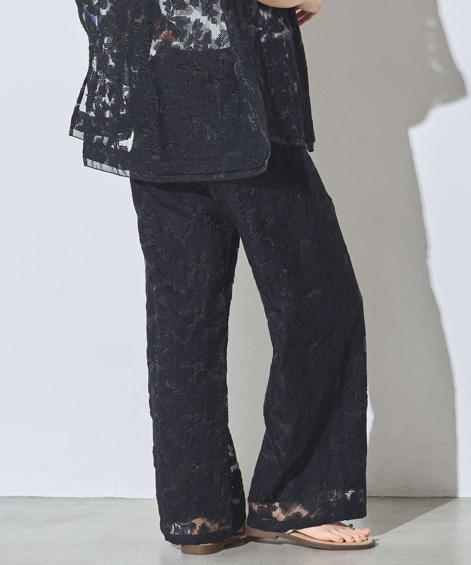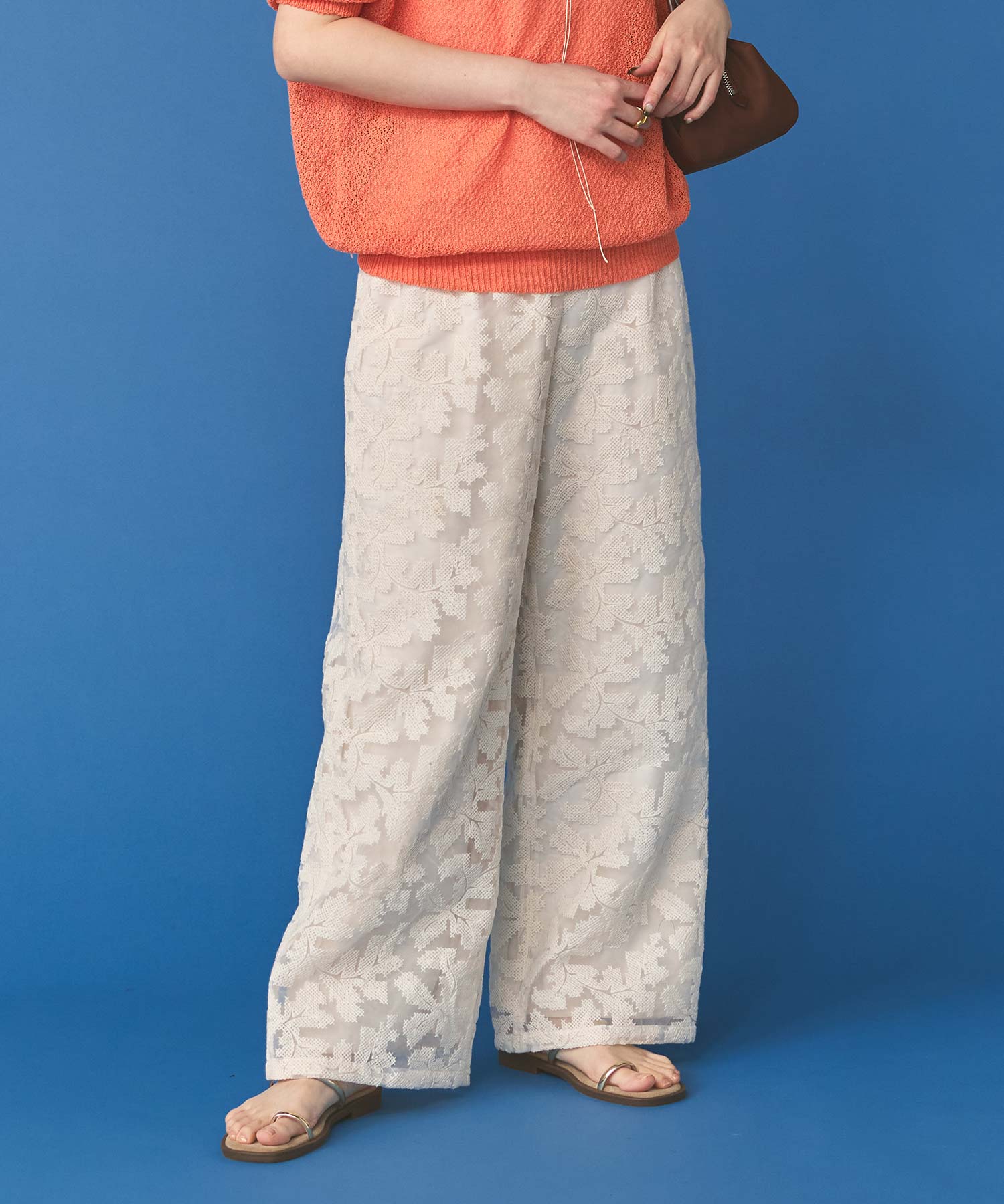 オーガンジーの透け感で重たくなり過ぎず、旬な抜け感を引き立ててくれるレースパンツ。