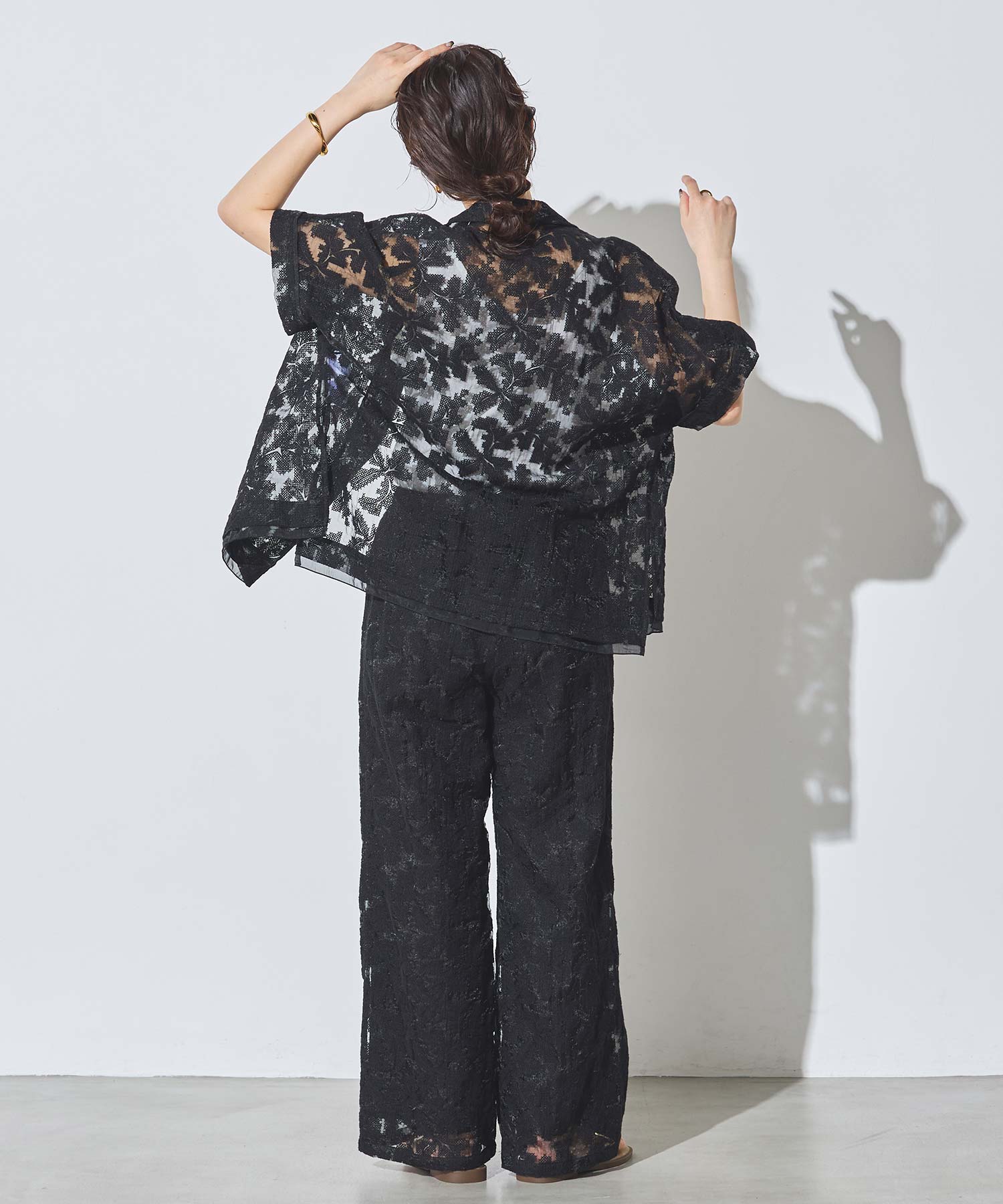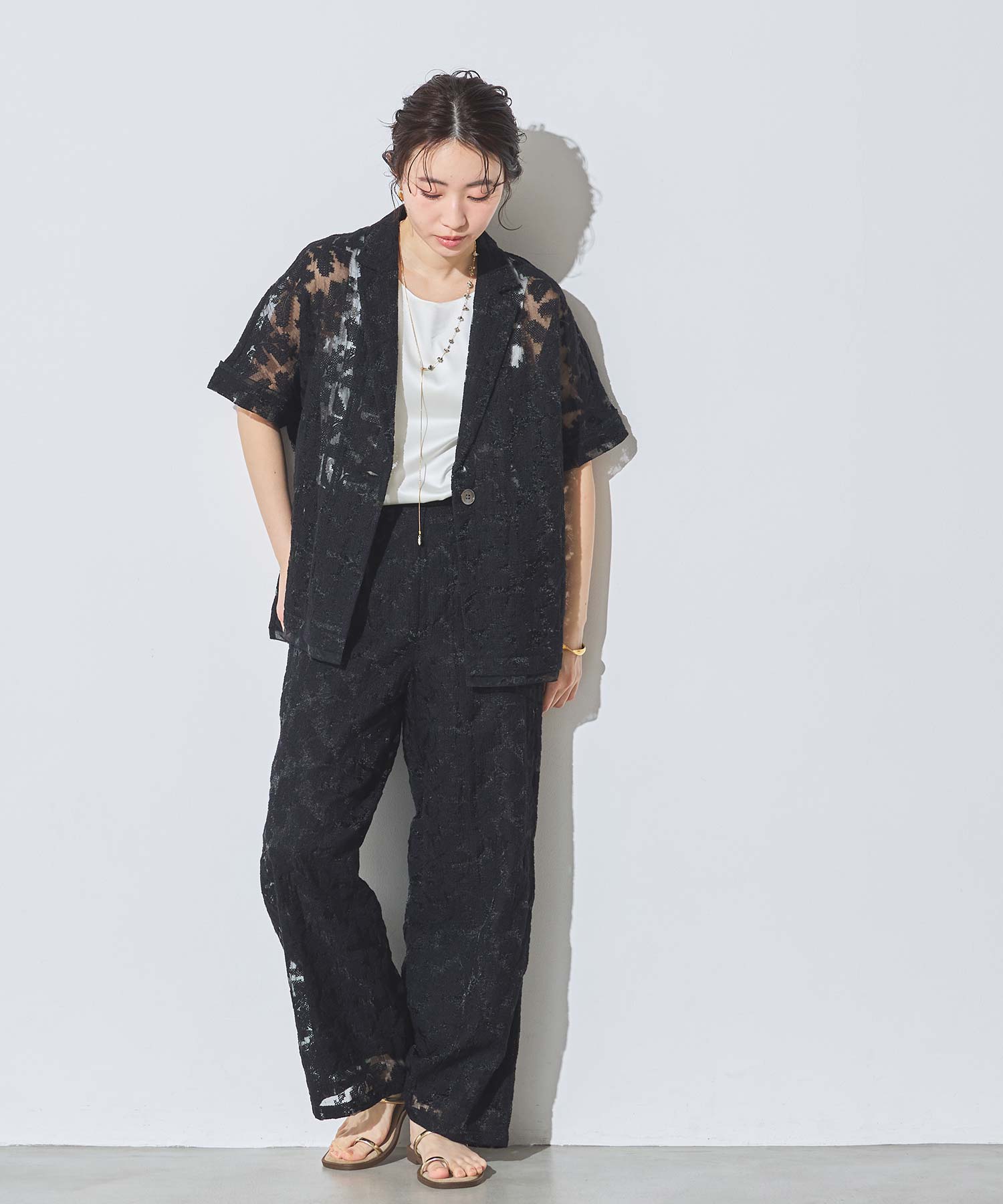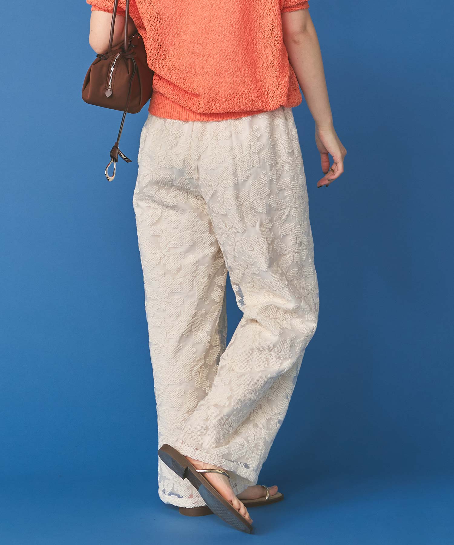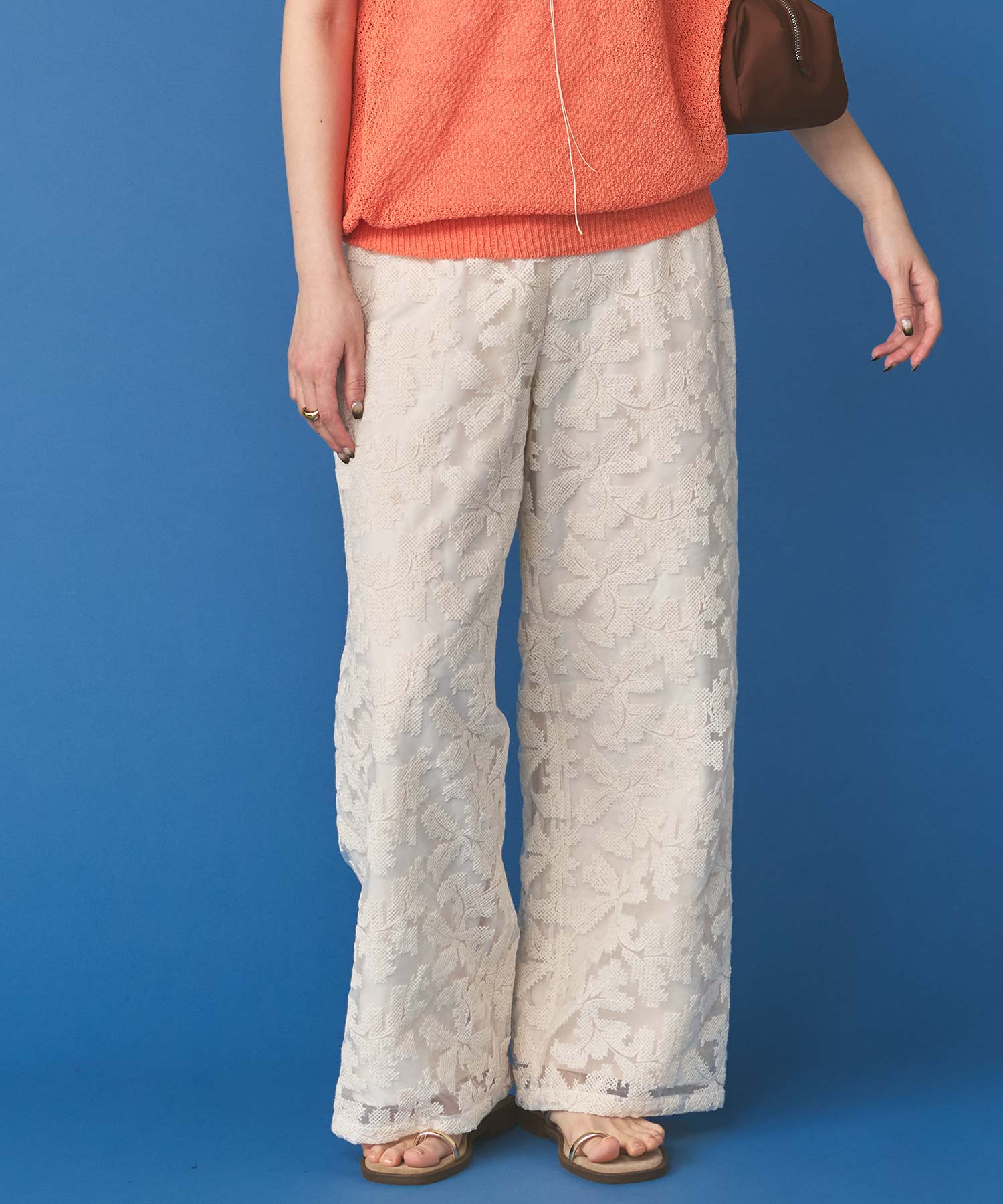 オーガンジーの透け感で重たくなり過ぎず、旬な抜け感を引き立ててくれるレースパンツ。