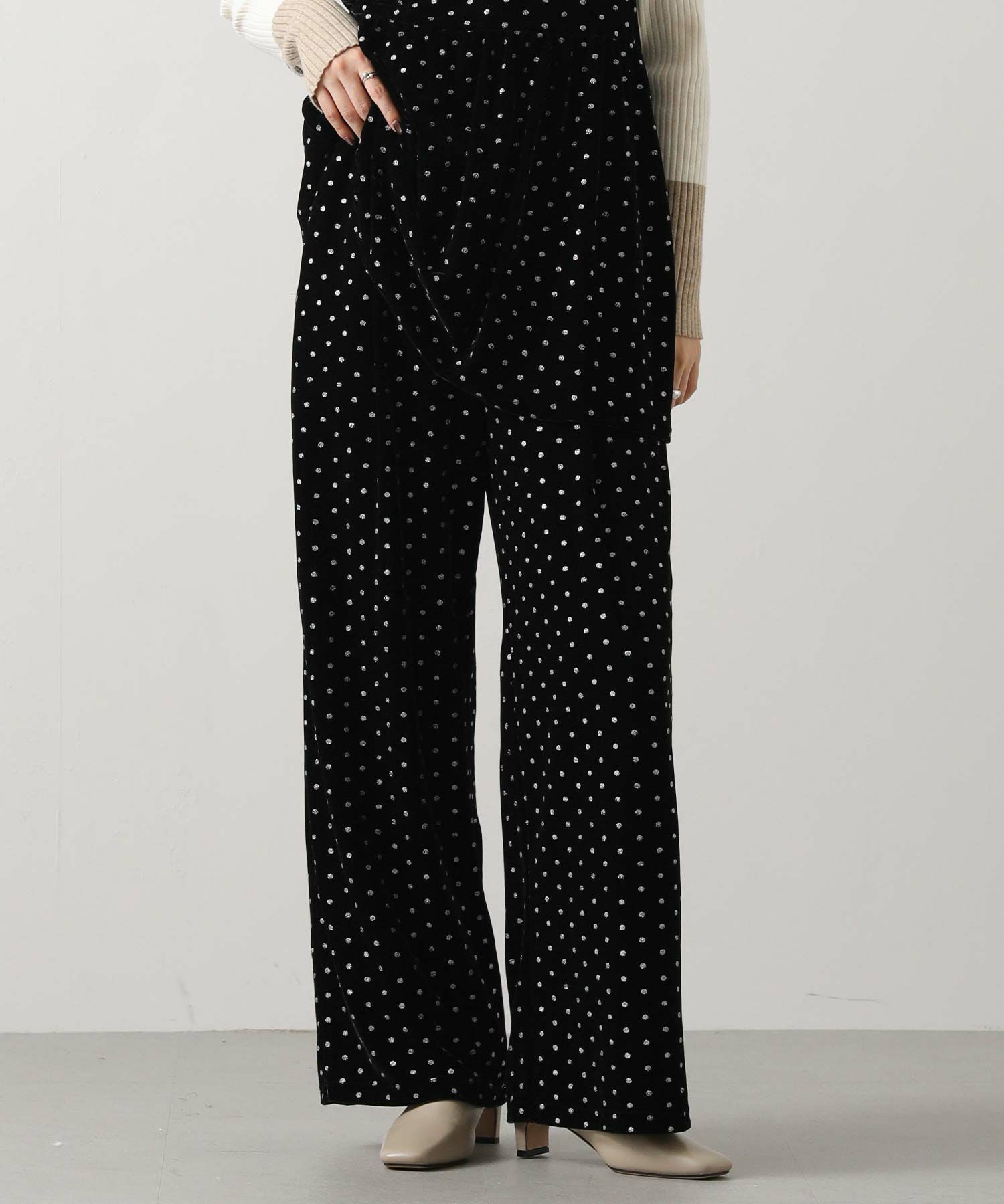 一気に旬顔になれるキラっとドット柄が華やかなベロアパンツ。