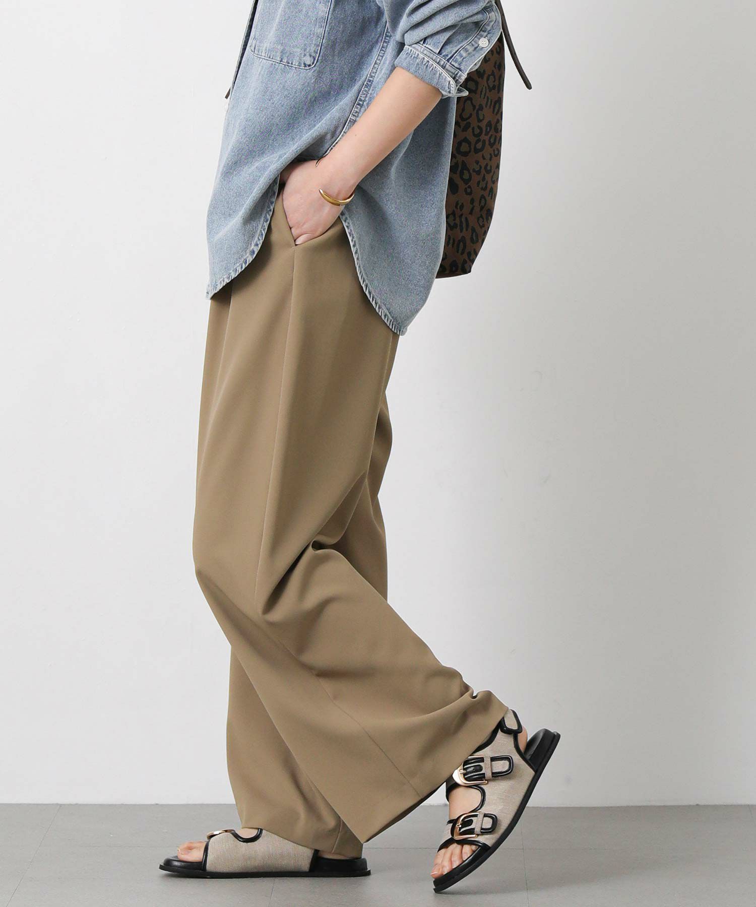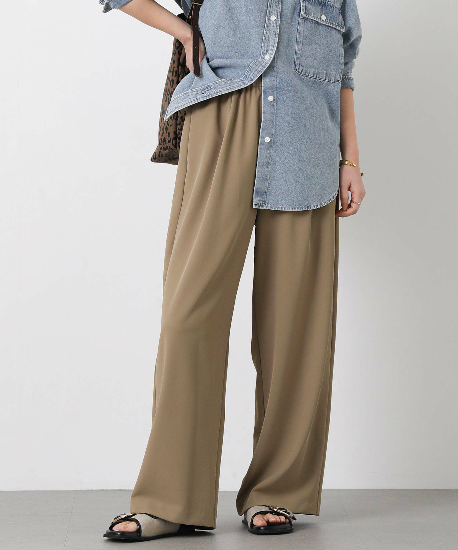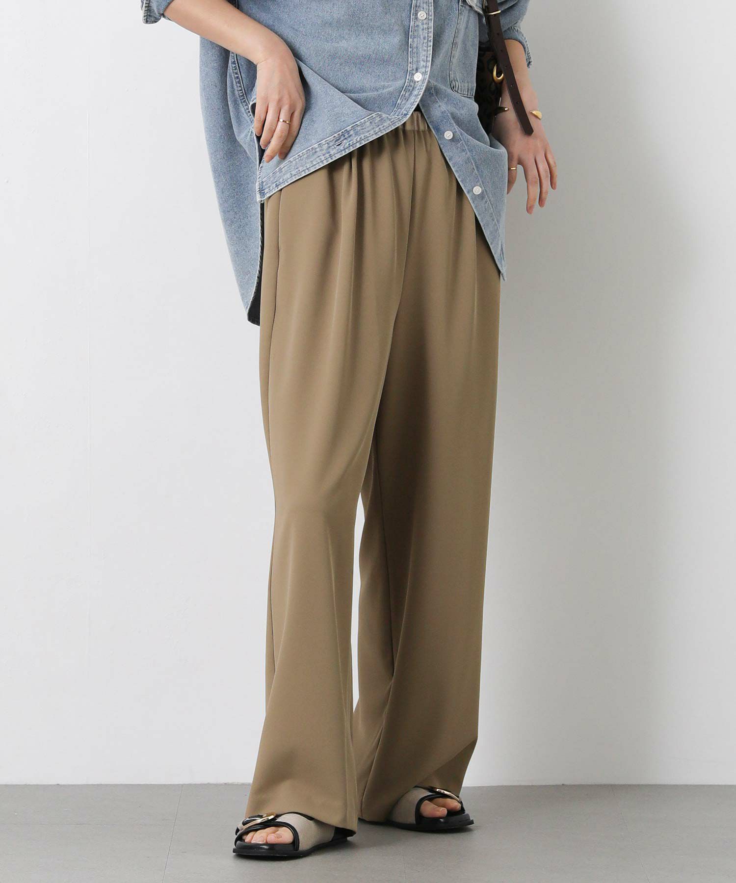 しなやかな落ち感と、上品でマットな艶感が美しいパンツ。