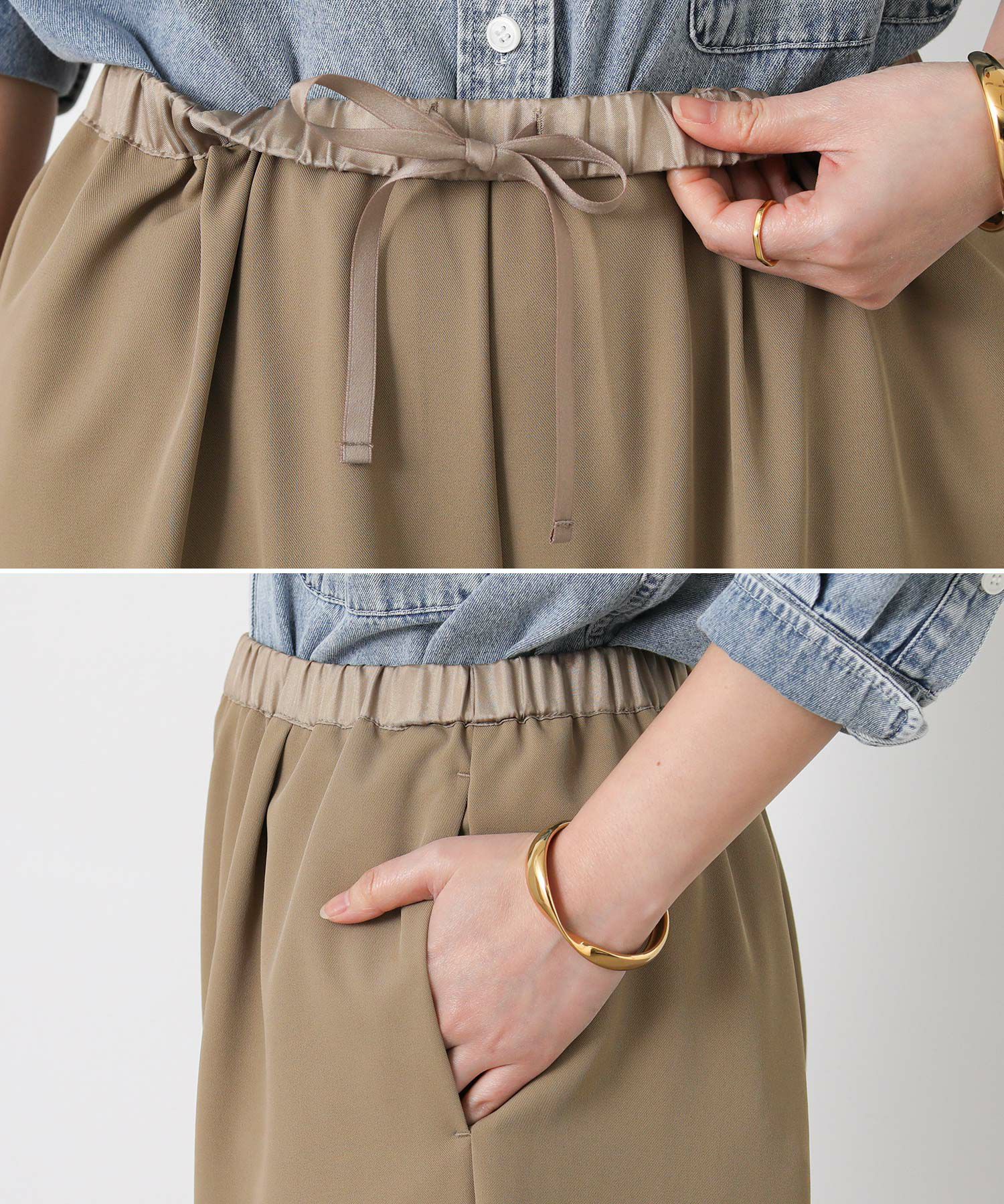 ウエストもゴム仕様なのでストレスフリーな穿き心地。