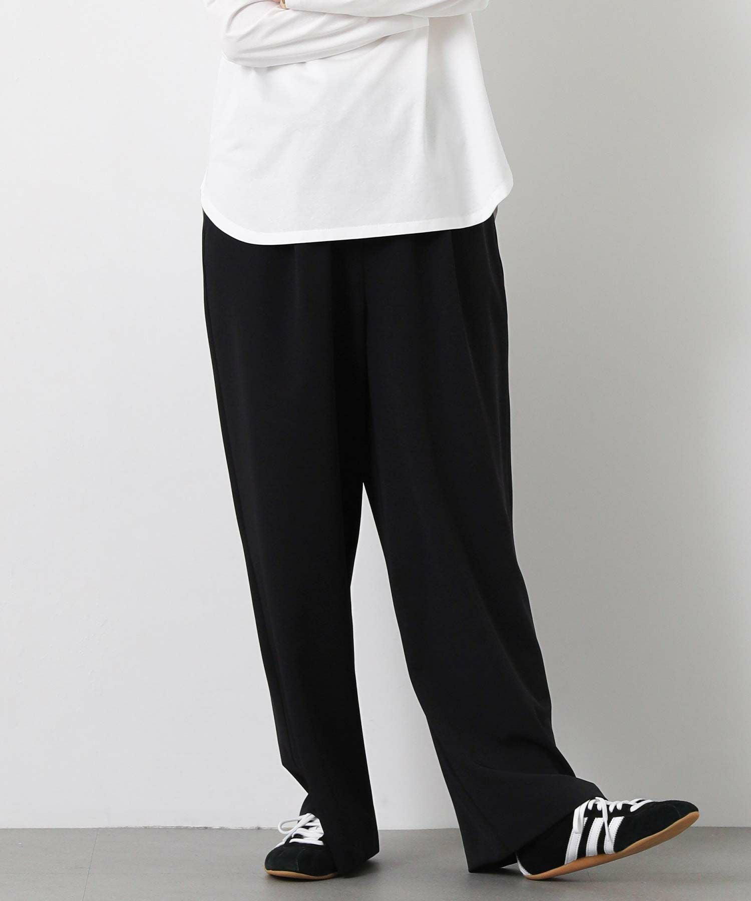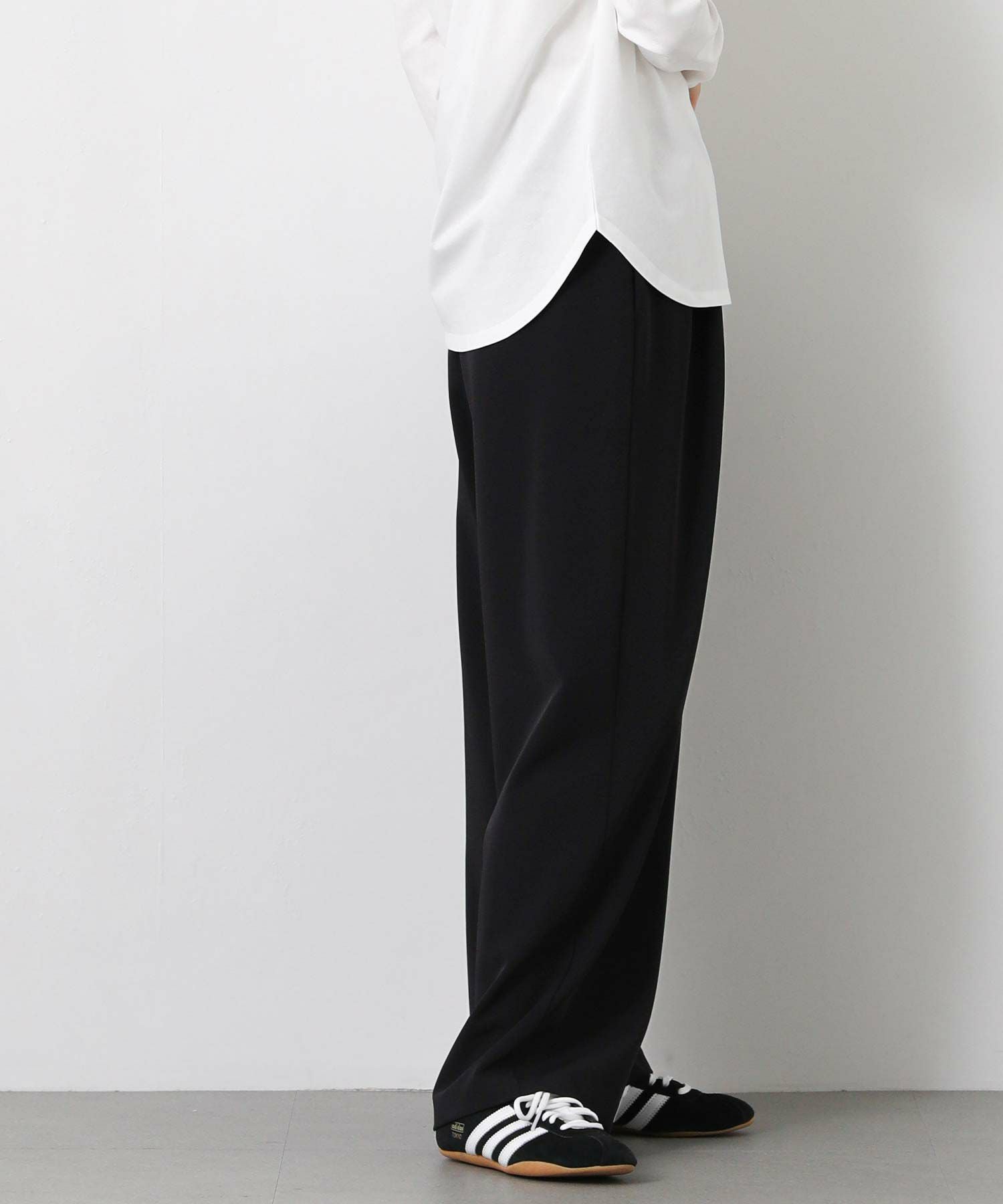 しなやかな落ち感と、上品でマットな艶感が美しいパンツ。