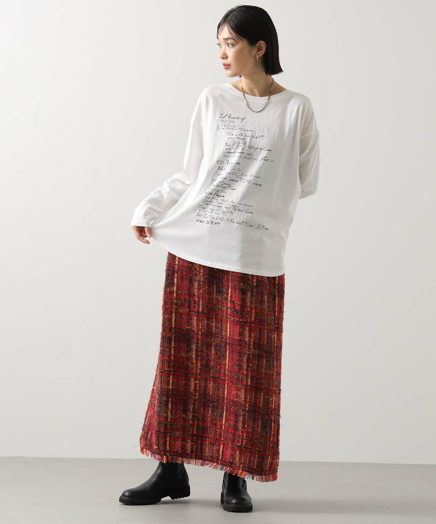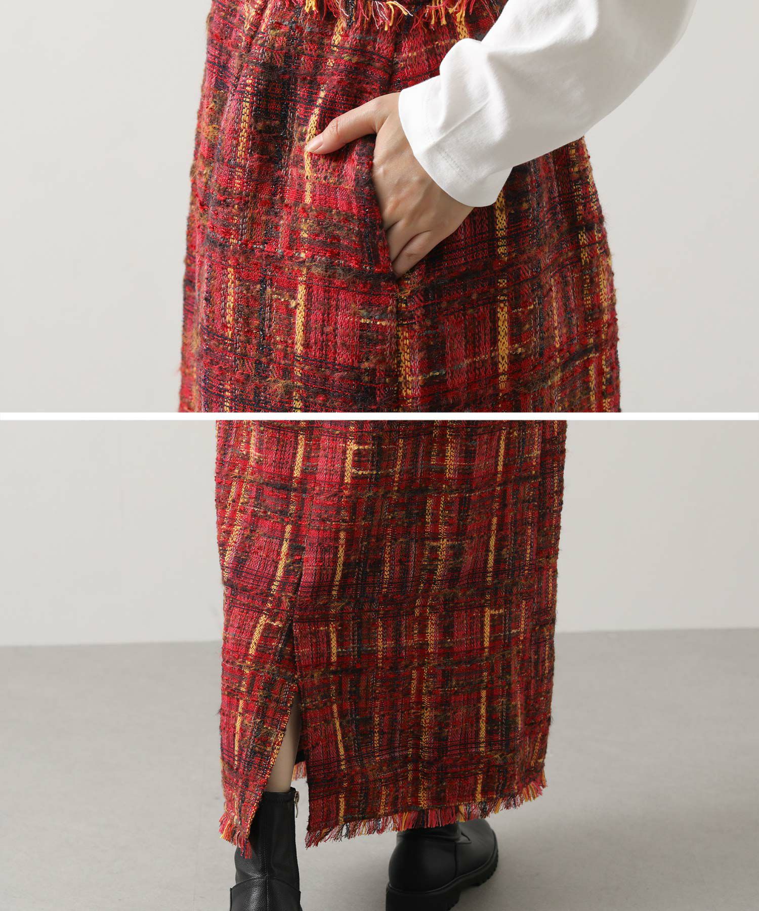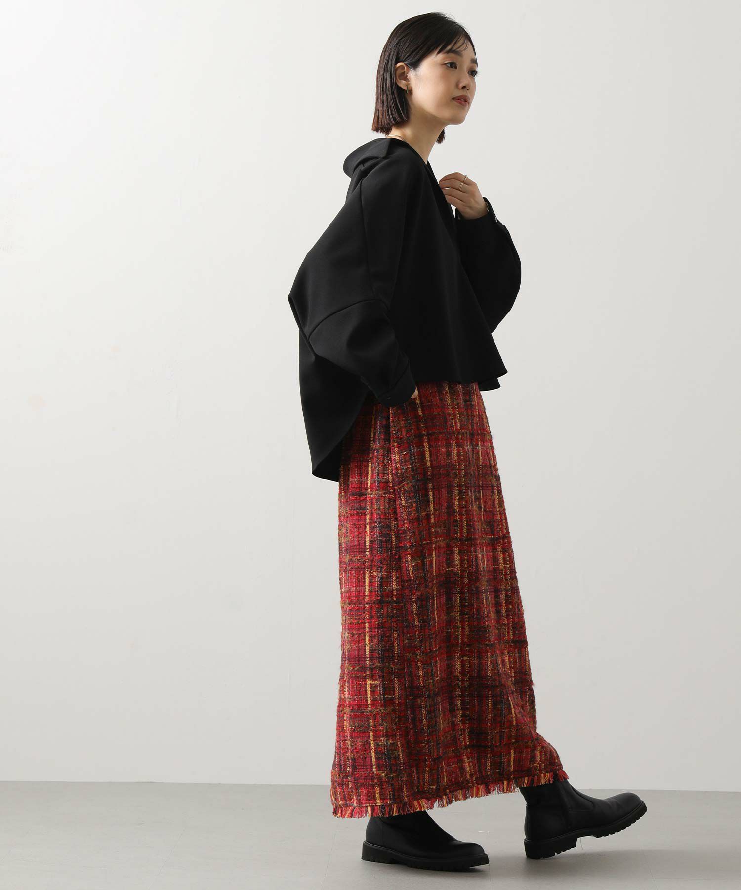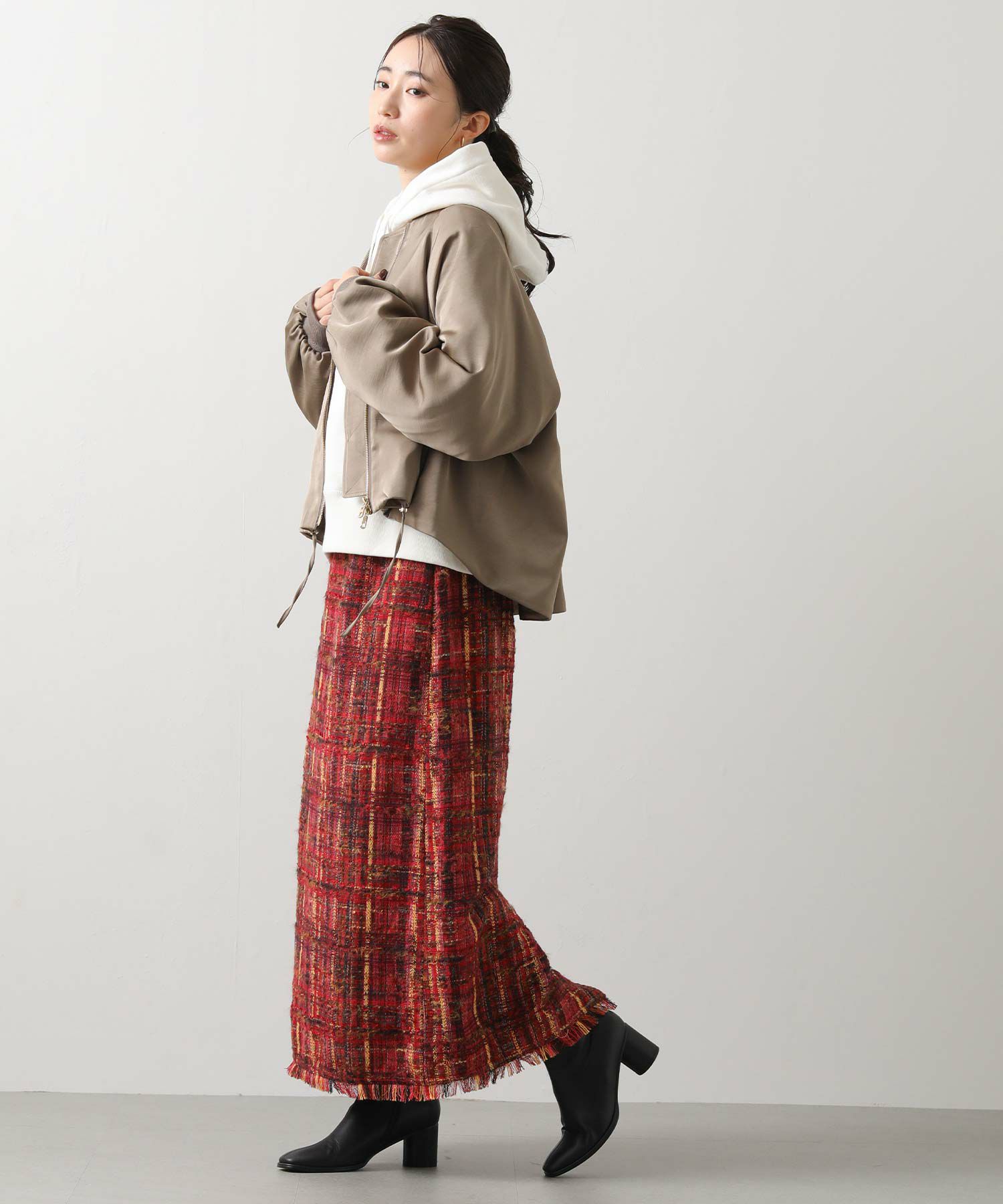 柔らかいツィードを使用しているので、かっちりしすぎずカジュアルにスタイリングが決まります。