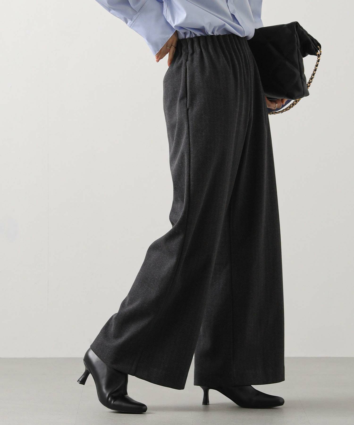 微起毛素材の広がりすぎない程よいワイドシルエットのイージーパンツ。