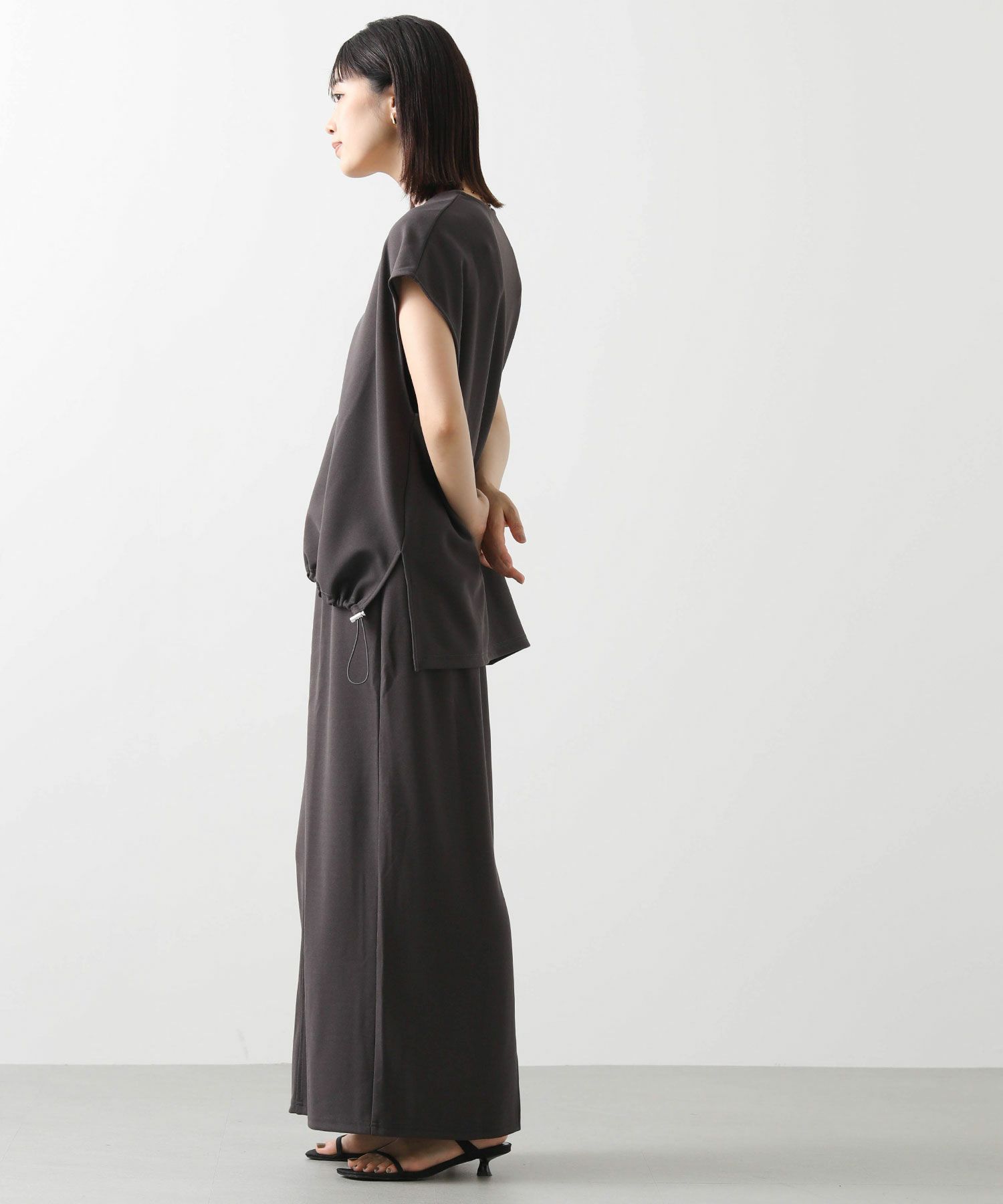 フィットし過ぎないストレートシルエットに後ろゴムウエストで楽な穿き心地。