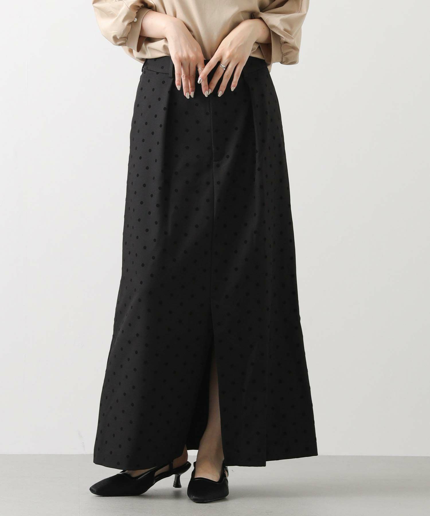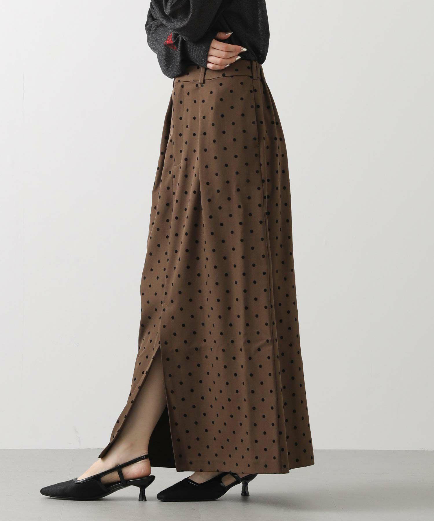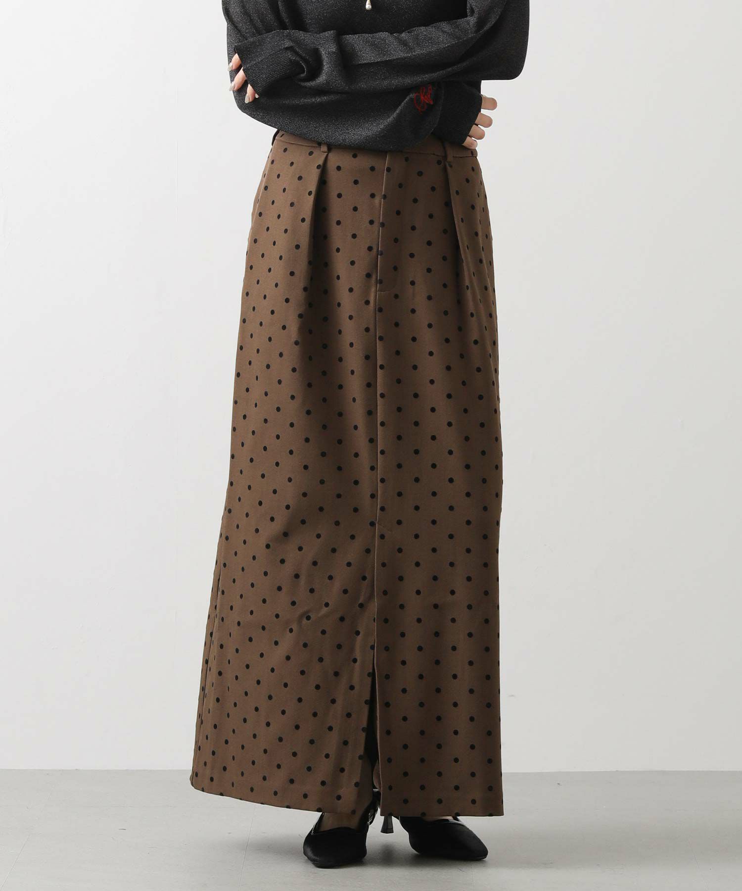 【CLOCHE/クロッシェ】から、ドットフロッキーのタイトスカートをセレクト。