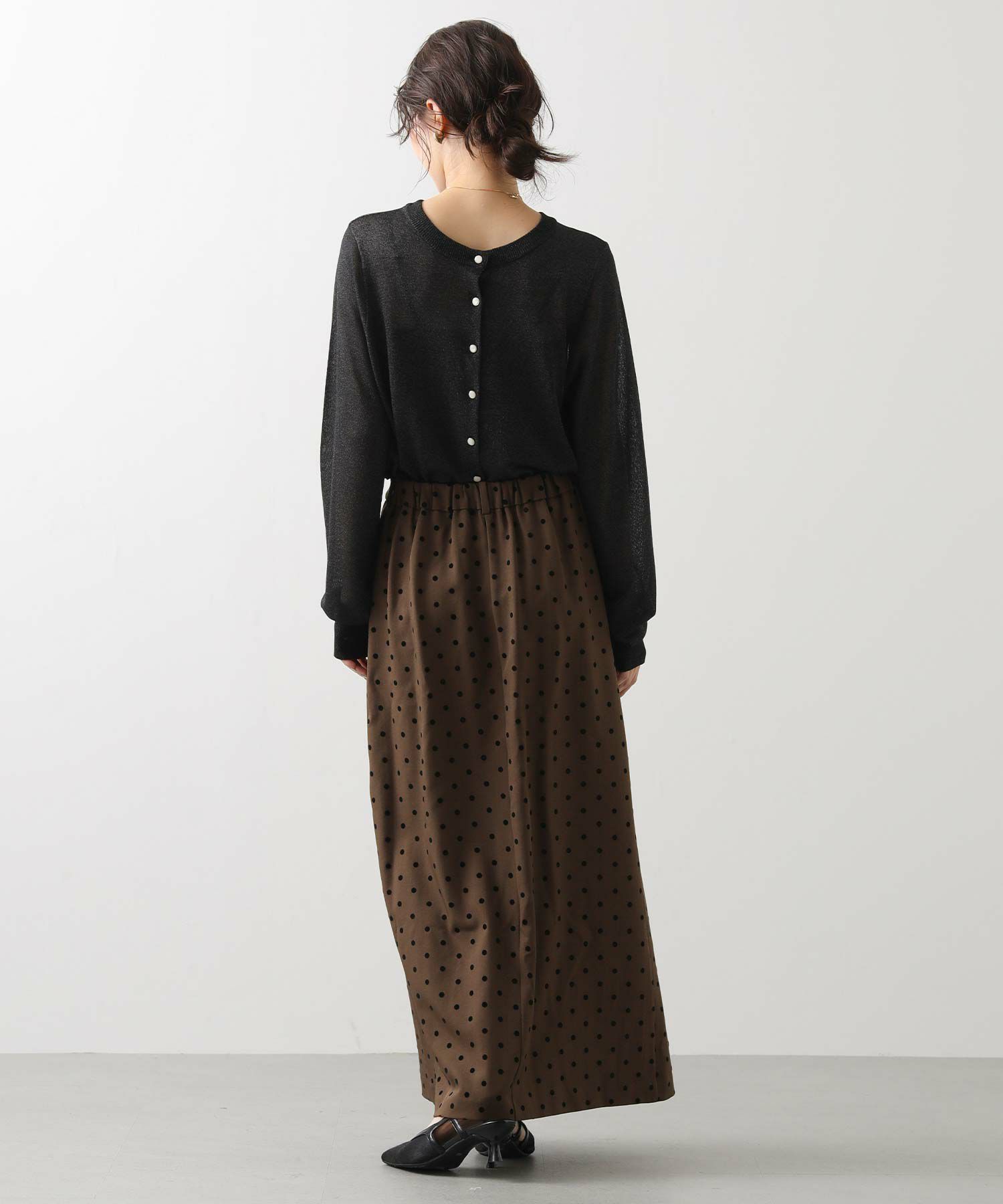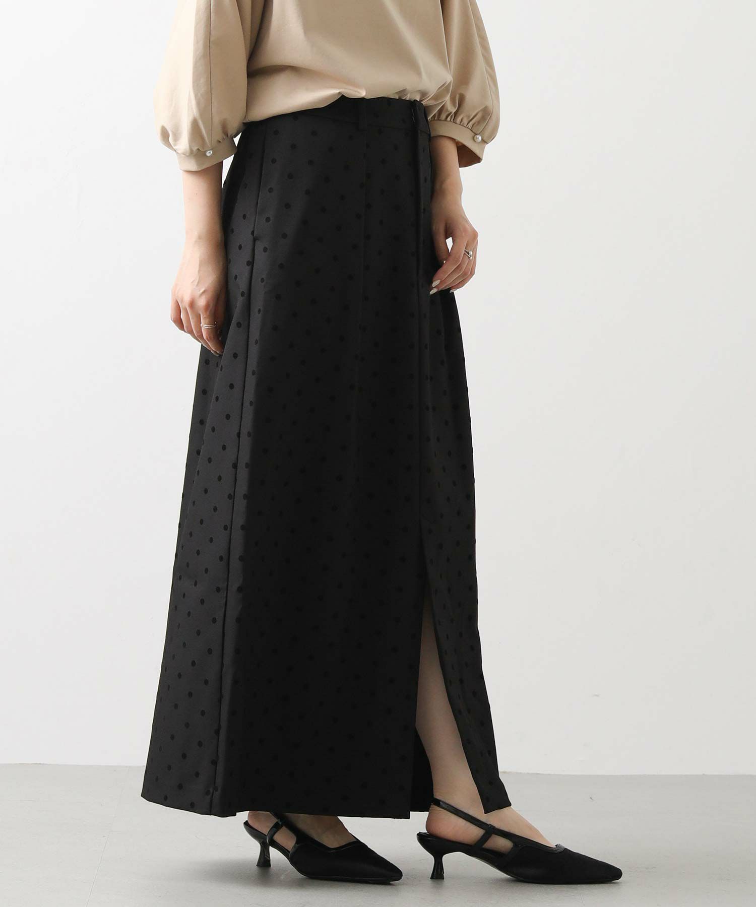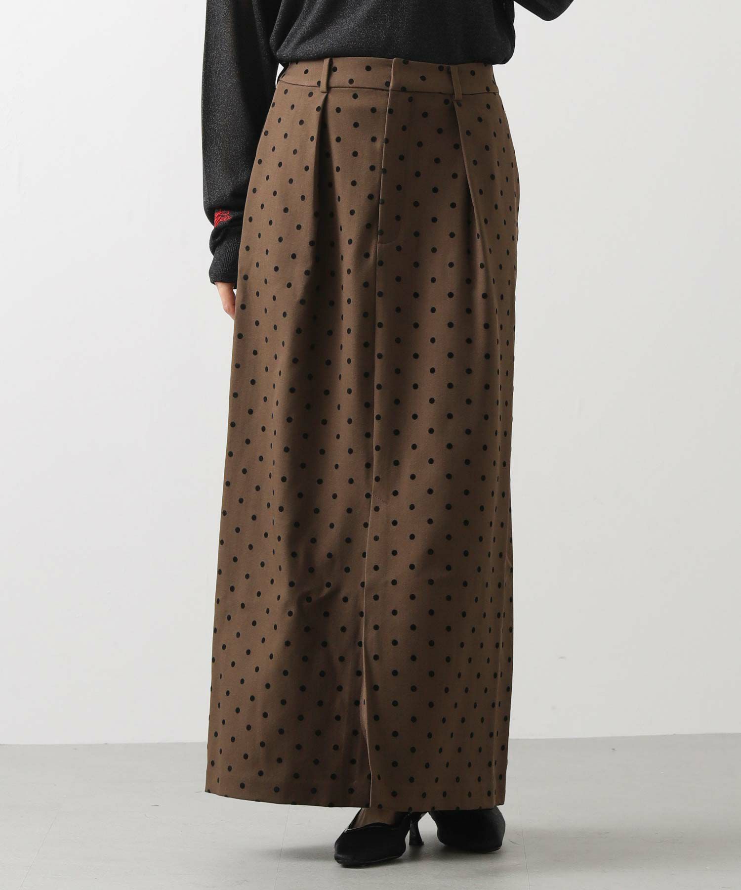 【CLOCHE/クロッシェ】から、ドットフロッキーのタイトスカートをセレクト。