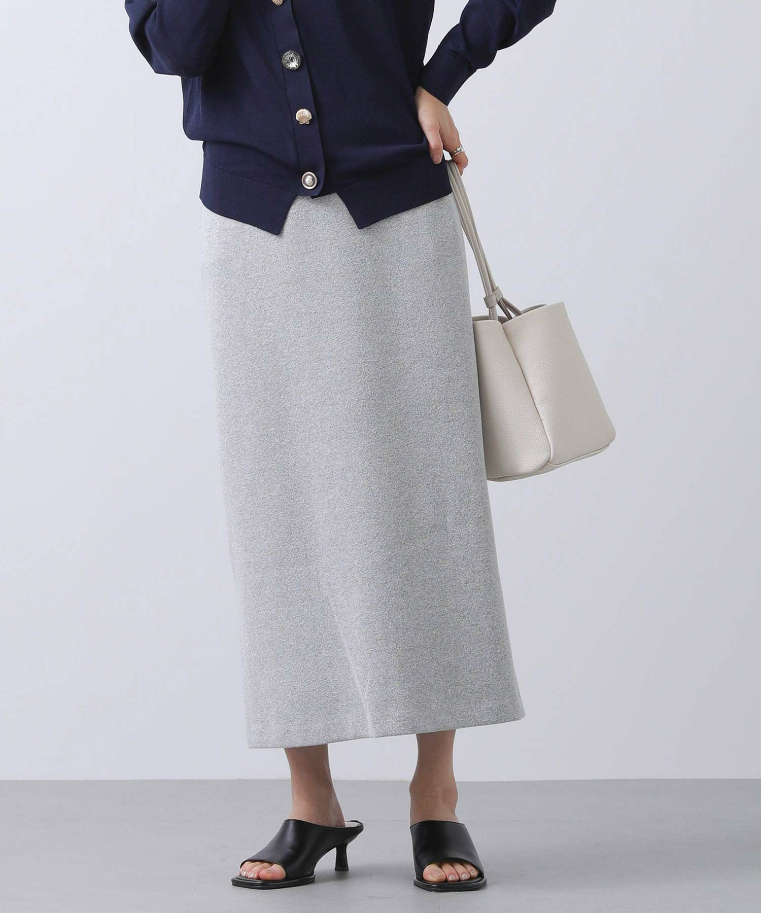 ブークレらしい凹凸感のある表面のタイトスカート。