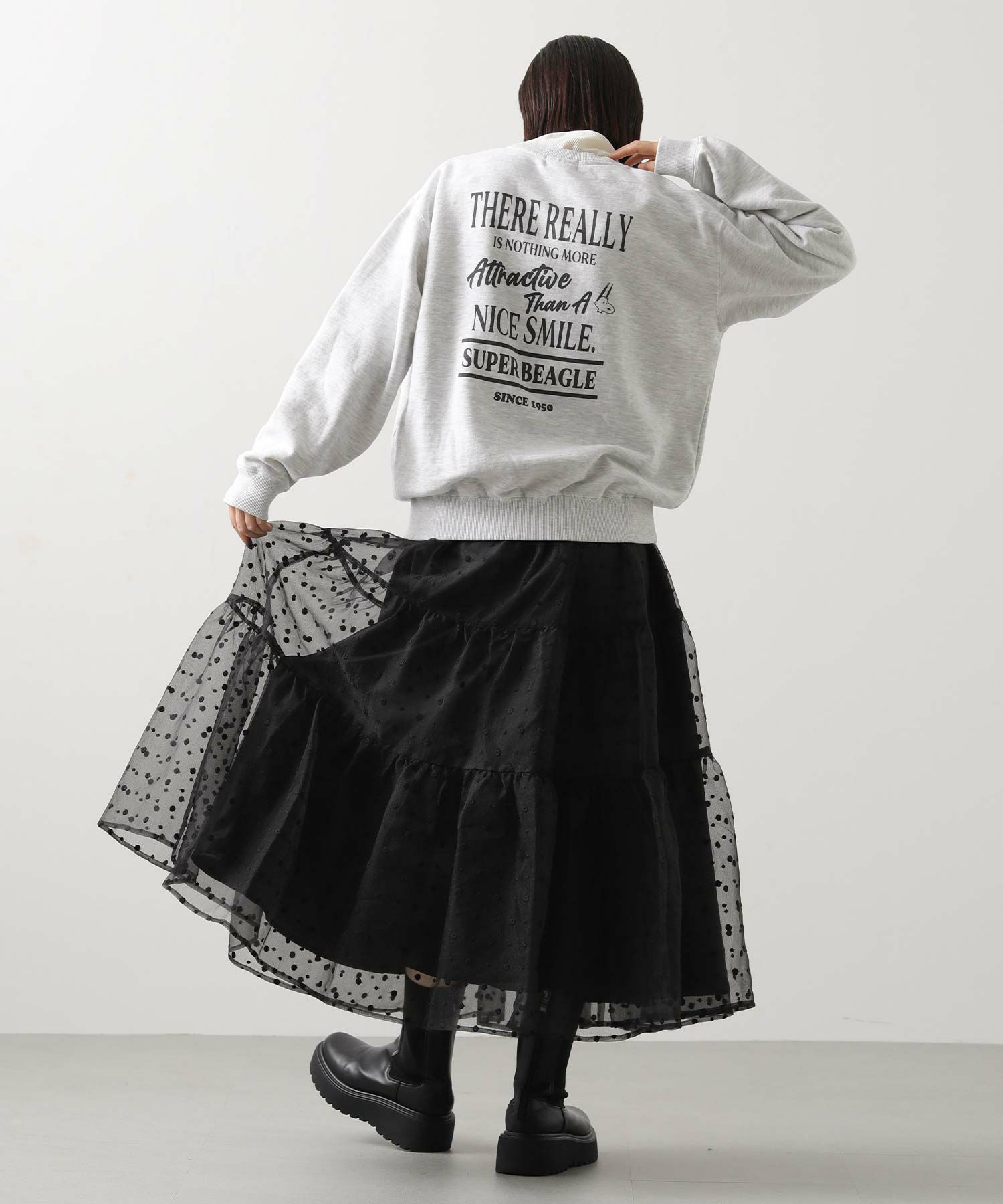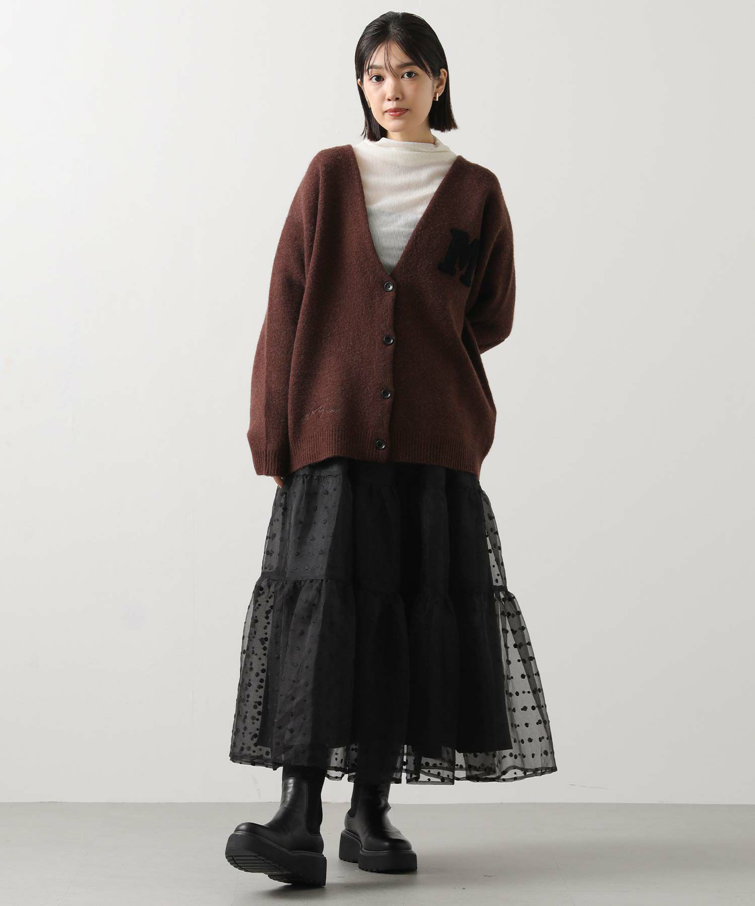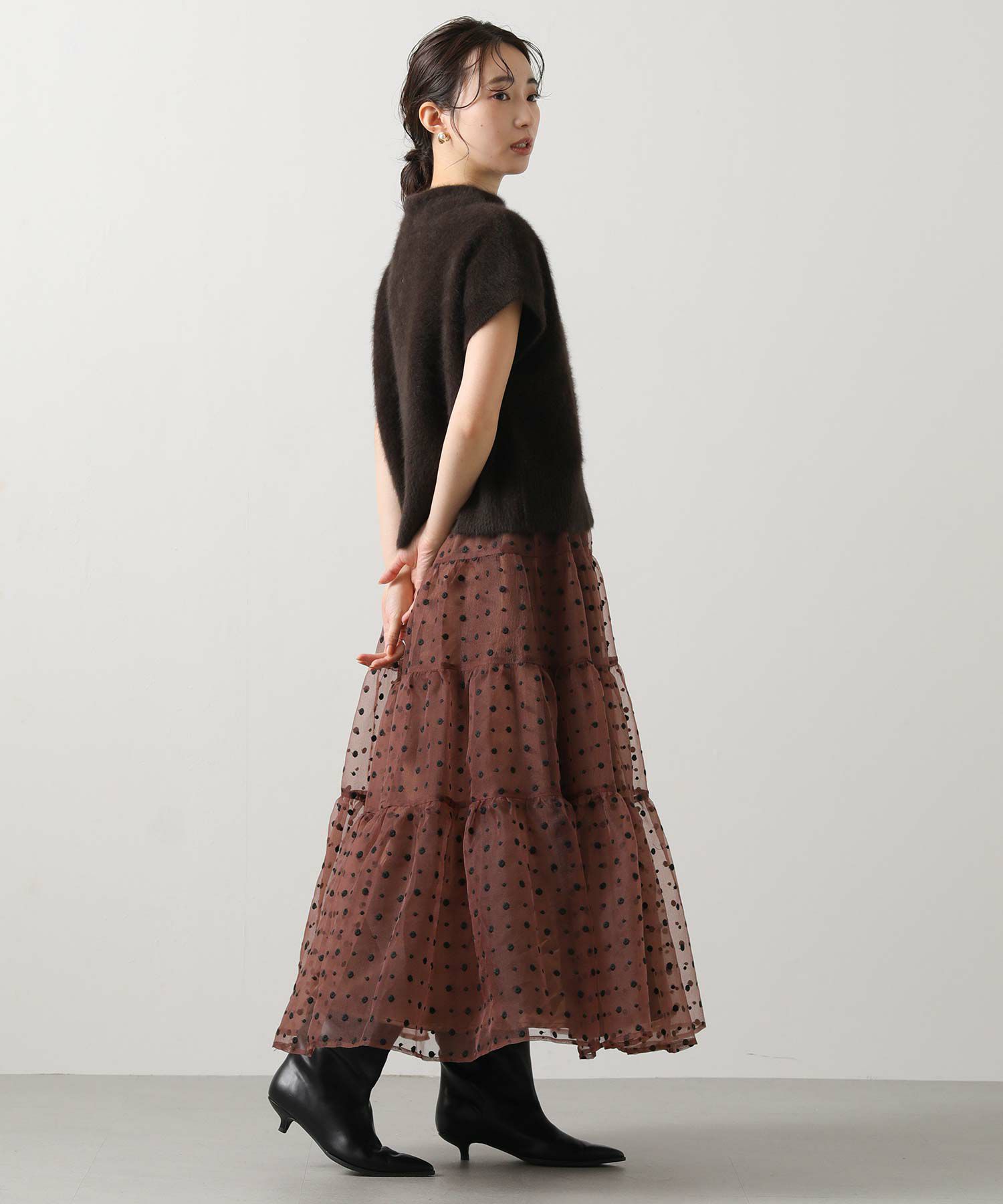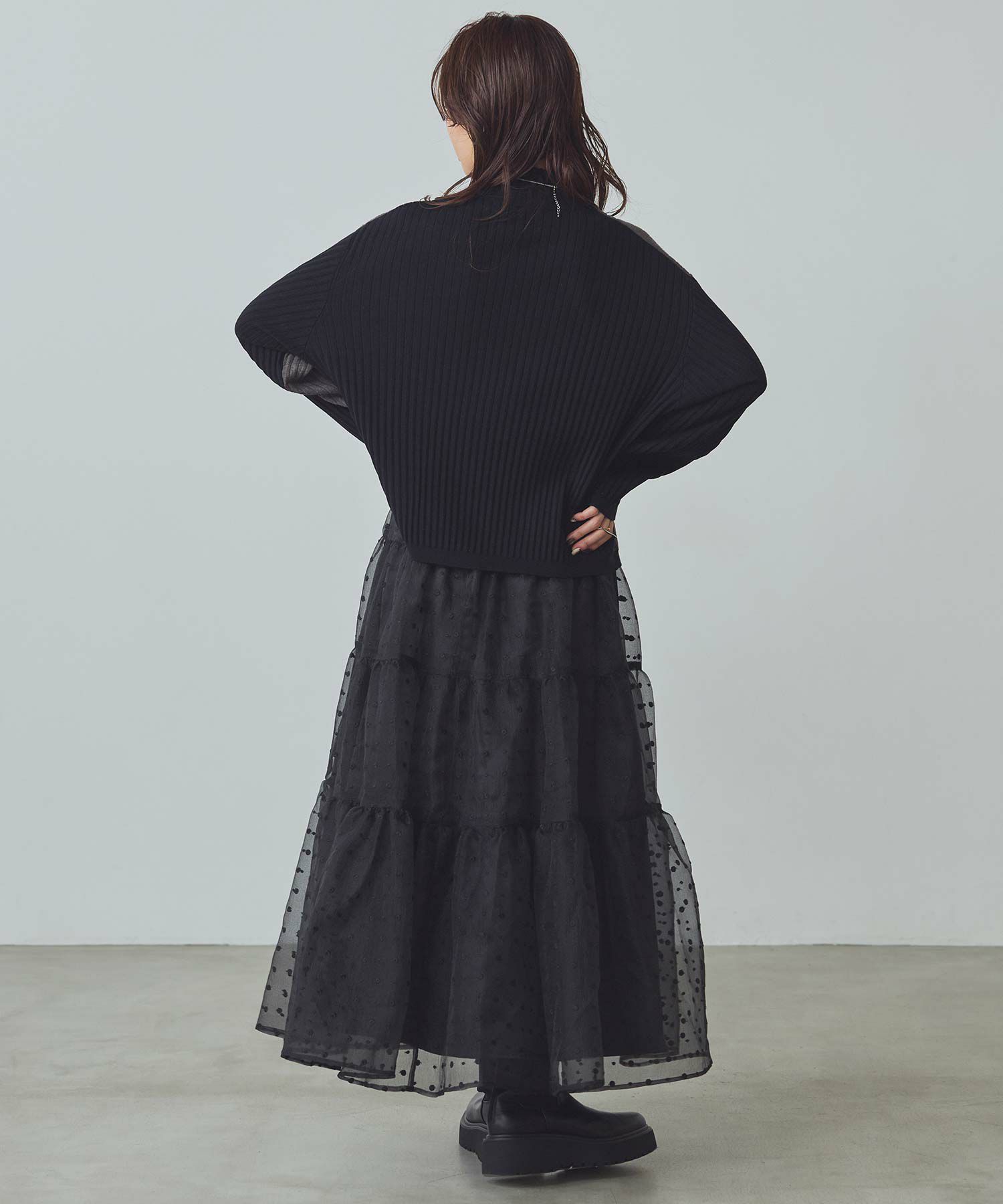 シアーの軽い質感のオーガンジーは、冬のふわふわニットと相性抜群!