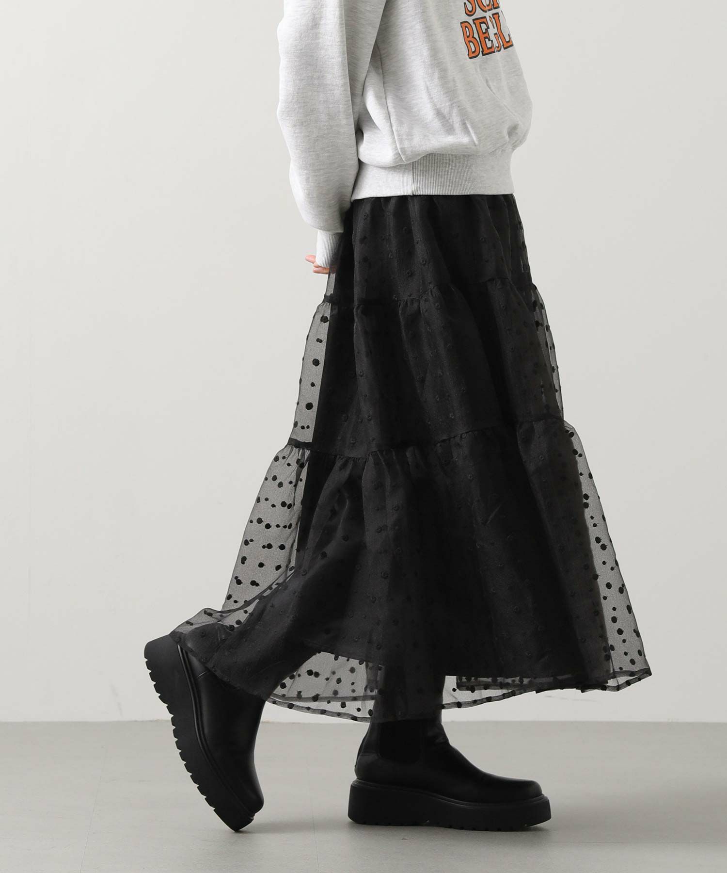 軽やかなオーガンジー素材がふんわりとしたシルエットを演出。
