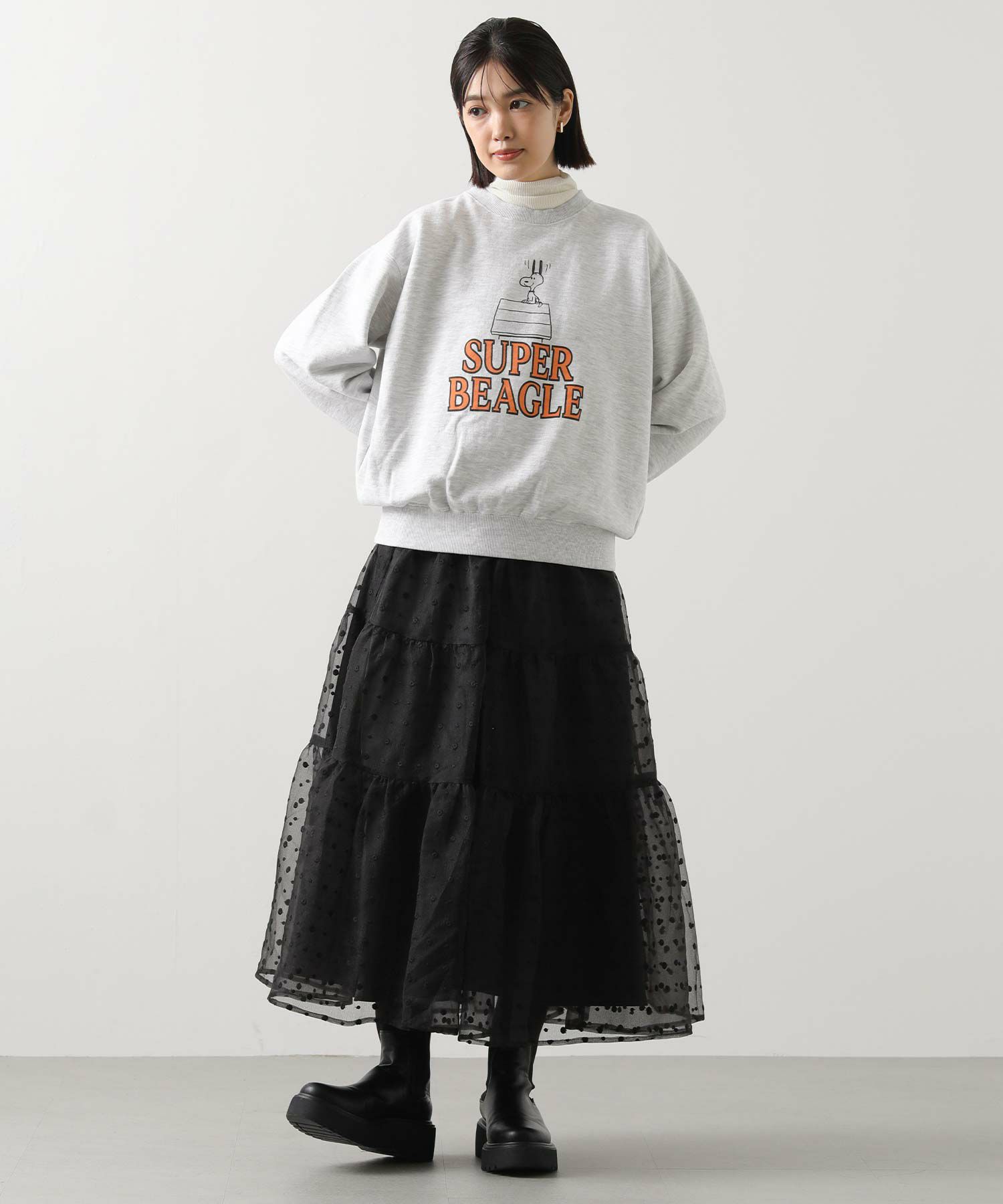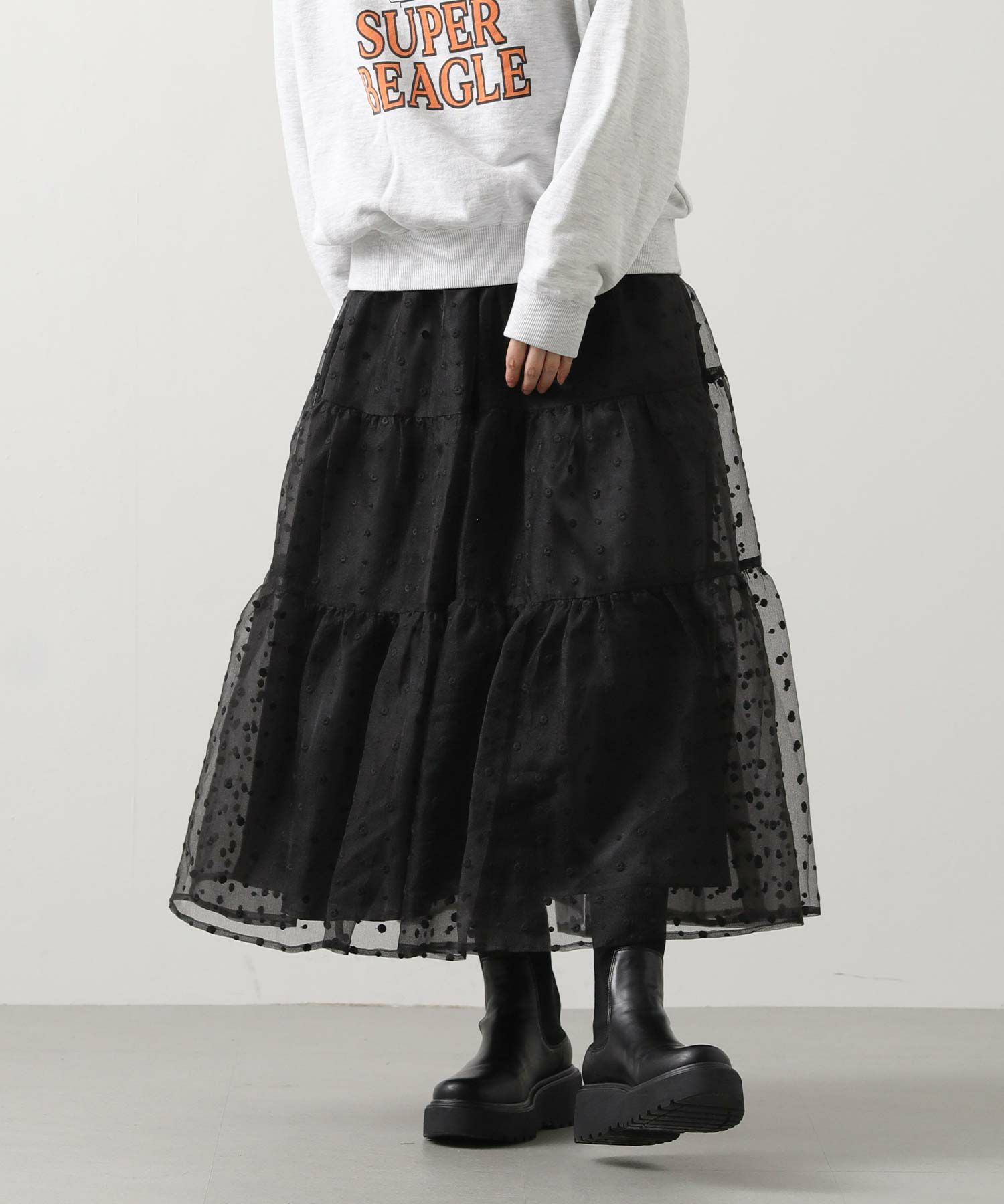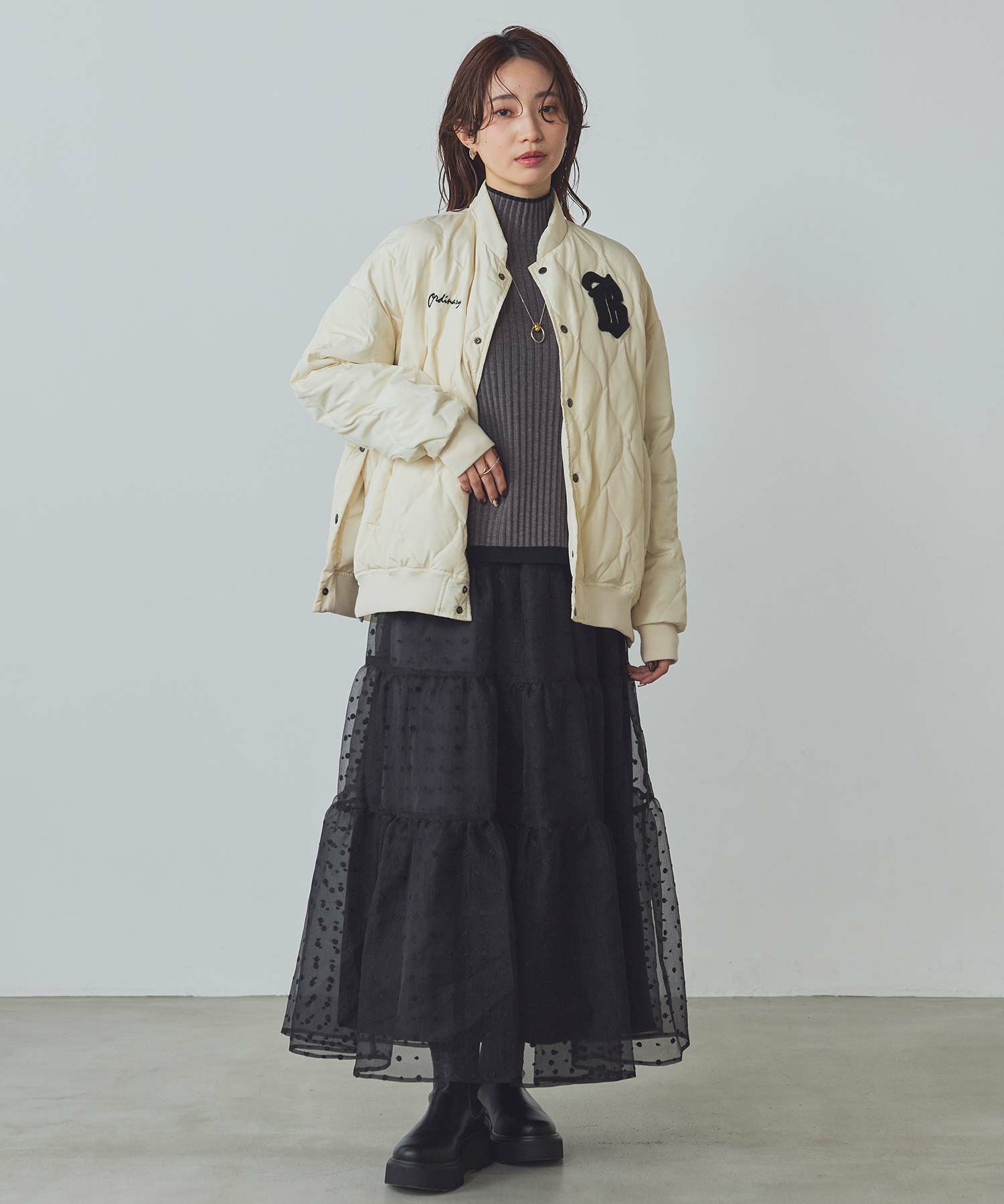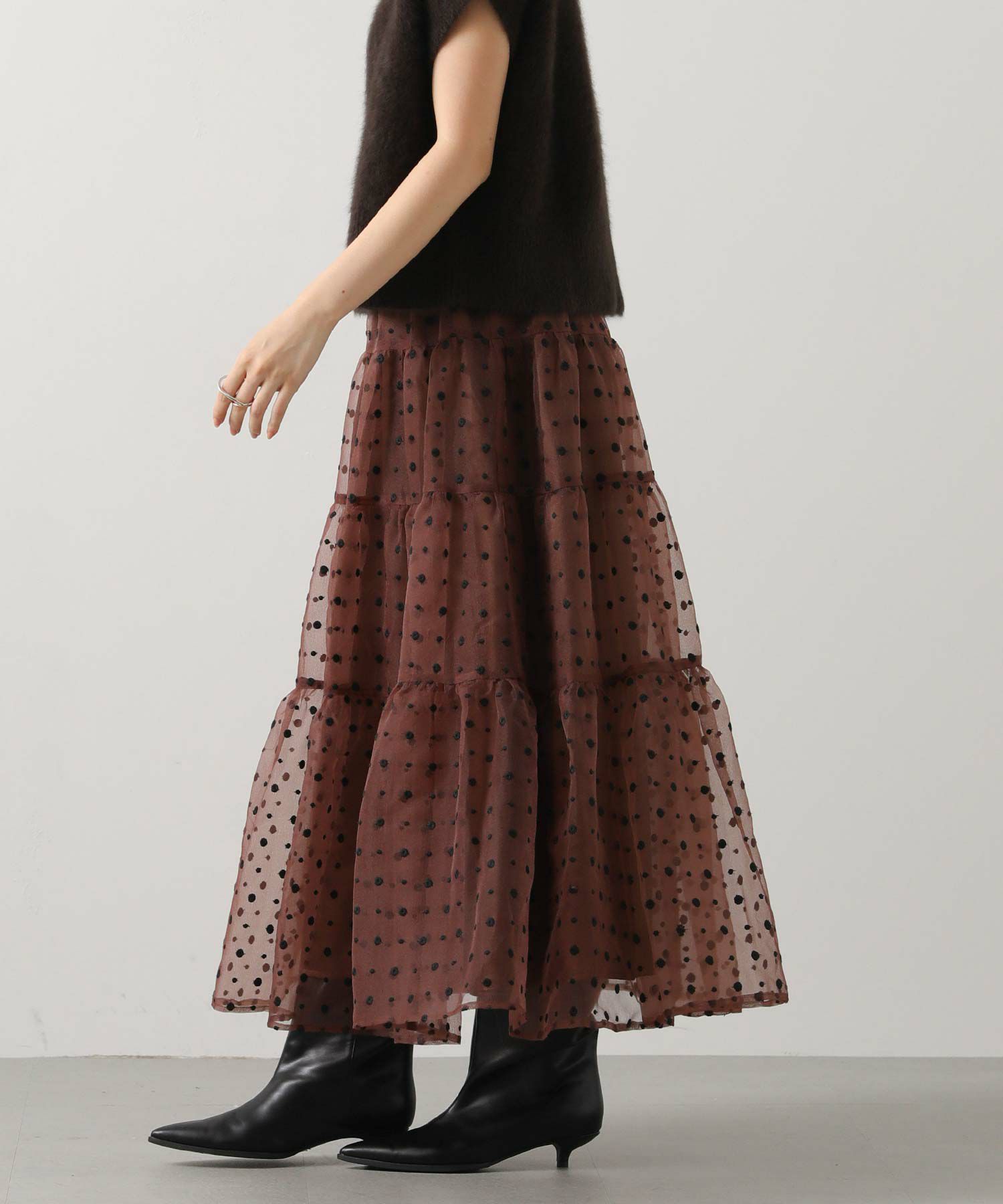 シアーの軽い質感のオーガンジーは、冬のふわふわニットと相性抜群!