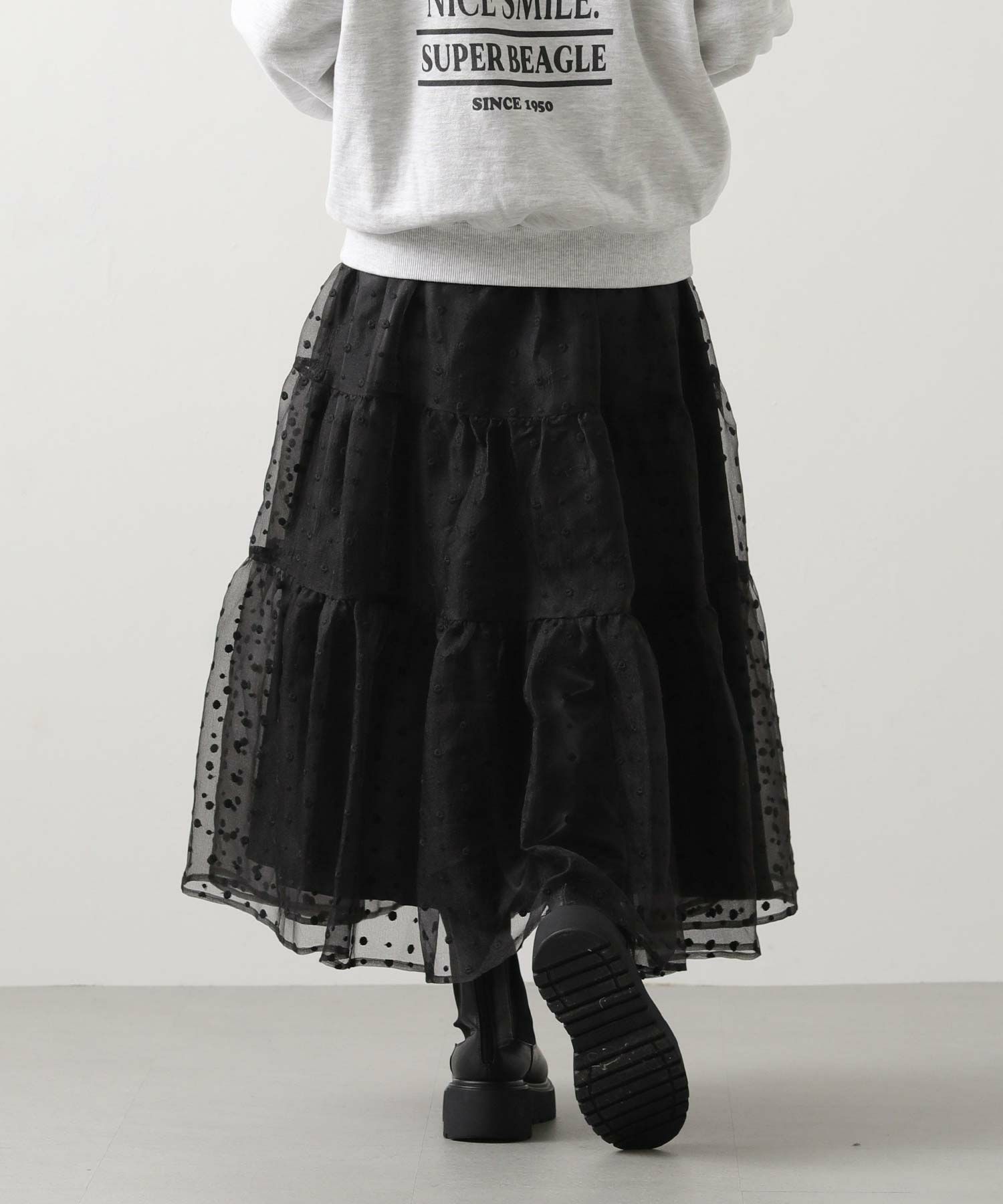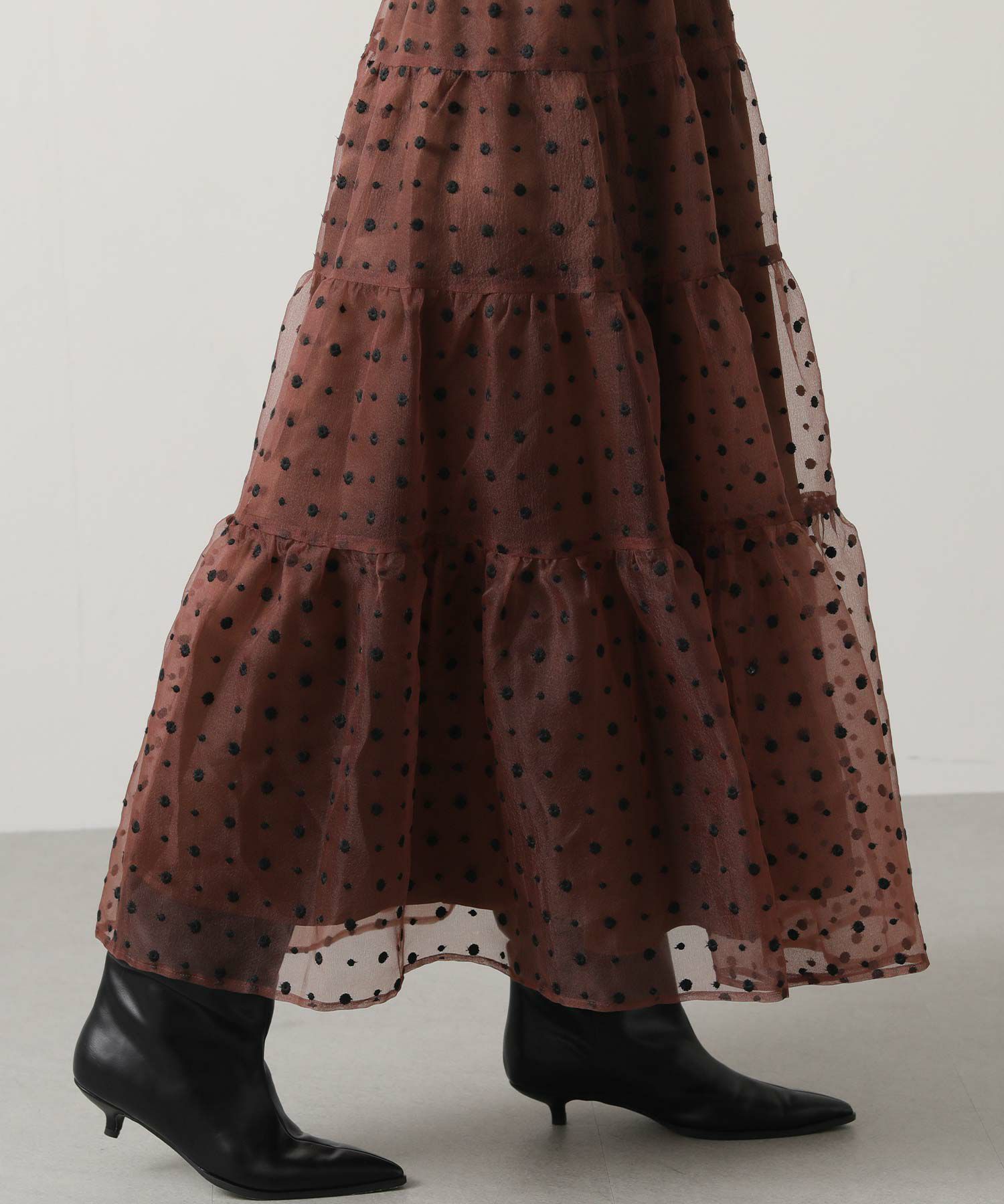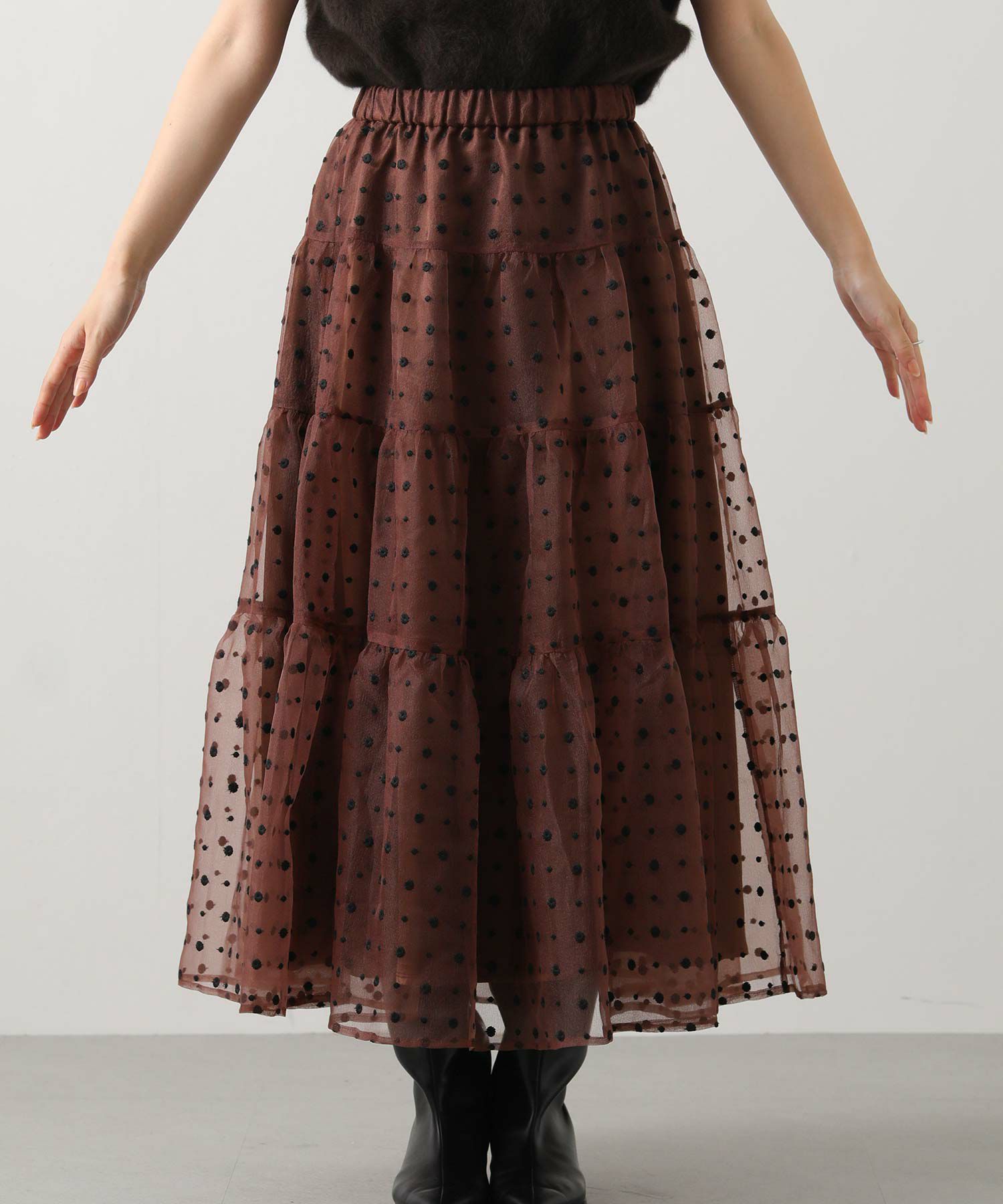 軽やかなオーガンジー素材がふんわりとしたシルエットを演出。