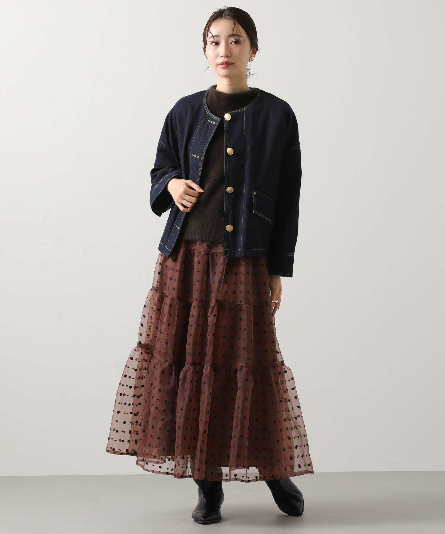 ※着用画像は撮影状況、光の当たり具合で色みが違って見える場合がございます。実際の色みについては、画像一覧の最後に掲載している詳細画像をご参照ください。