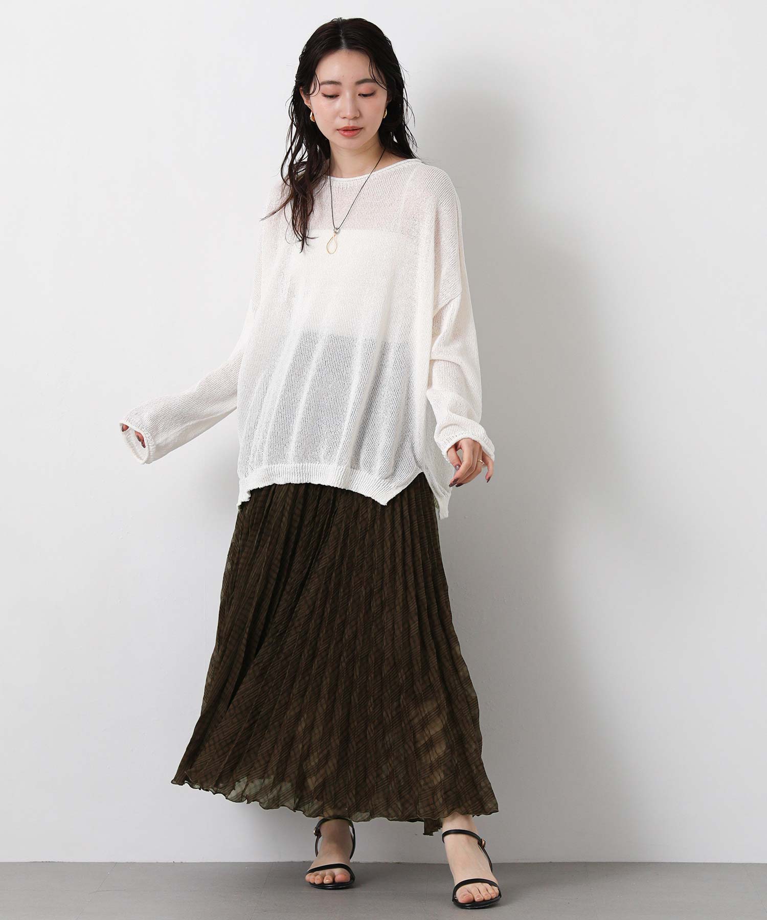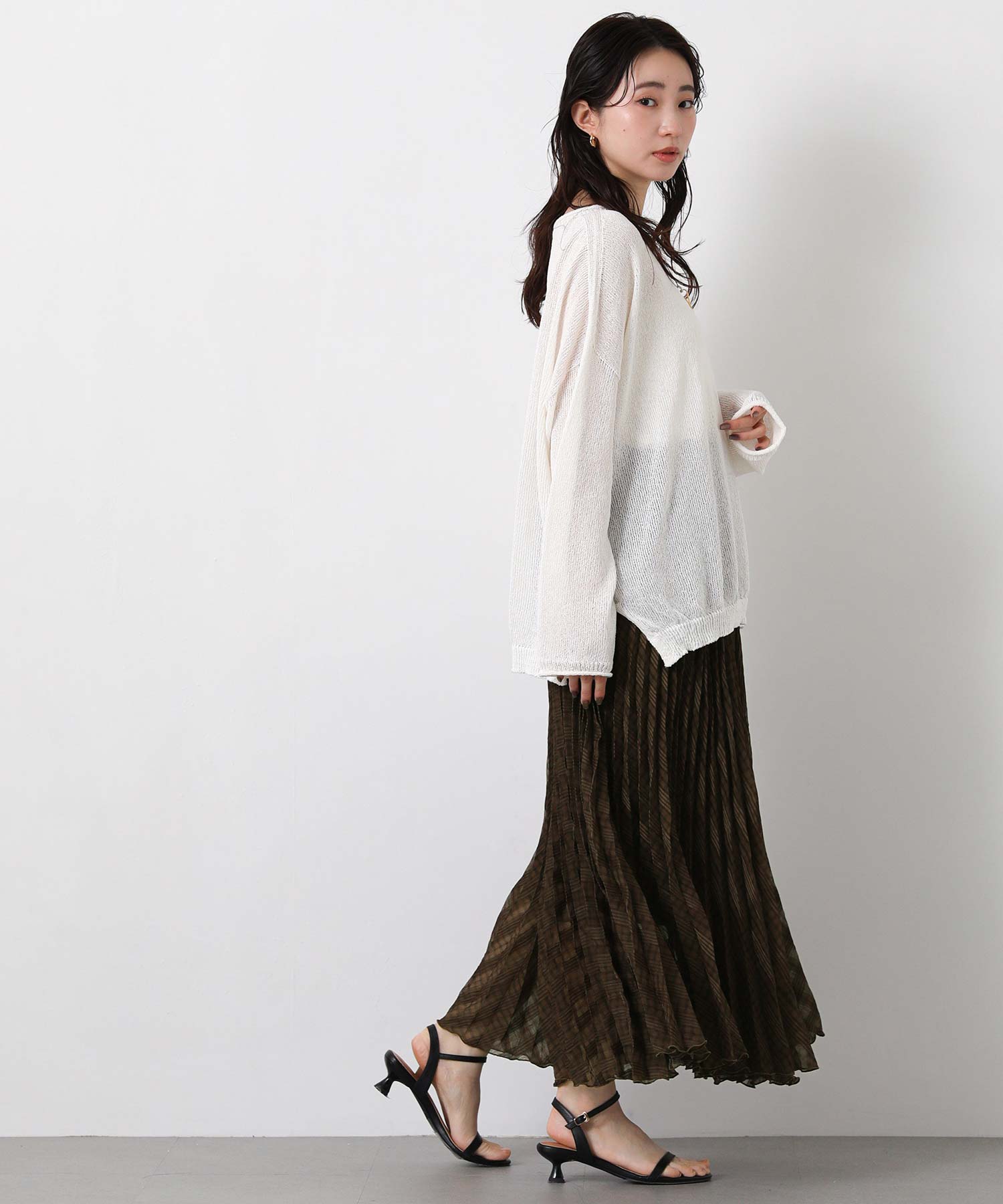 程よいシアー感が足元に軽やかな抜け感を与え、夏に向けて気分のあがる1枚に仕上げました。