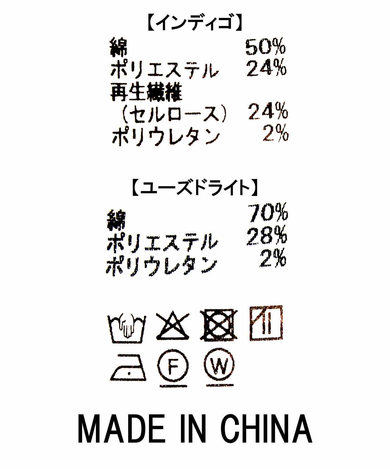【インディゴ】綿50%、ポリエステル24%、再生繊維(セルロース)24%、ポリウレタン2%