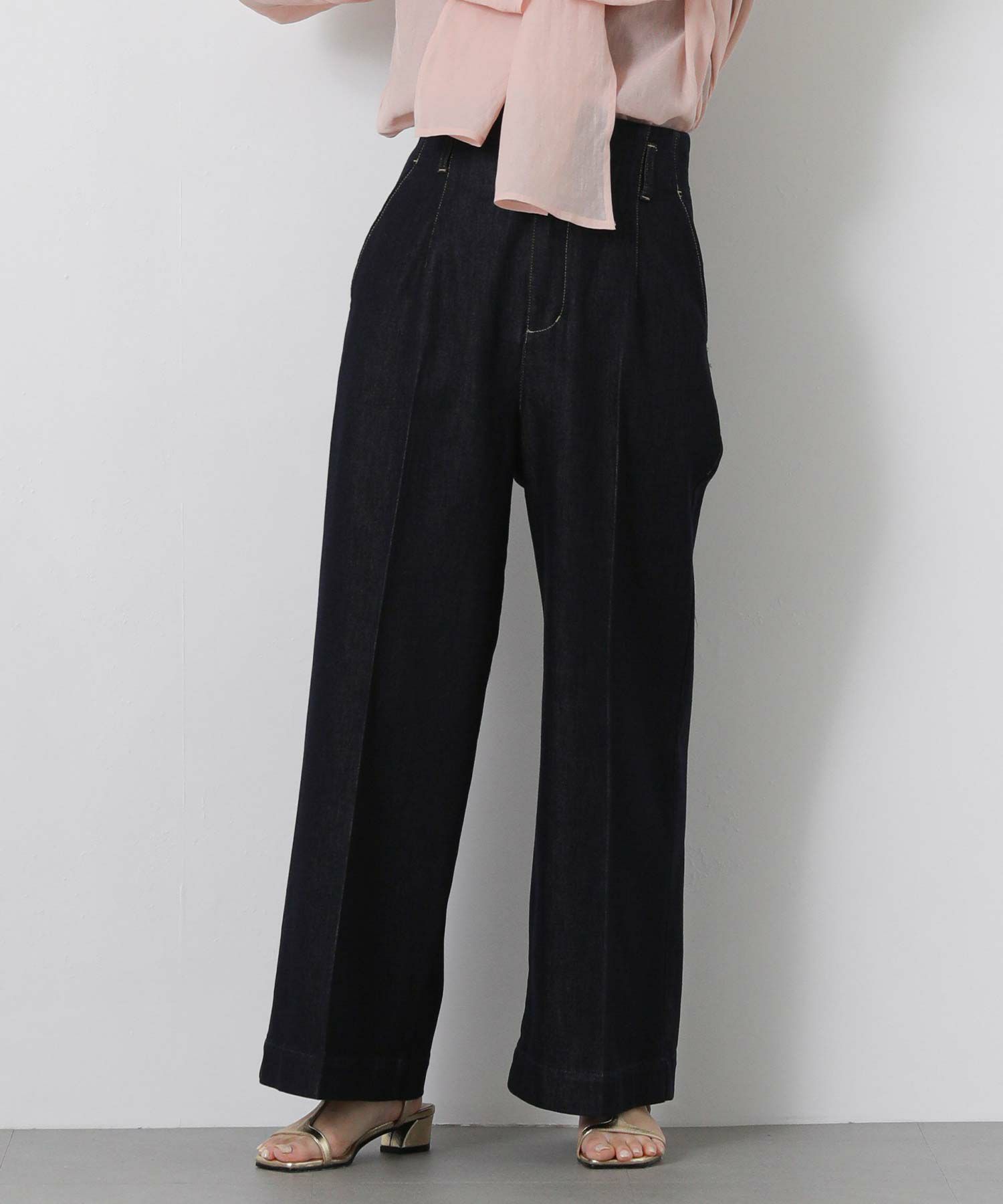 インディゴ:色落ちしにくい染色方法でお作りしており、キレイめな見え方を保って着用いただけます。配色のステッチでカジュアル感をプラスしました。