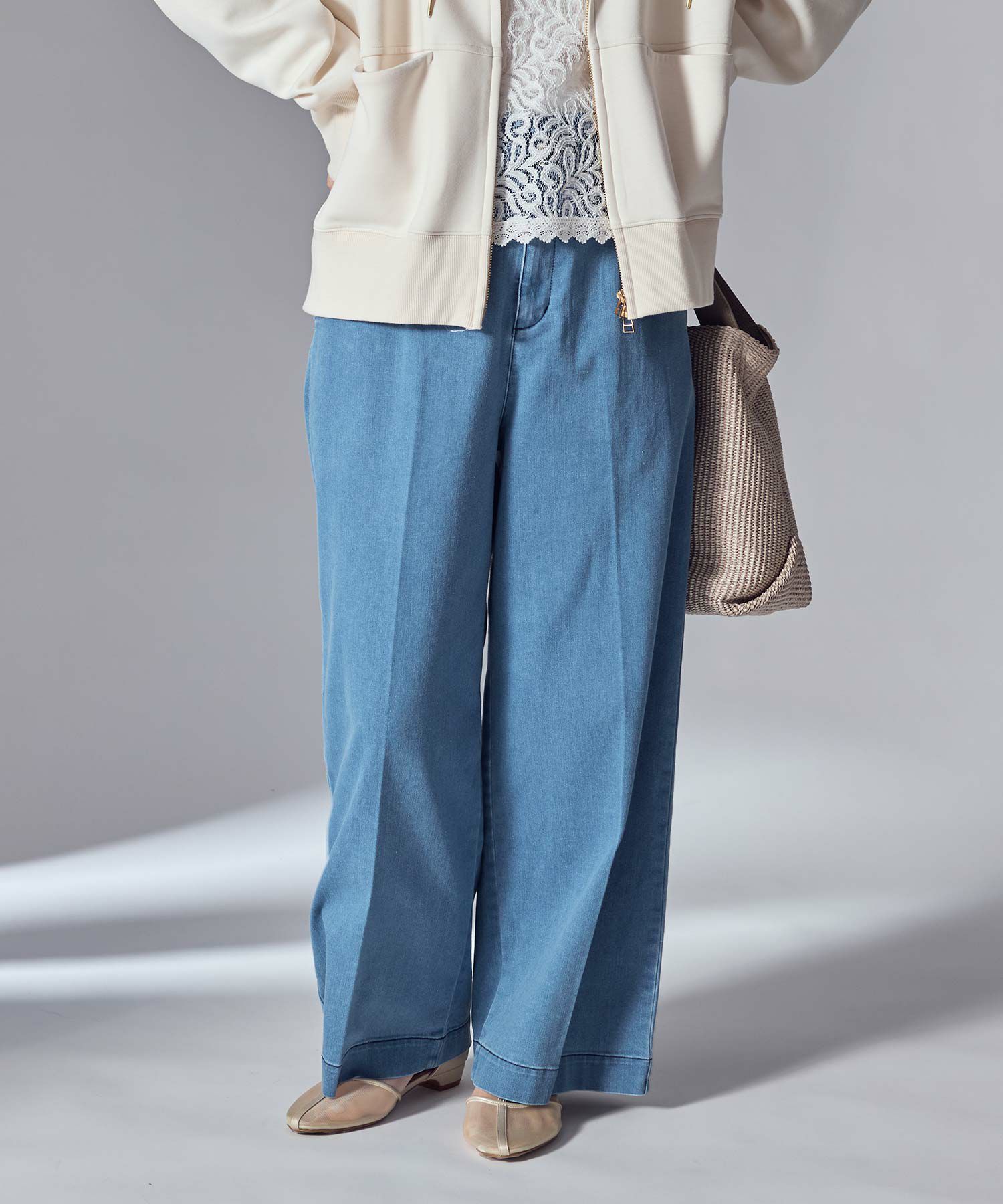 大人のカジュアルスタイルを意識した、ワイドすぎないストレートシルエットにセンタープレスでキレイ目な仕上がりにしています。