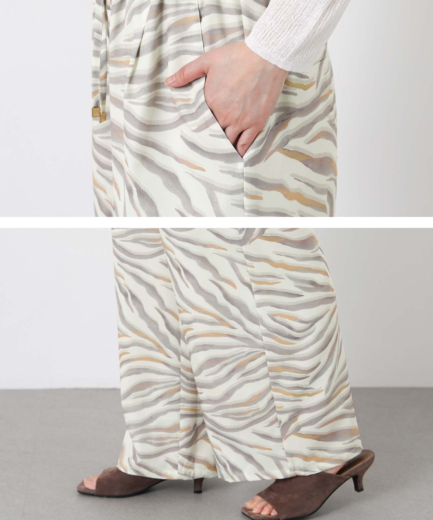 優しいタッチのゼブラ柄が新鮮なワイドパンツ。