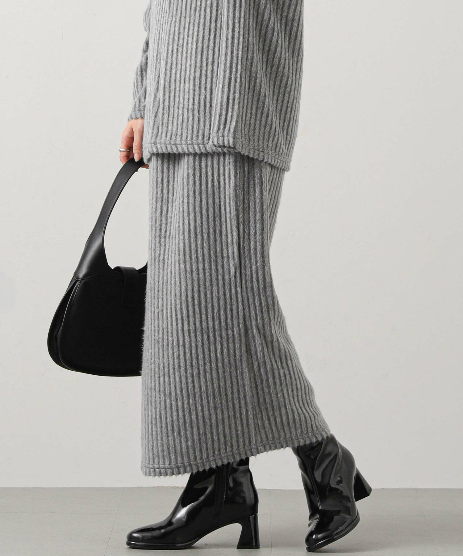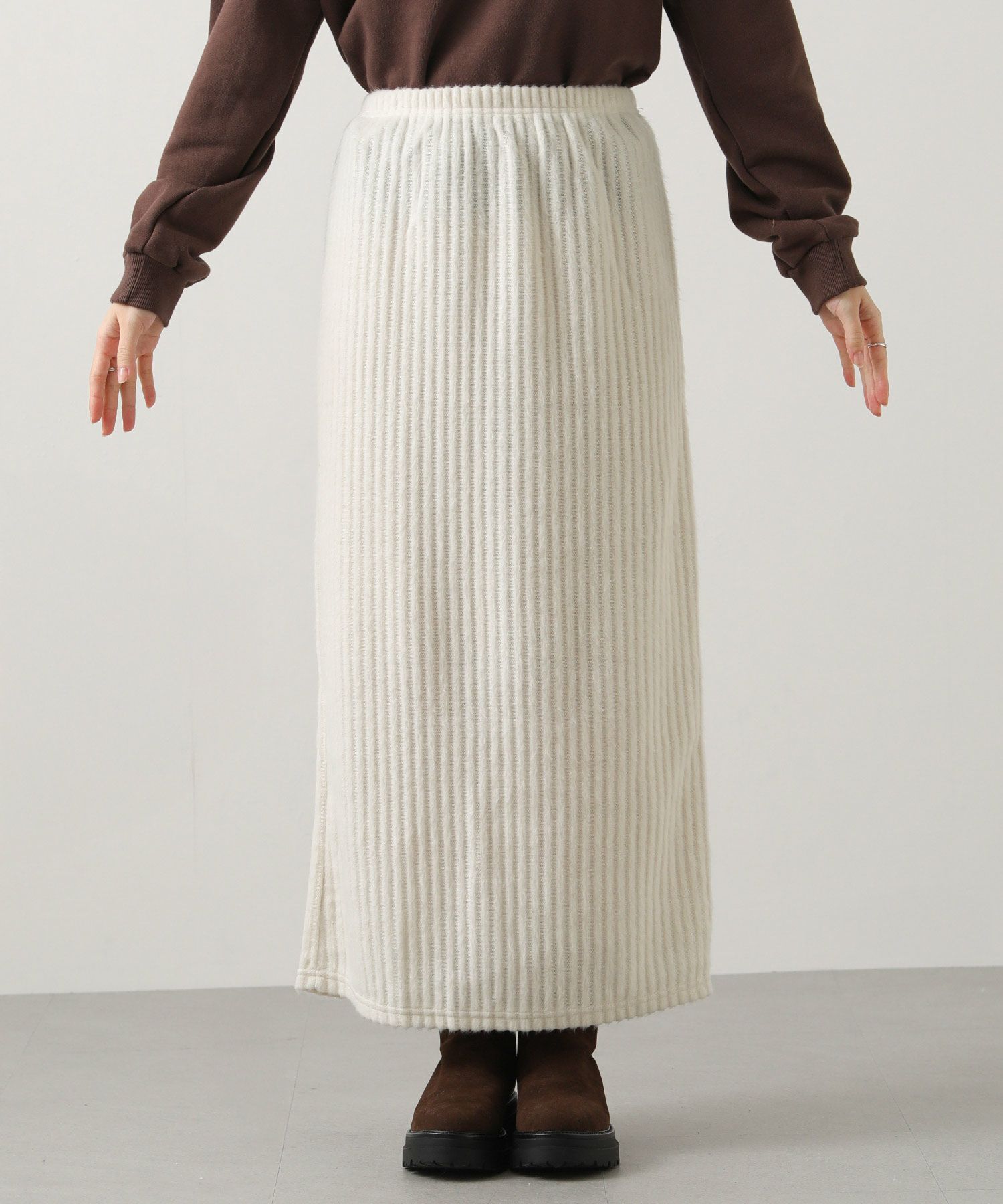 縦畝のあるリブ素材が、すっきりとした印象を演出するロングスカート。