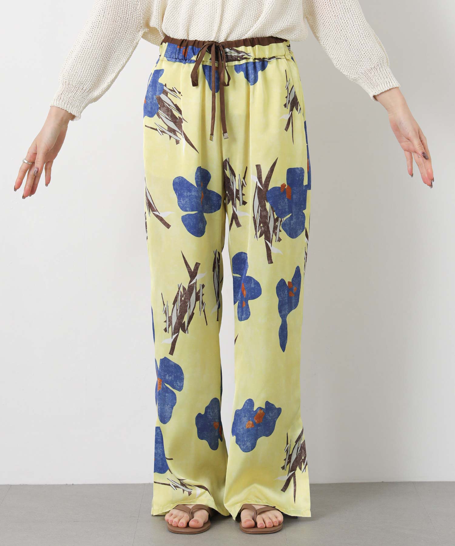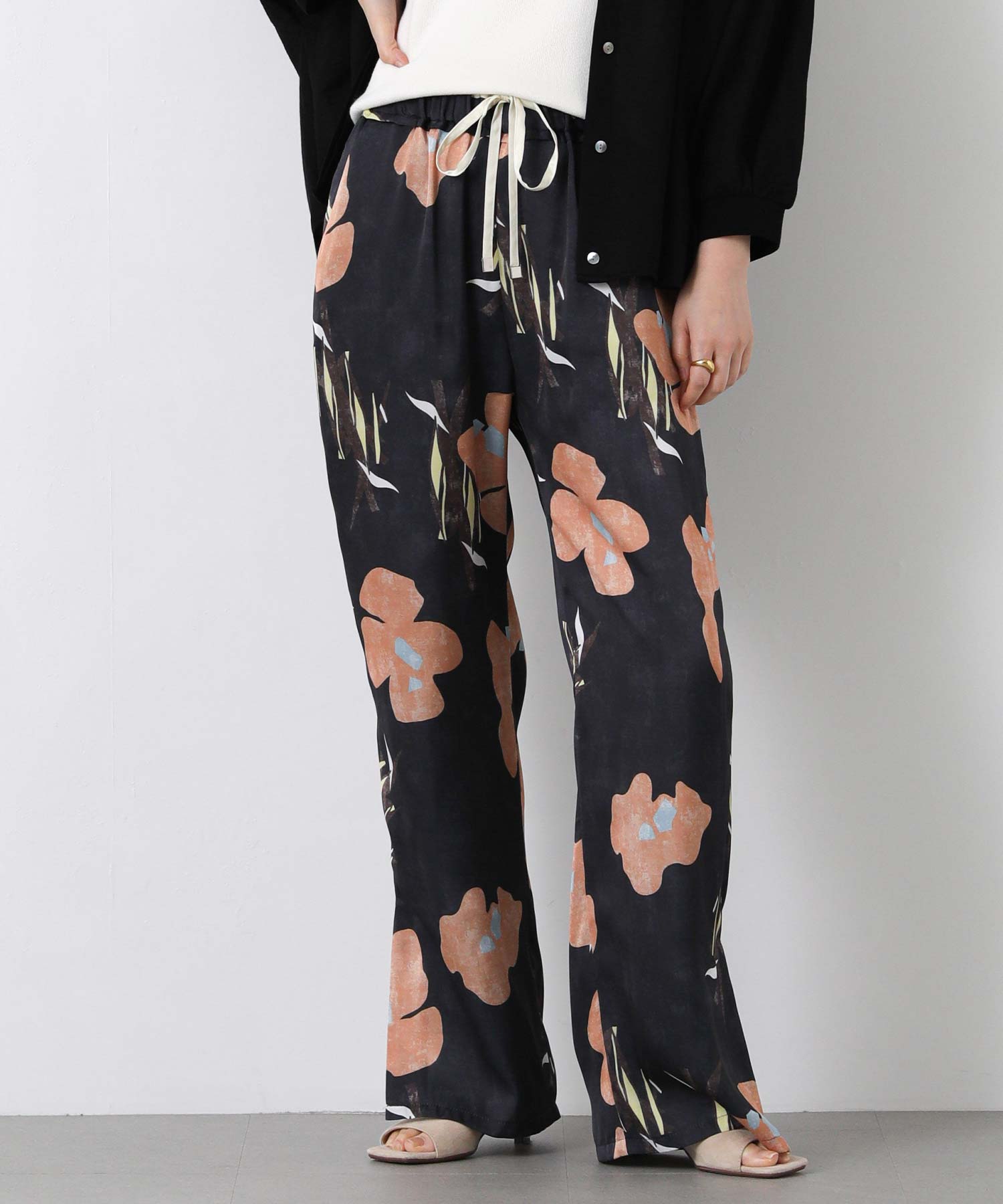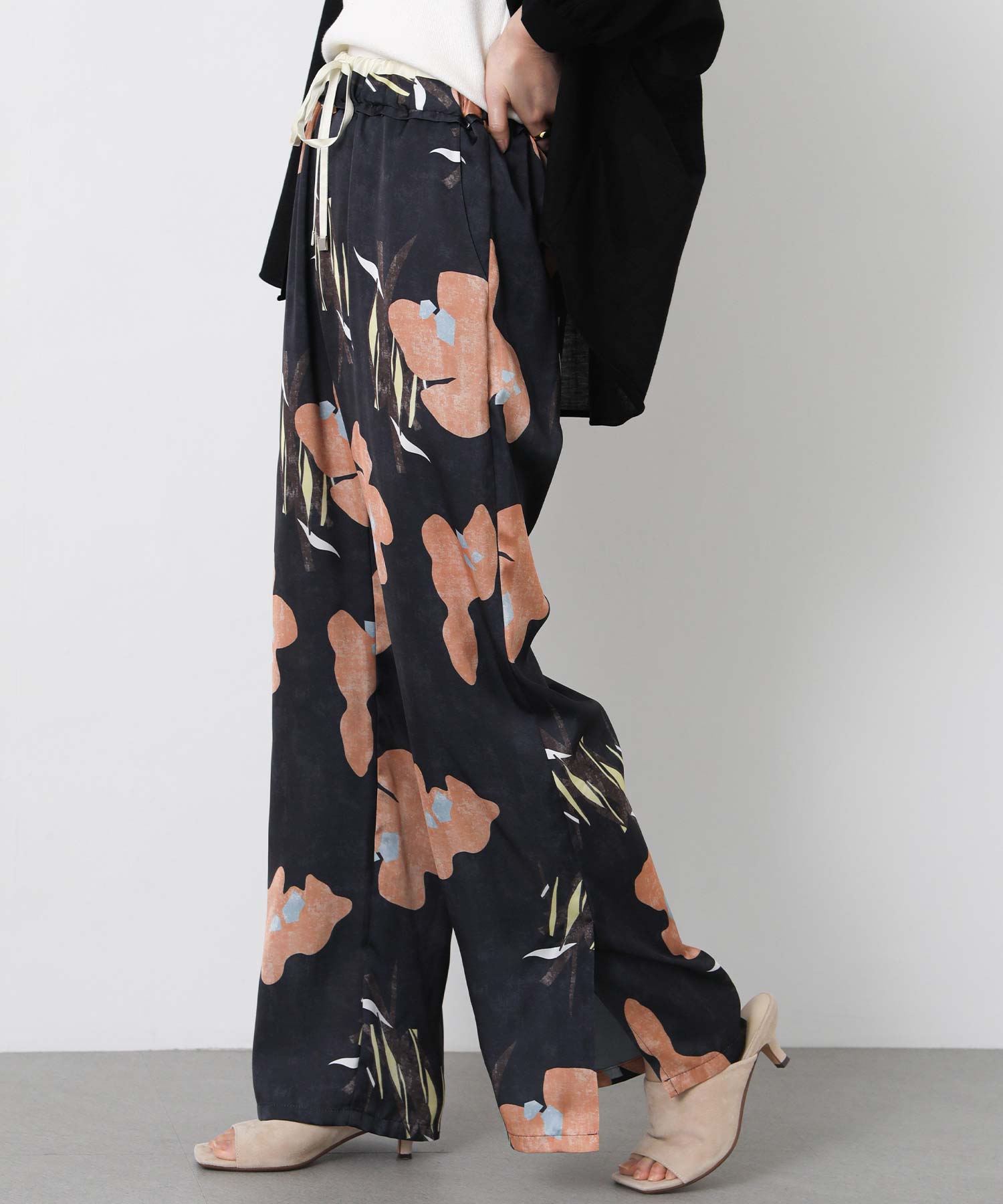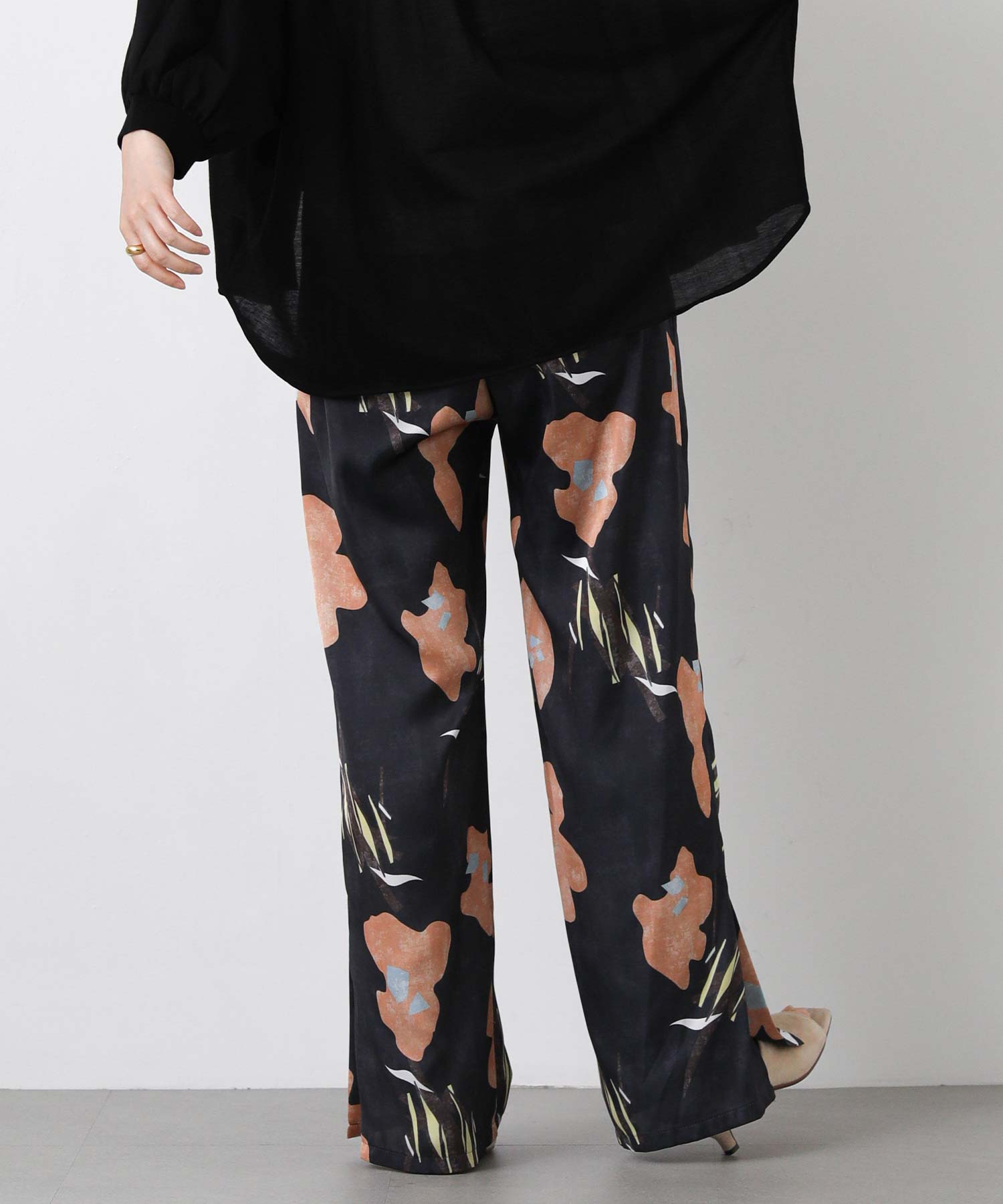 【LalliaMù(ラリア・ムー)】から、ラリア・ムーの企画チームが一から制作した、オリジナルサテンのプリント生地を使用したイージーパンツをセレクト。