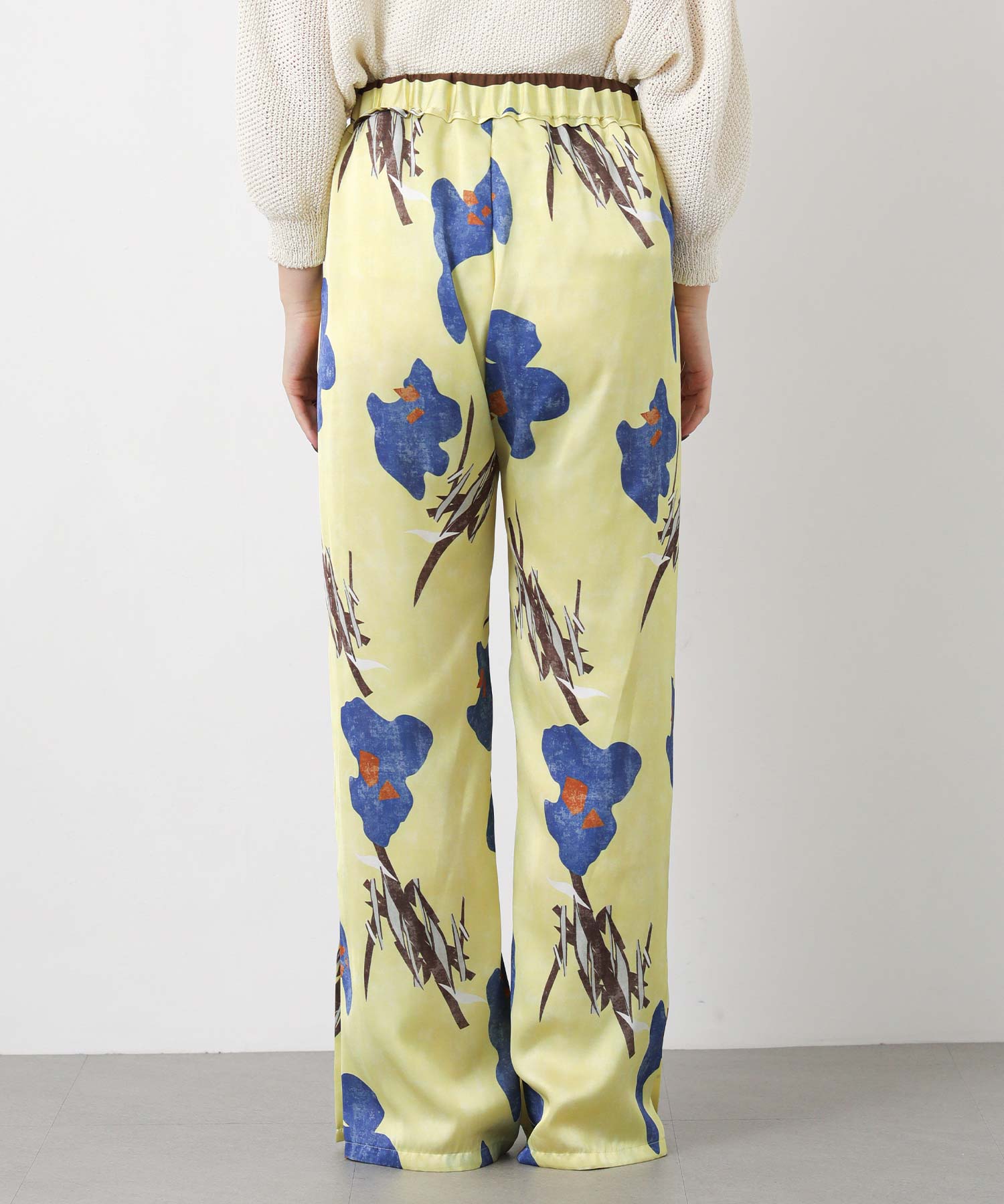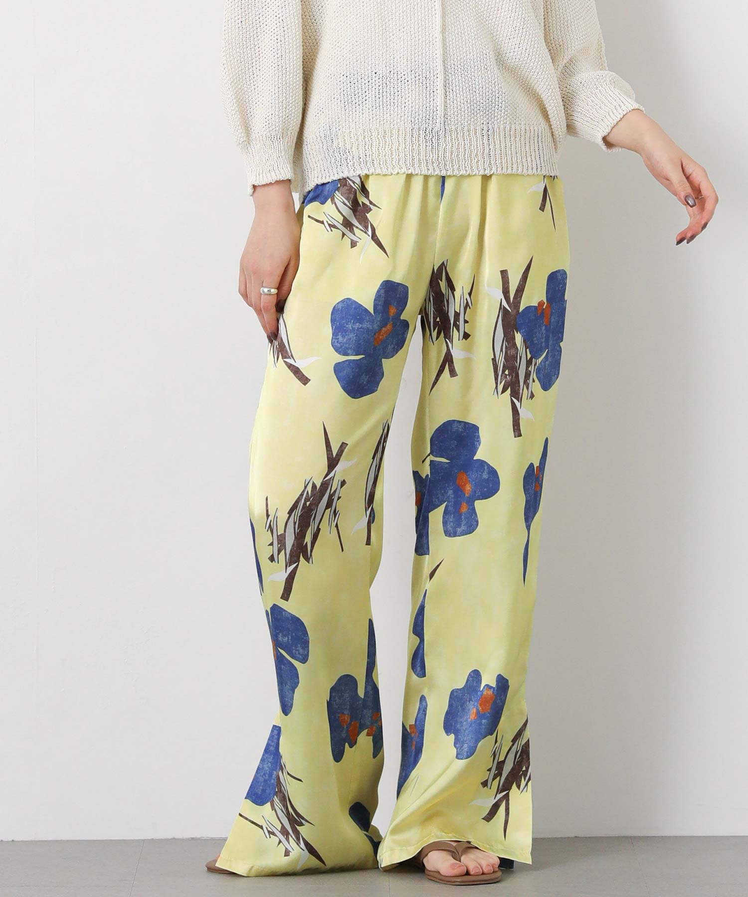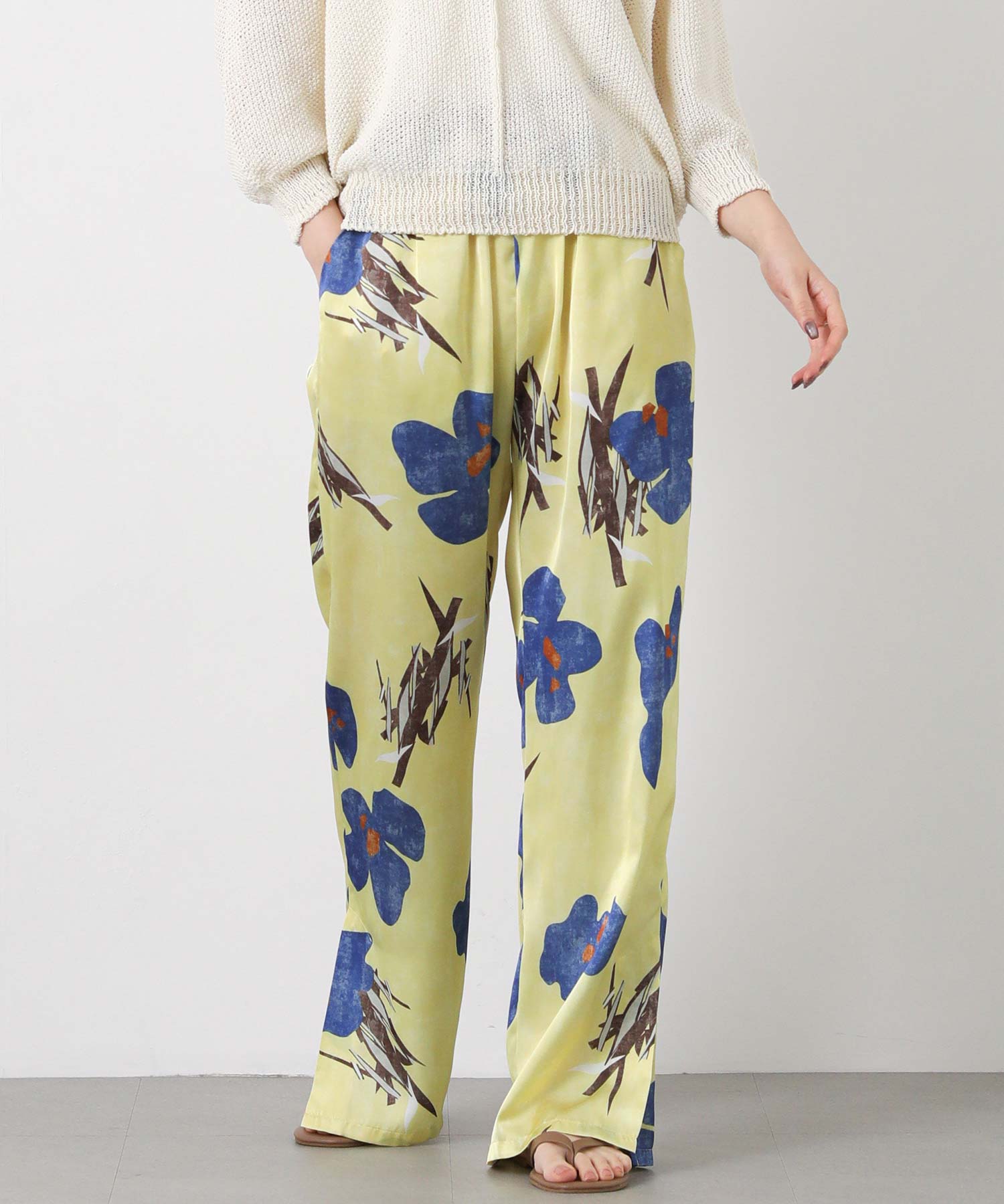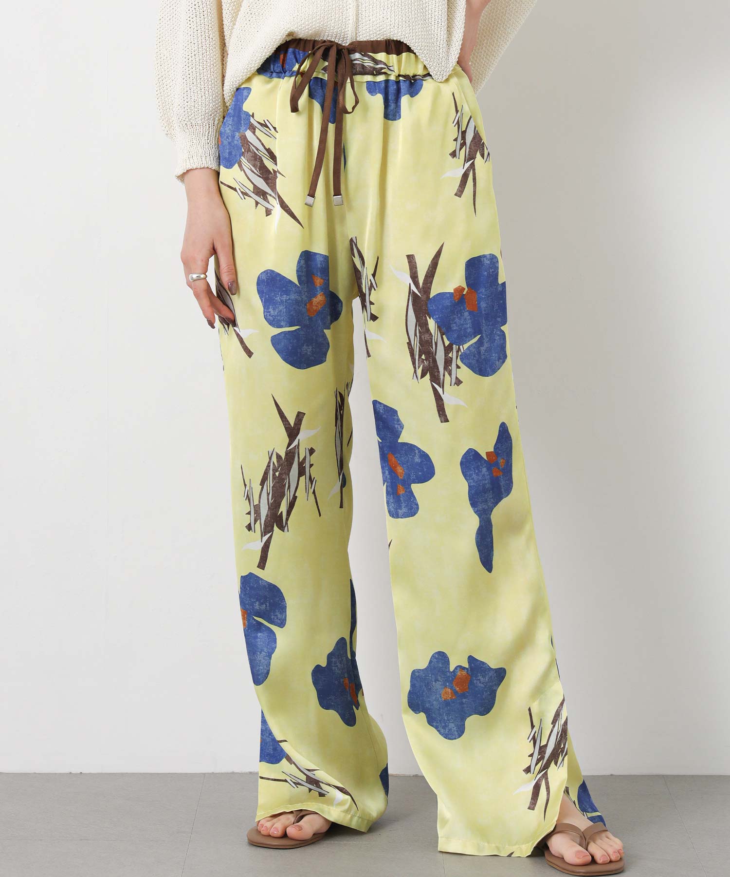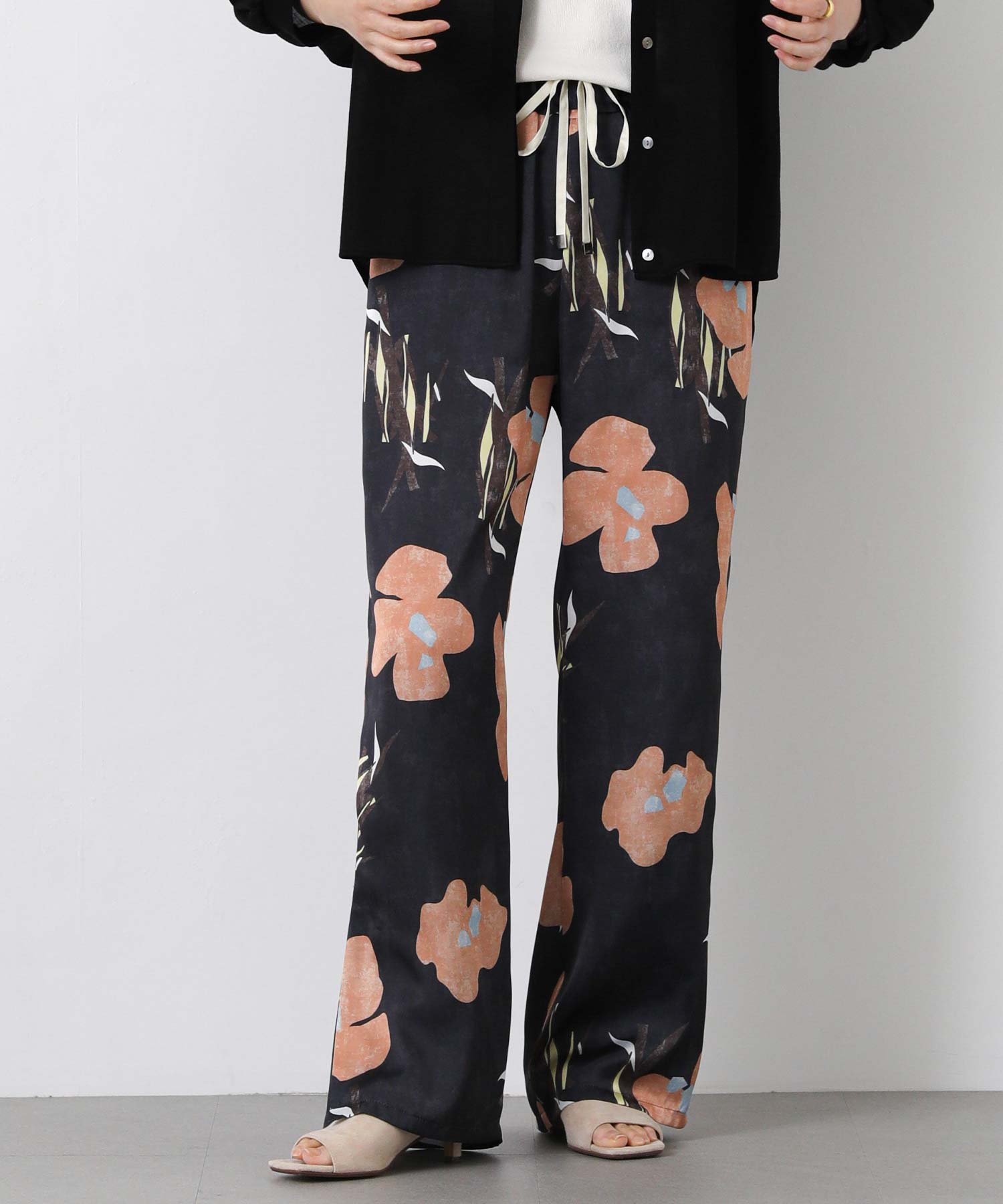 【LalliaMù(ラリア・ムー)】から、ラリア・ムーの企画チームが一から制作した、オリジナルサテンのプリント生地を使用したイージーパンツをセレクト。