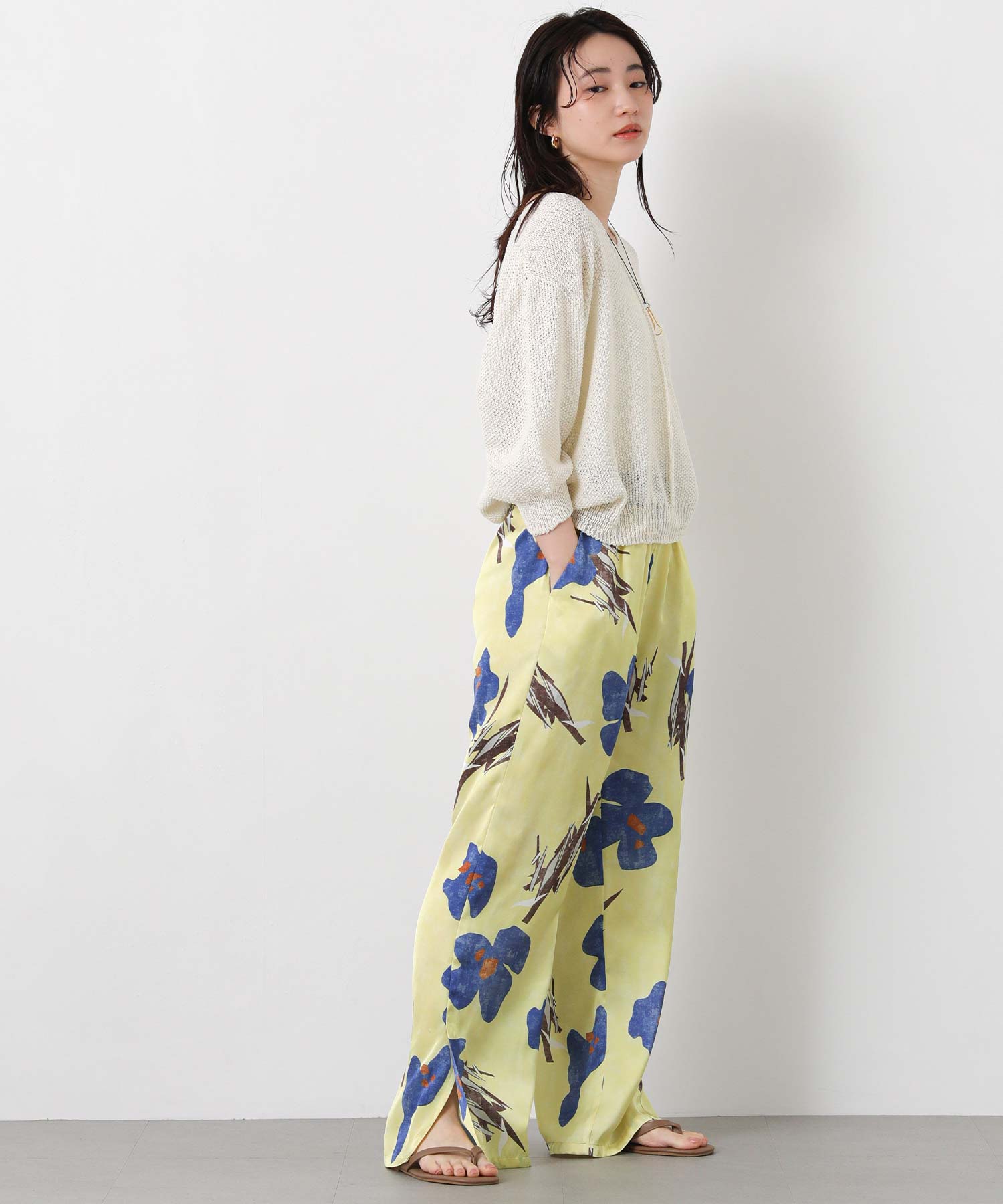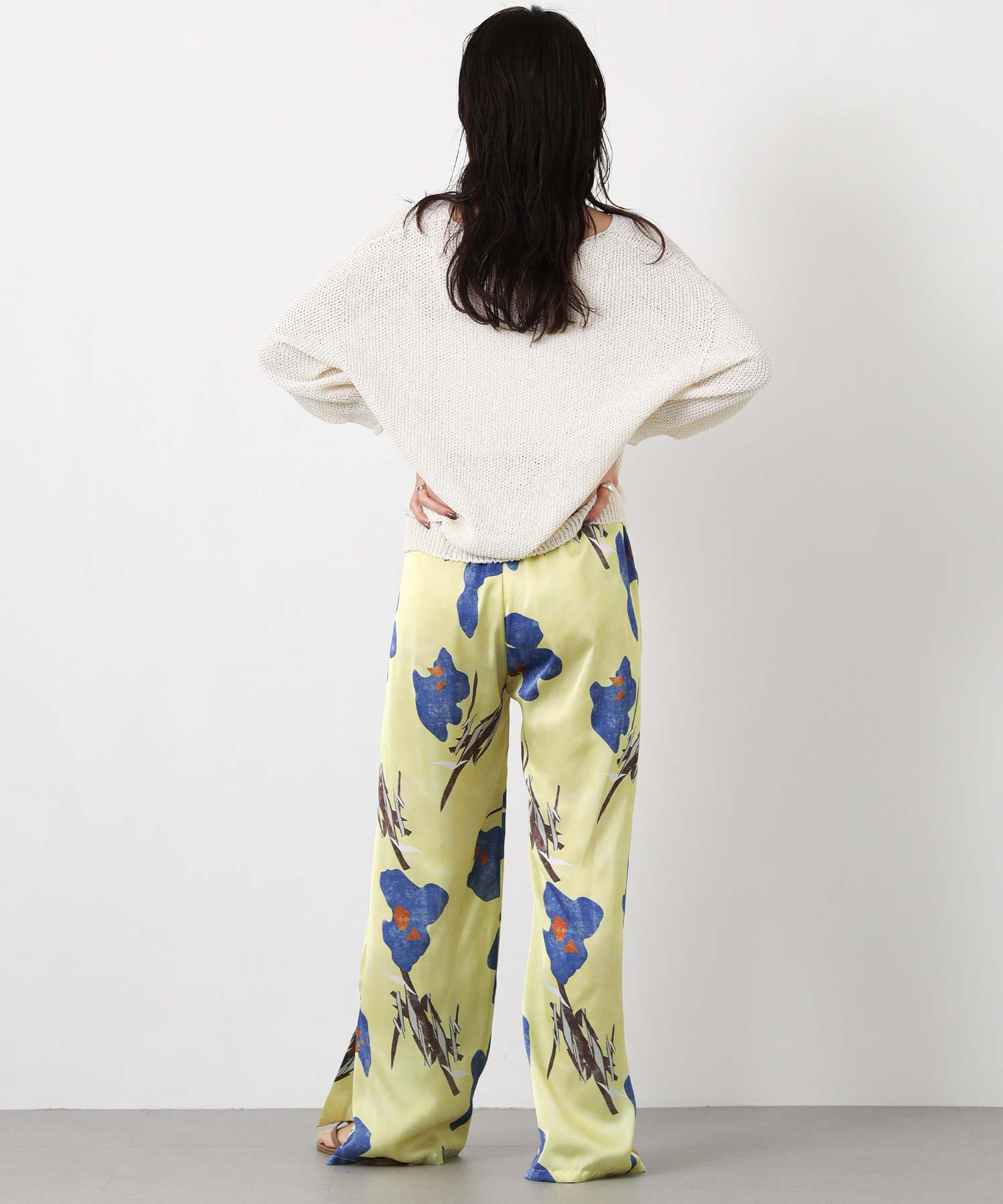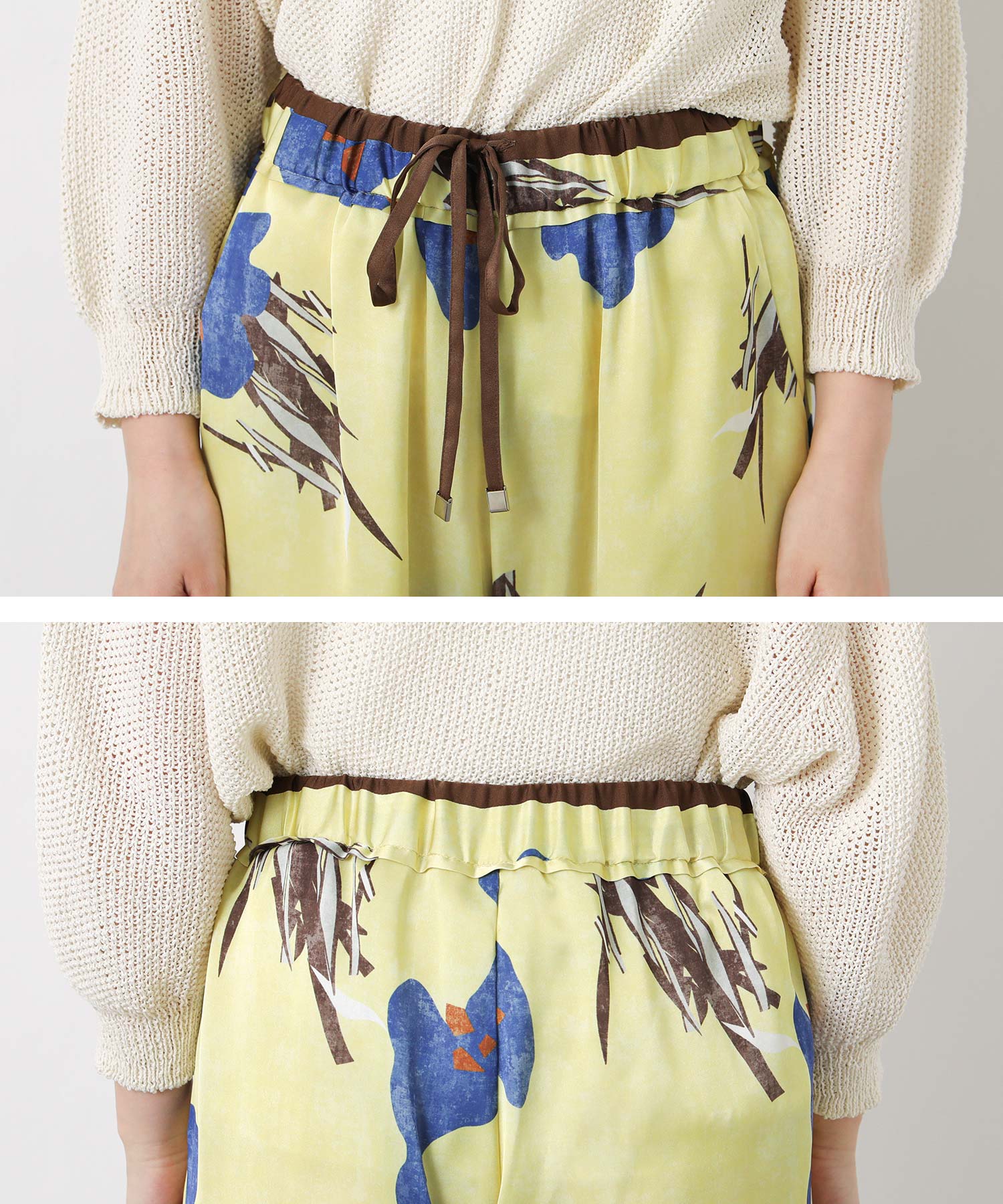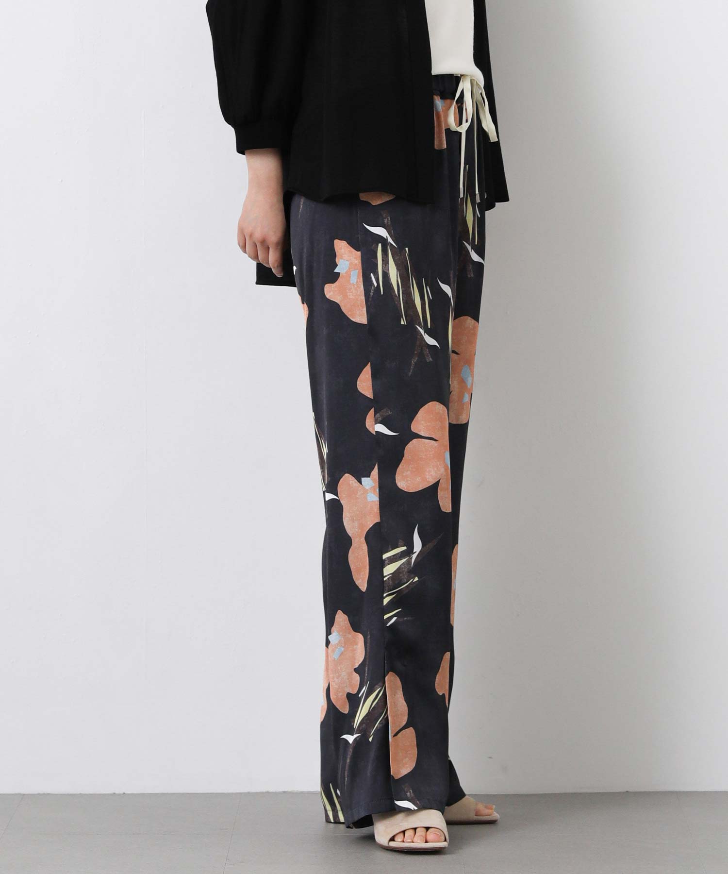 【LalliaMù(ラリア・ムー)】から、ラリア・ムーの企画チームが一から制作した、オリジナルサテンのプリント生地を使用したイージーパンツをセレクト。