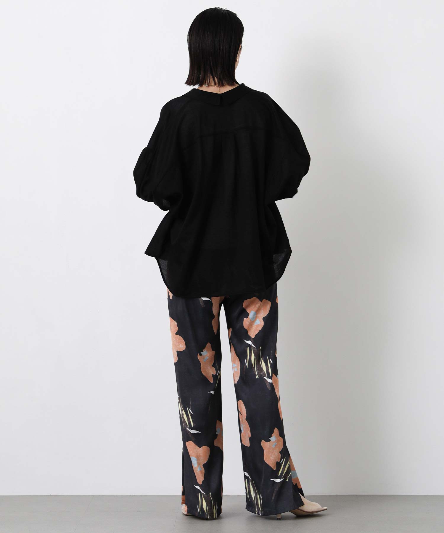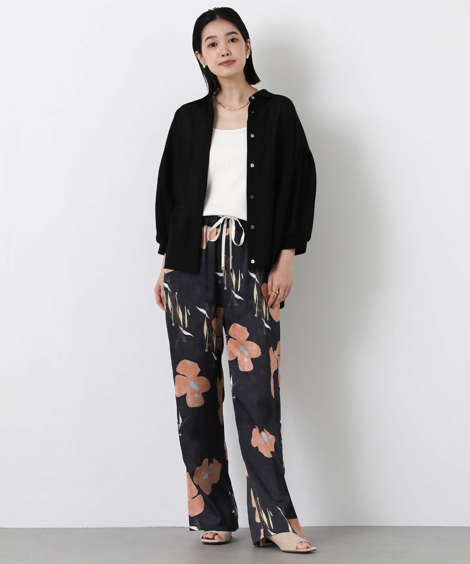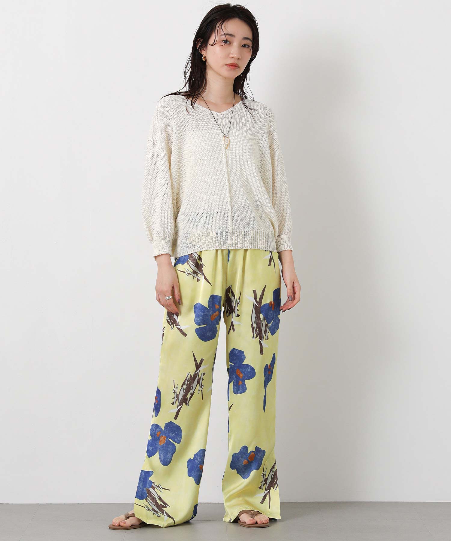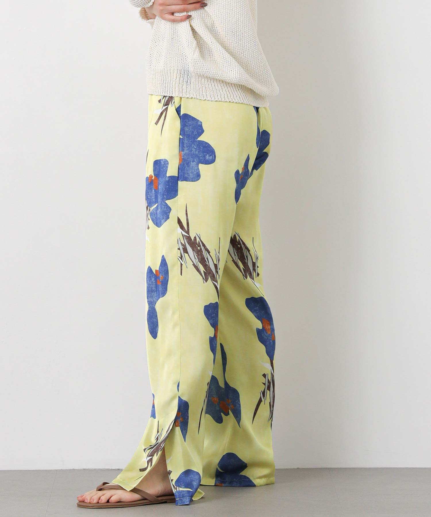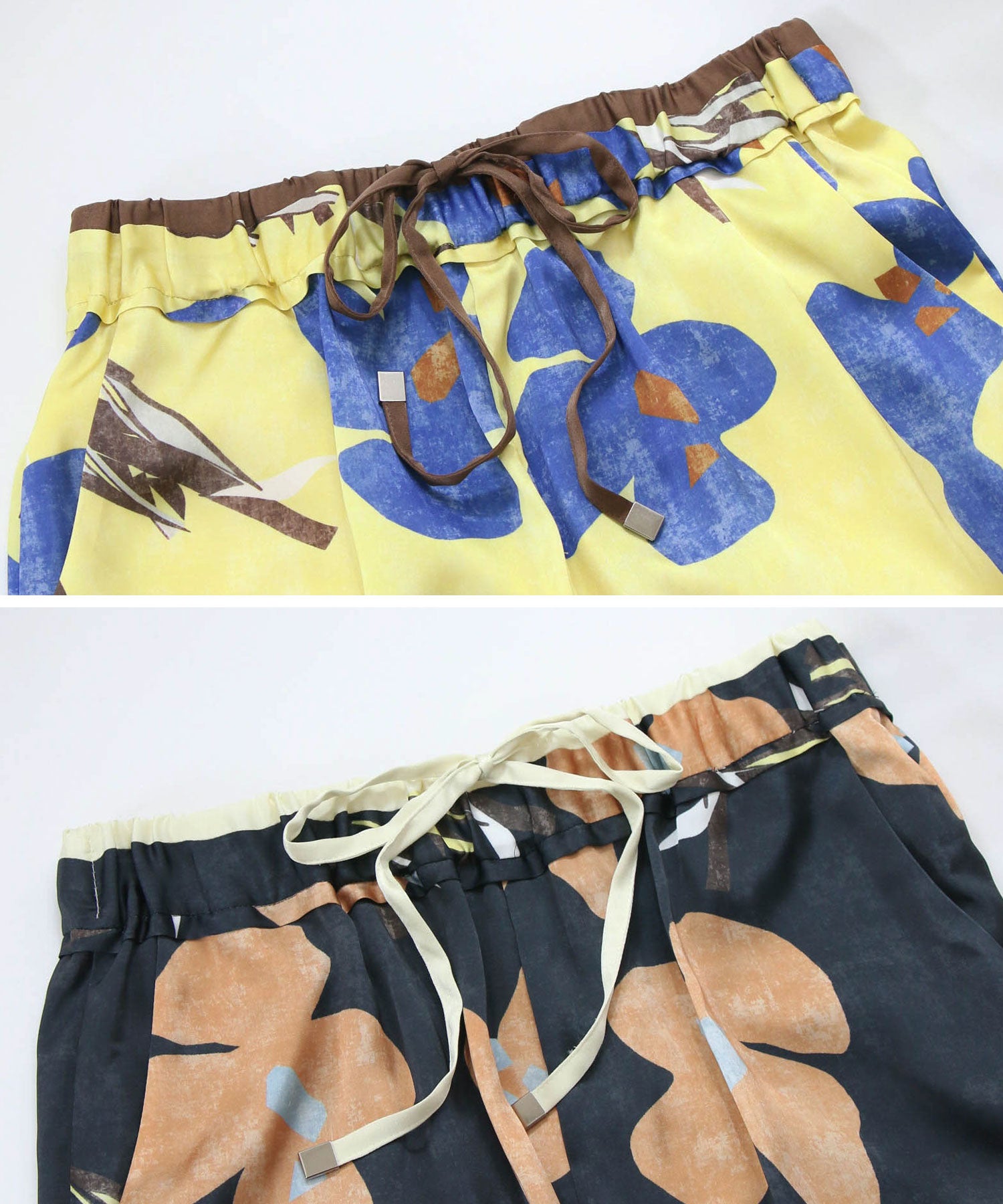 【LalliaMù(ラリア・ムー)】から、ラリア・ムーの企画チームが一から制作した、オリジナルサテンのプリント生地を使用したイージーパンツをセレクト。