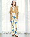 レッグラインを拾いすぎない生地感と、美脚に見せるパターン設計で、柄のパンツもカジュアルになりすぎず上品なムードを保ちます。