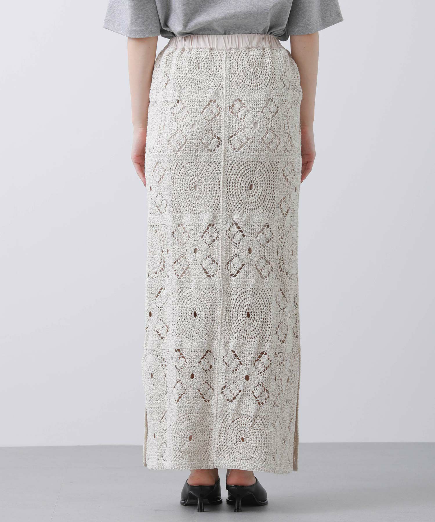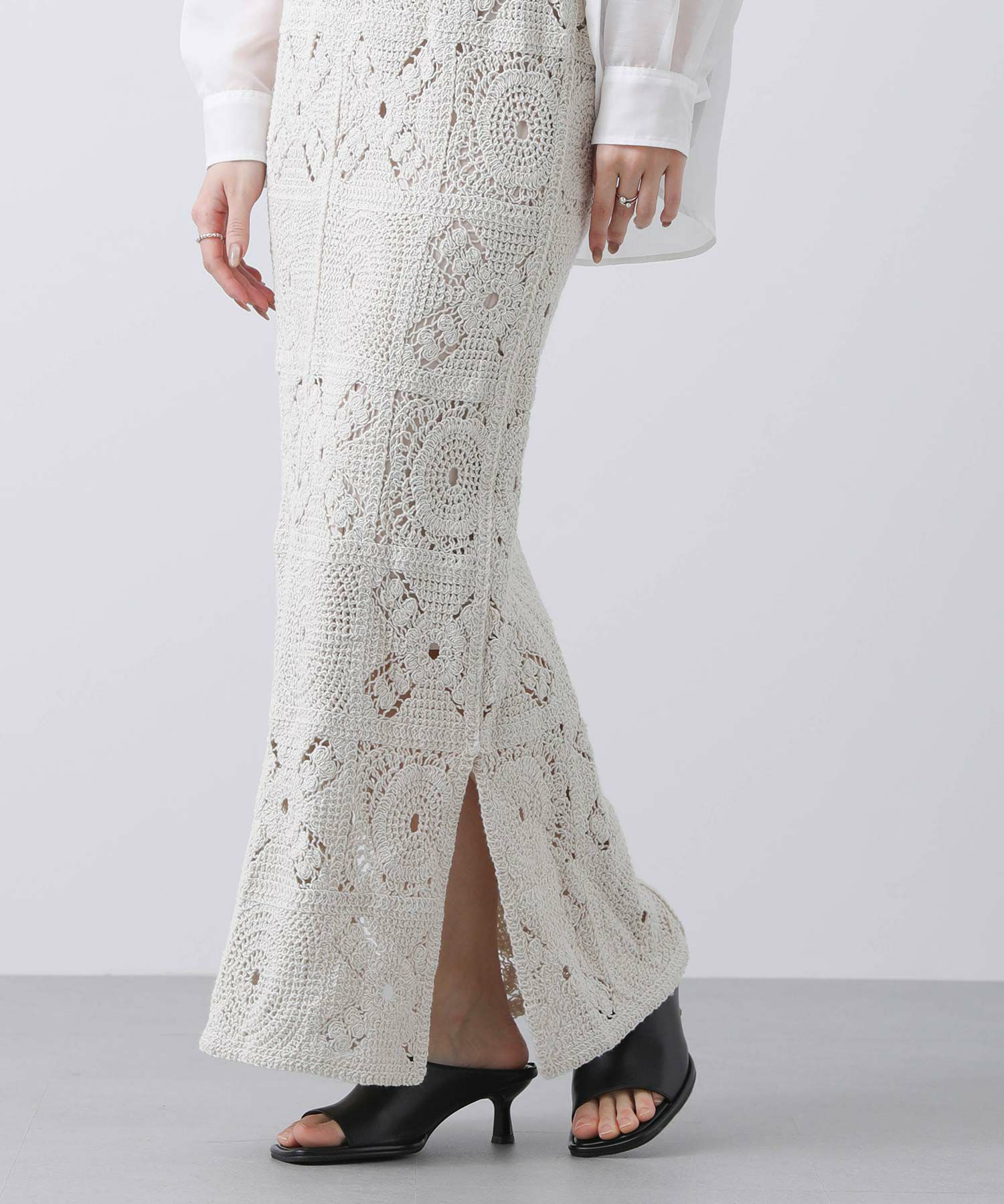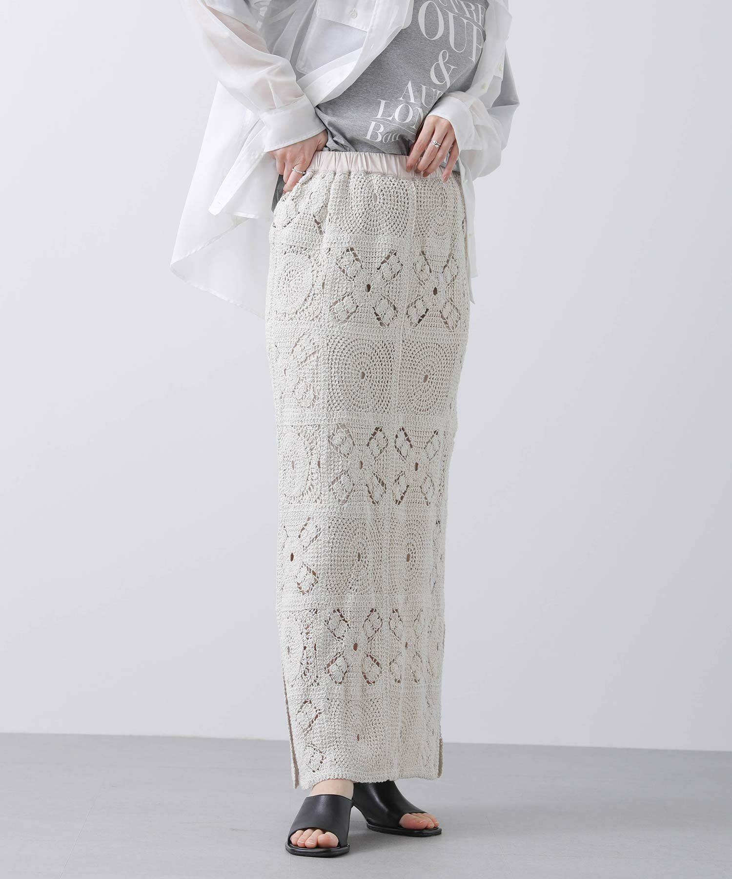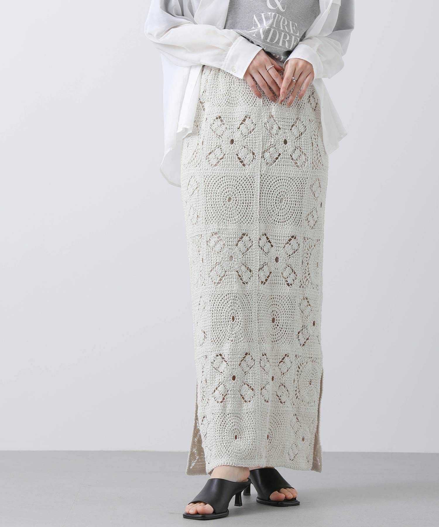 【TorrazzoDonna/トラッツォドンナ】から、クロッシェ編み風ニットのアイラインロングスカートをセレクト。