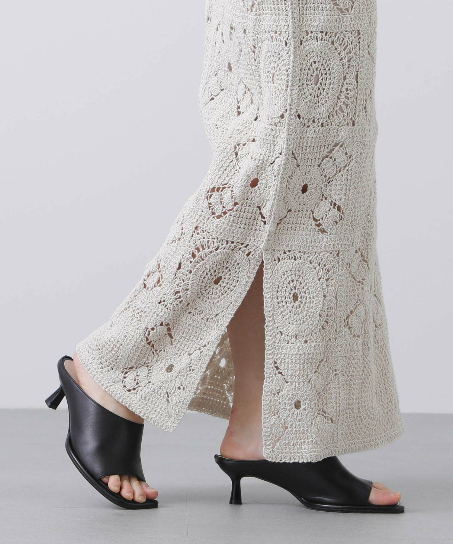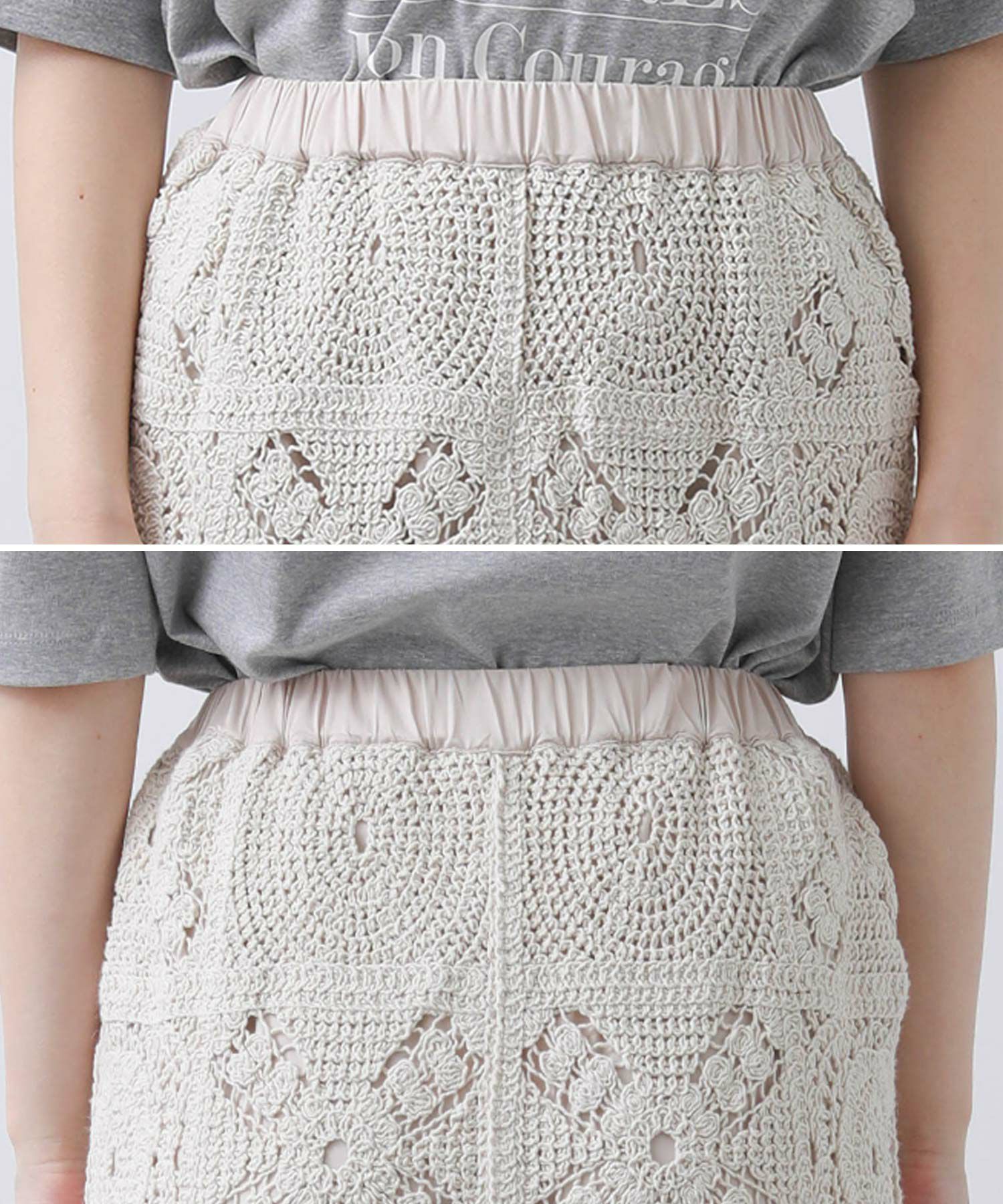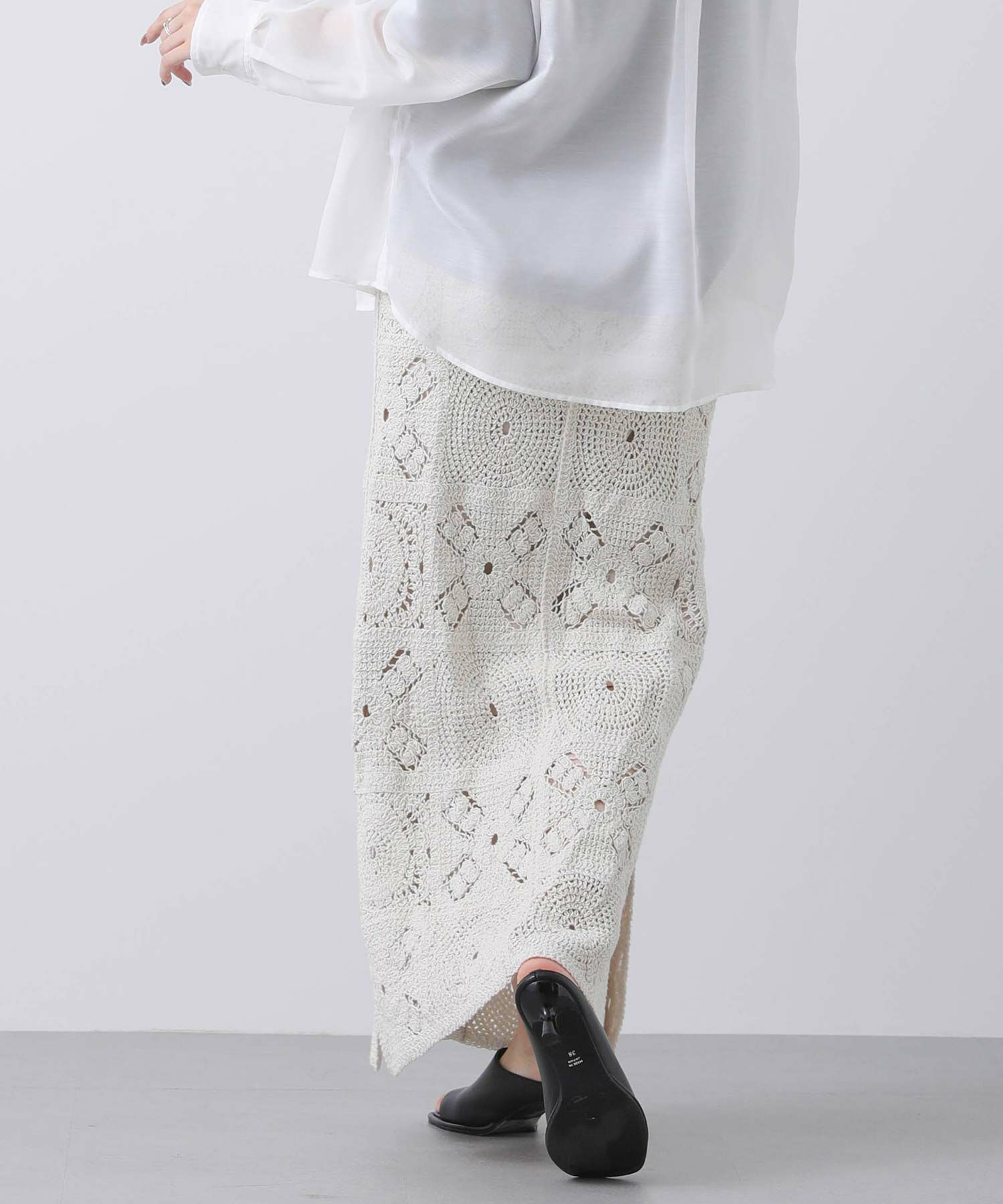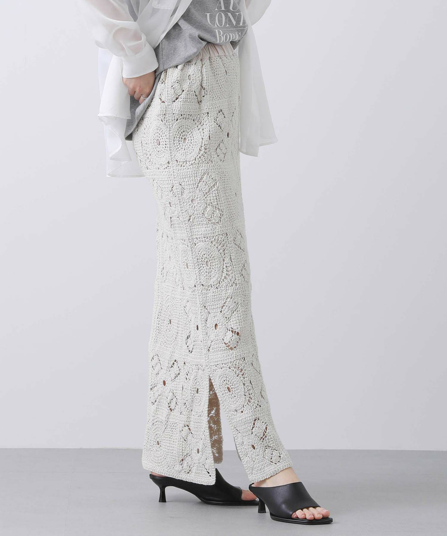 【TorrazzoDonna/トラッツォドンナ】から、クロッシェ編み風ニットのアイラインロングスカートをセレクト。