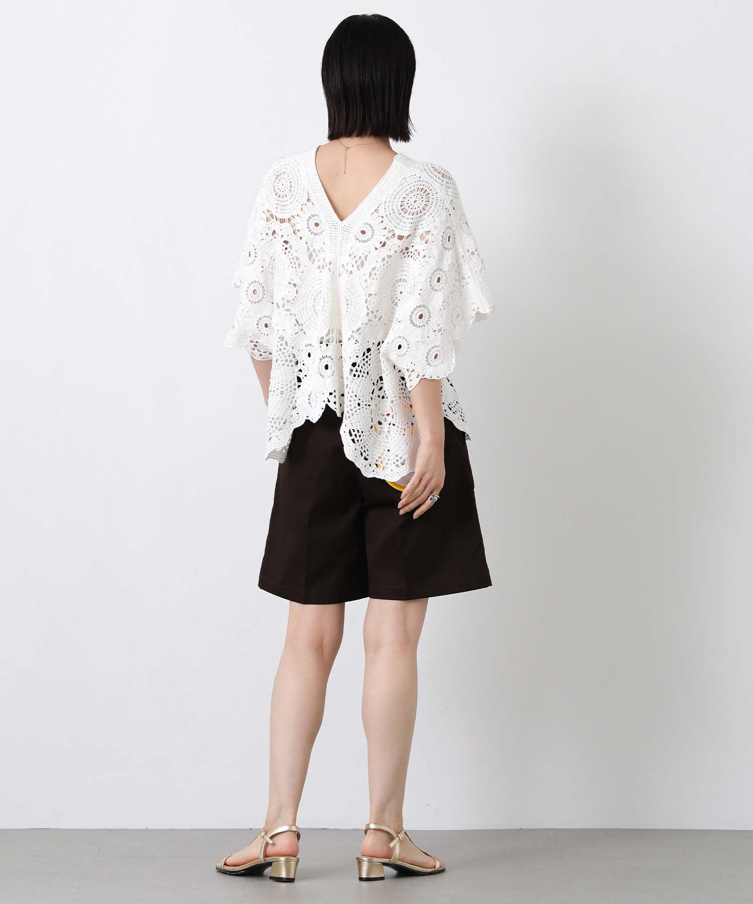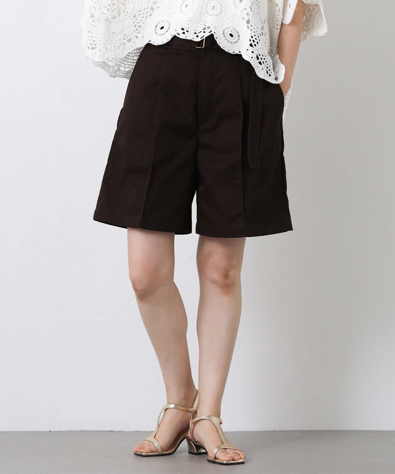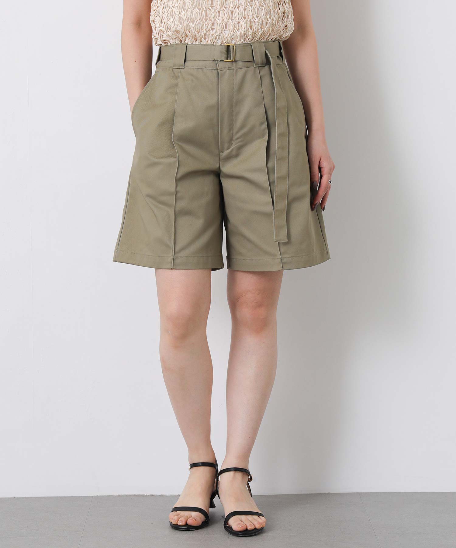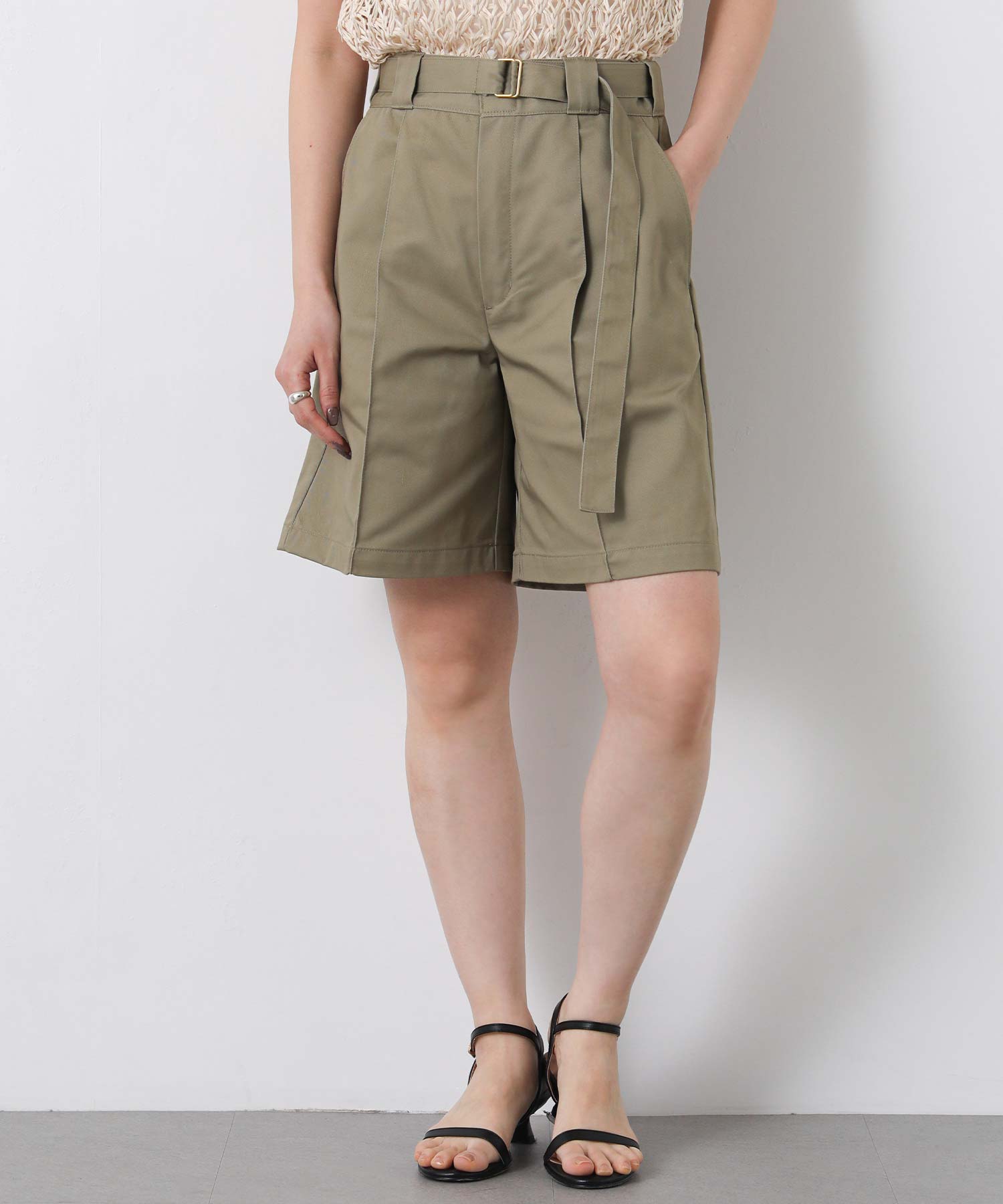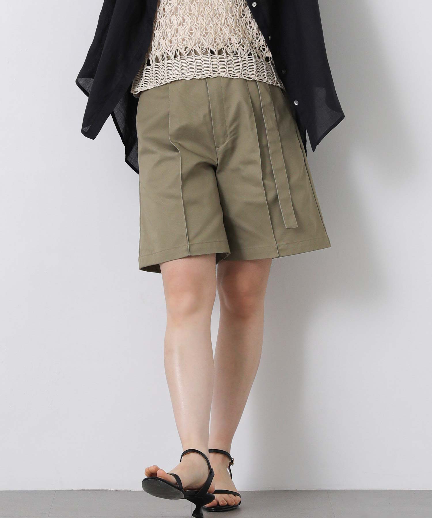 フロントの大きめのタックで動きのあるショートパンツは、腰回りをスッキリと見せてくれます。